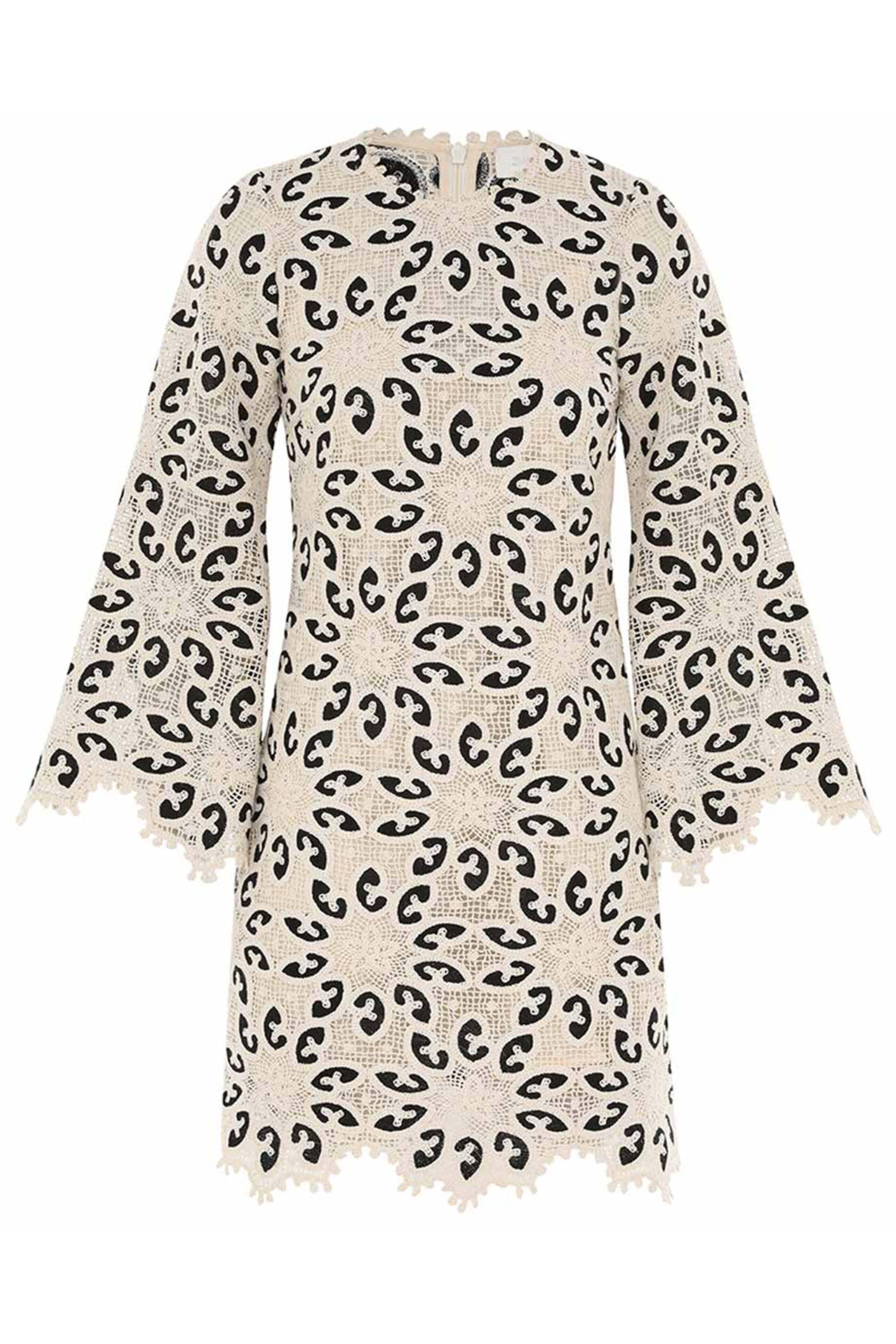 - Zimmermann Cream and Black Lace Ottie Mini Dress