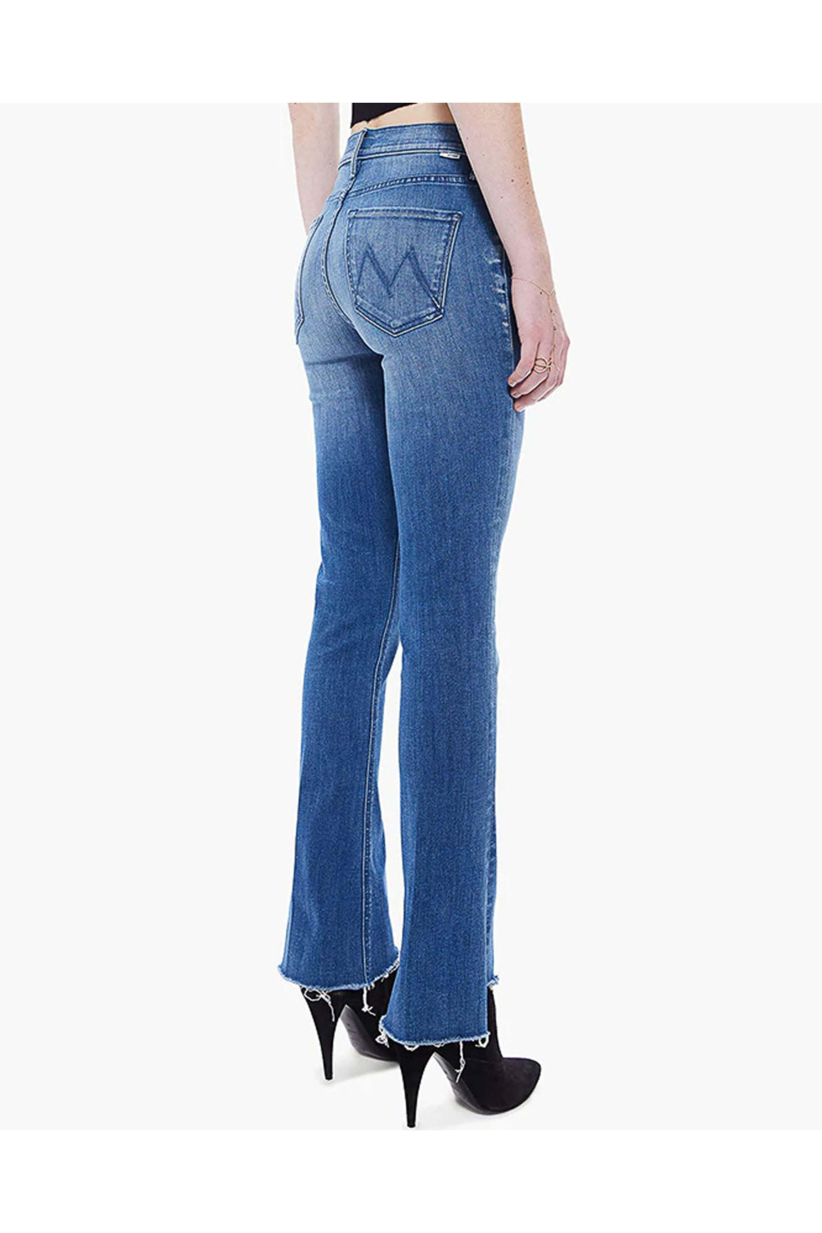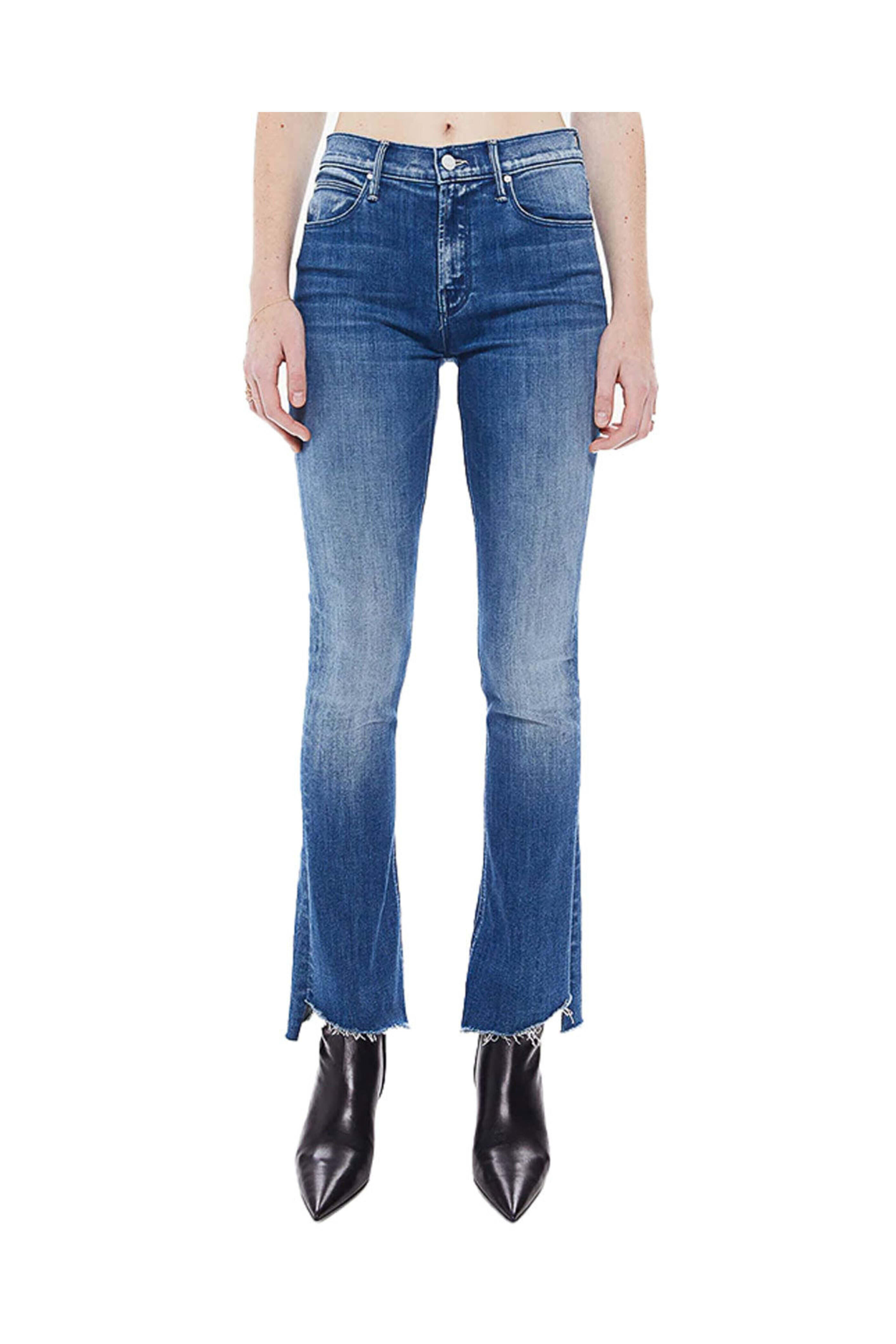 Mother The Runaway Step Fray Jean in Night In Havana. Mid rise. Button closure. Zip fly. Belt loops. Five pocket style. Straight silhouette. Step flare hem. Raw hem. 92% cotton, 6% polyester, 2% elastane.