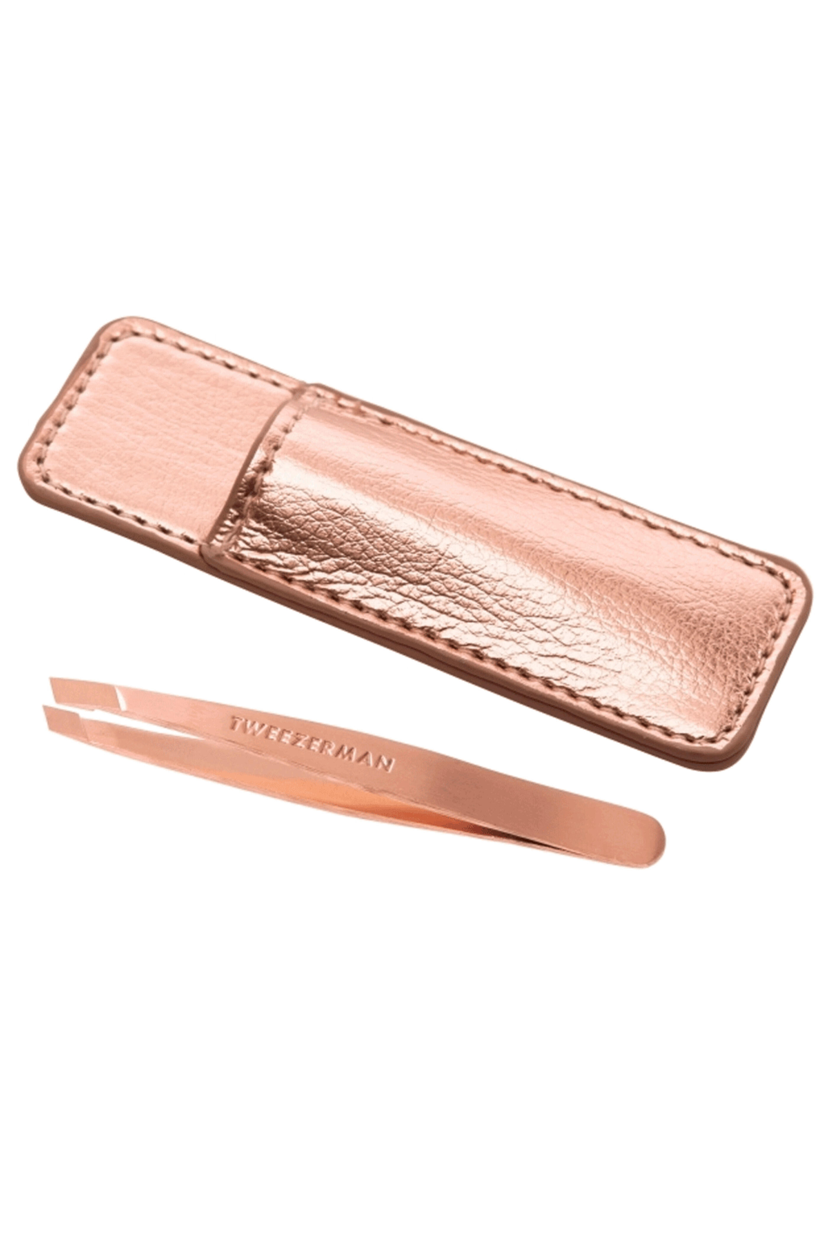 - Tweezerman Mini Slant Tweezer in Rose Gold With Case