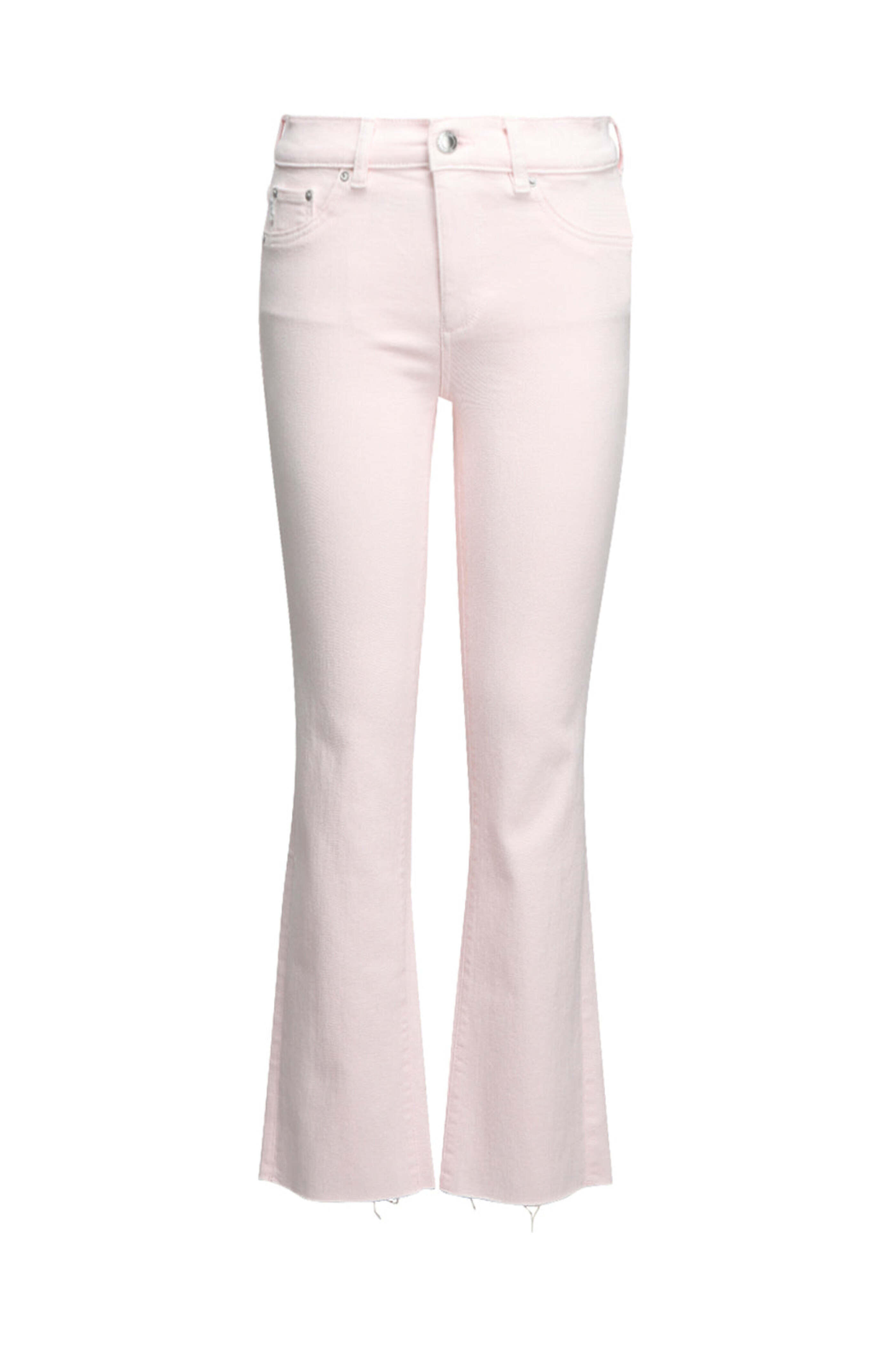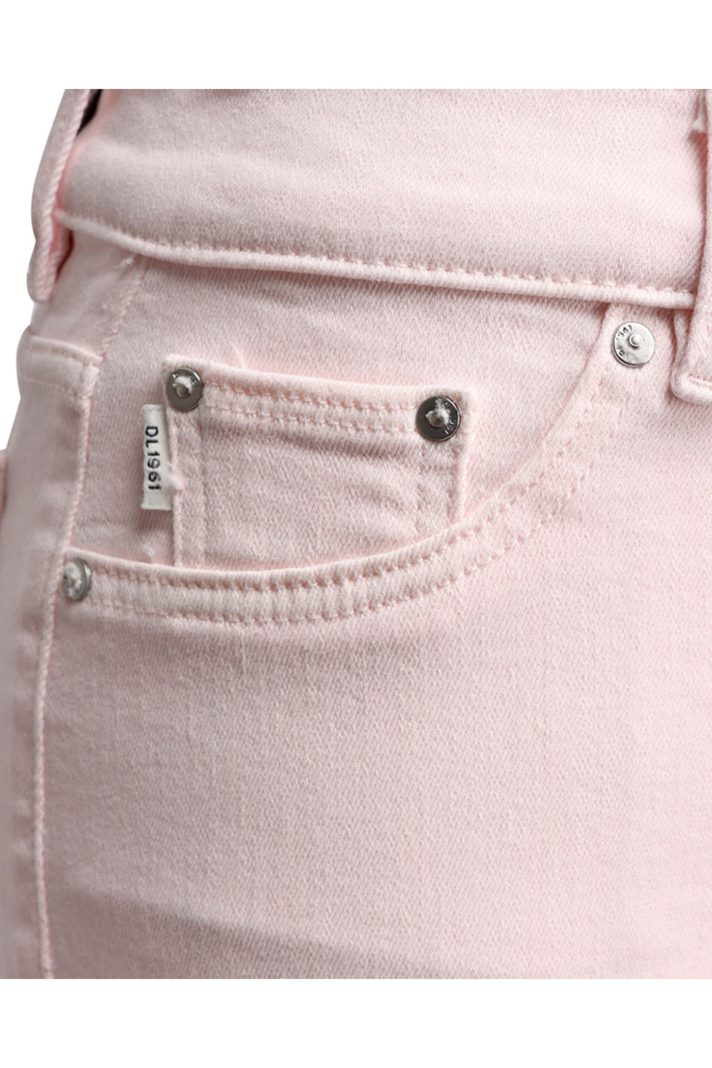 DL1961 Mara Straight Jean in Primrose. Mid rise. Button closure. Zip fly. Belt loops. Five pocket style. Straight silhouette. Cropped length. Stretch denim fabrication. 93% cotton, 6% elasterell-p, 1% lycra.