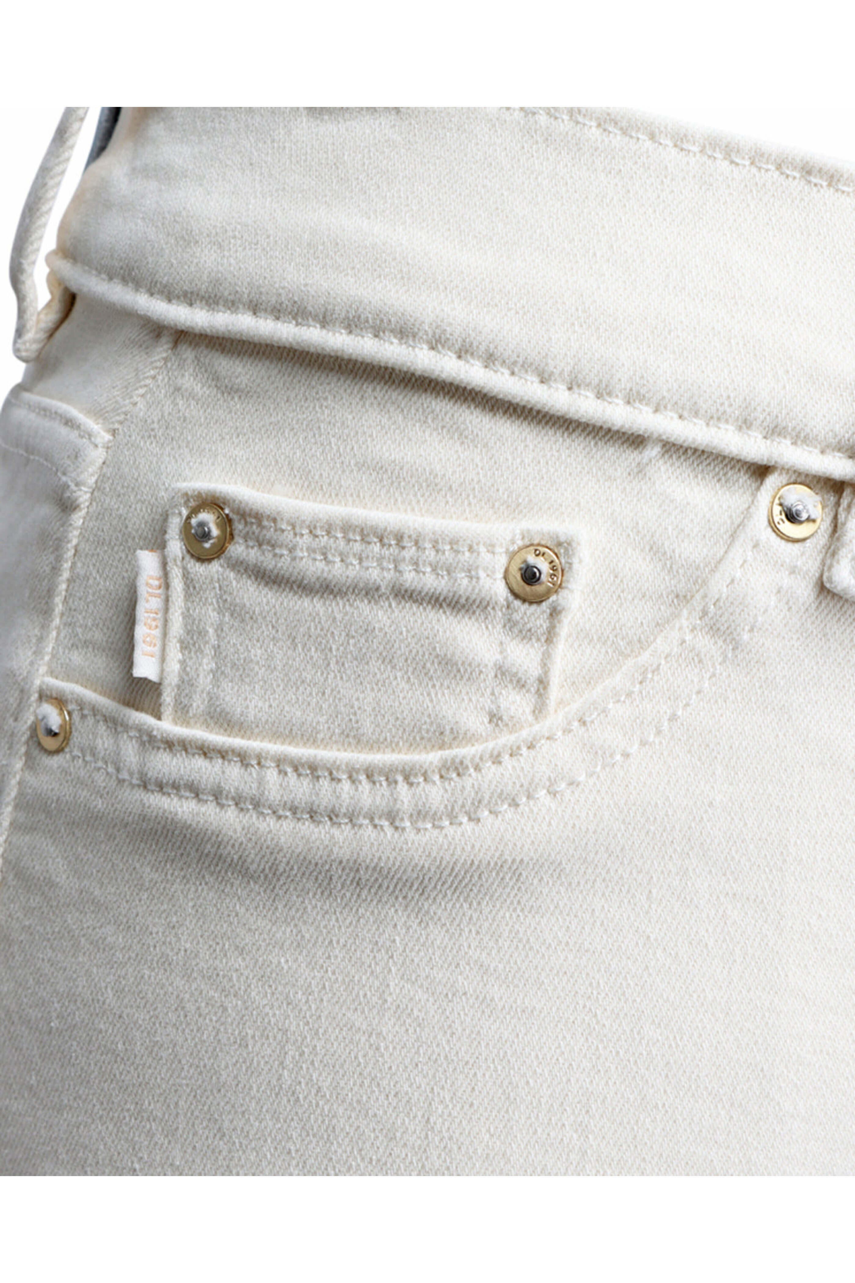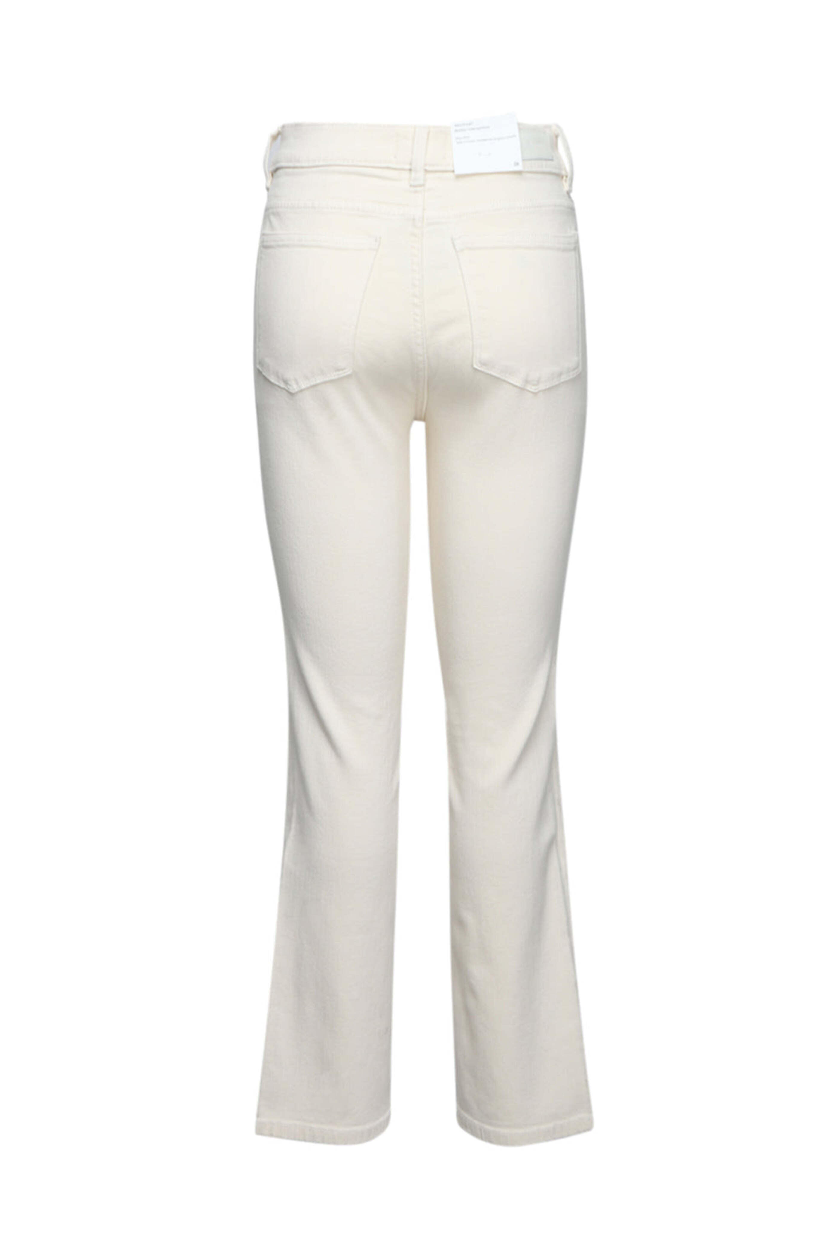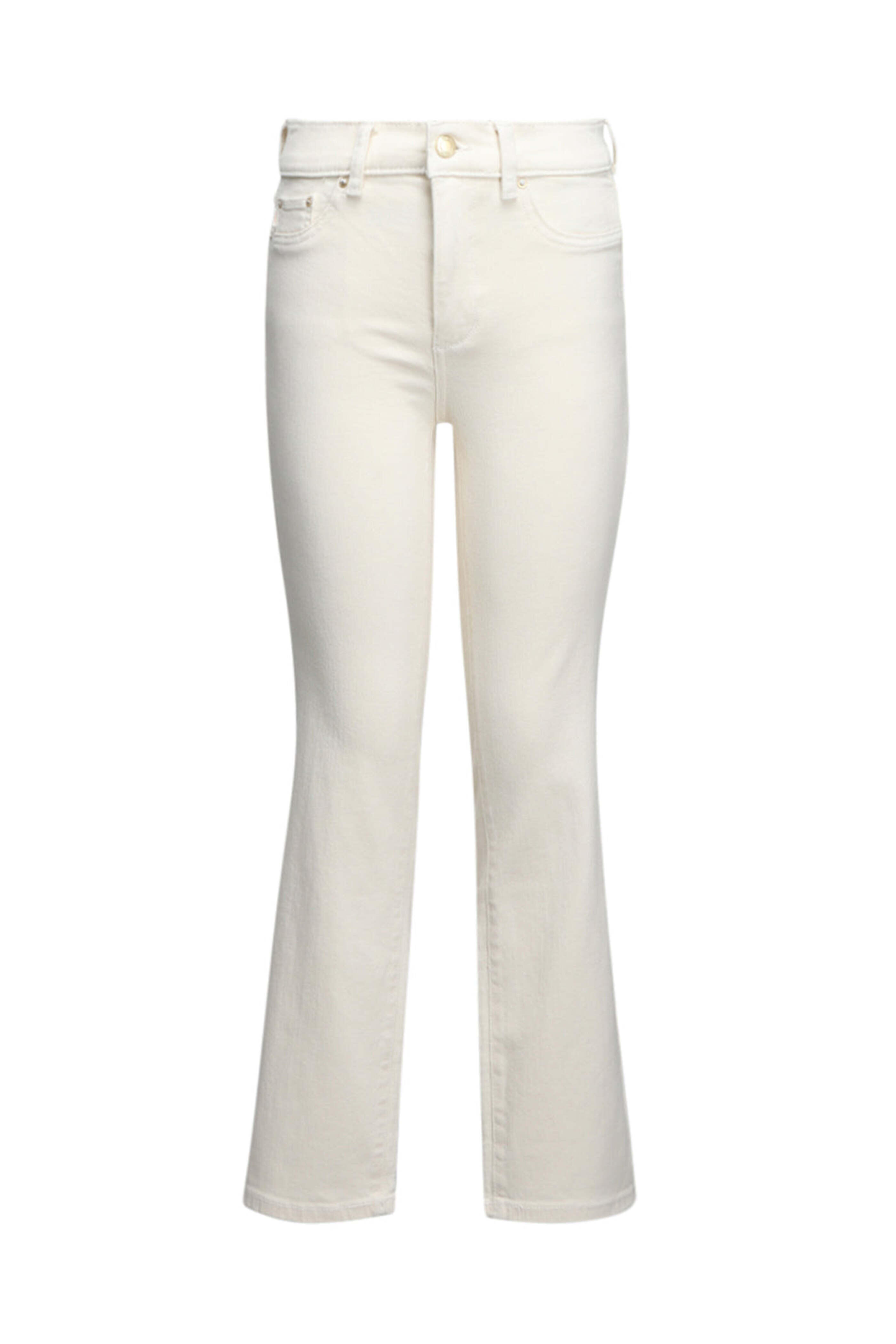 DL1961 Mara Straight Jean in Ecru. Mid rise. Button closure. Zip fly. Belt loops. Five pocket style. Straight silhouette. Cropped length. Stretch denim fabrication. 93% cotton, 6% elasterell-p, 1% lycra.