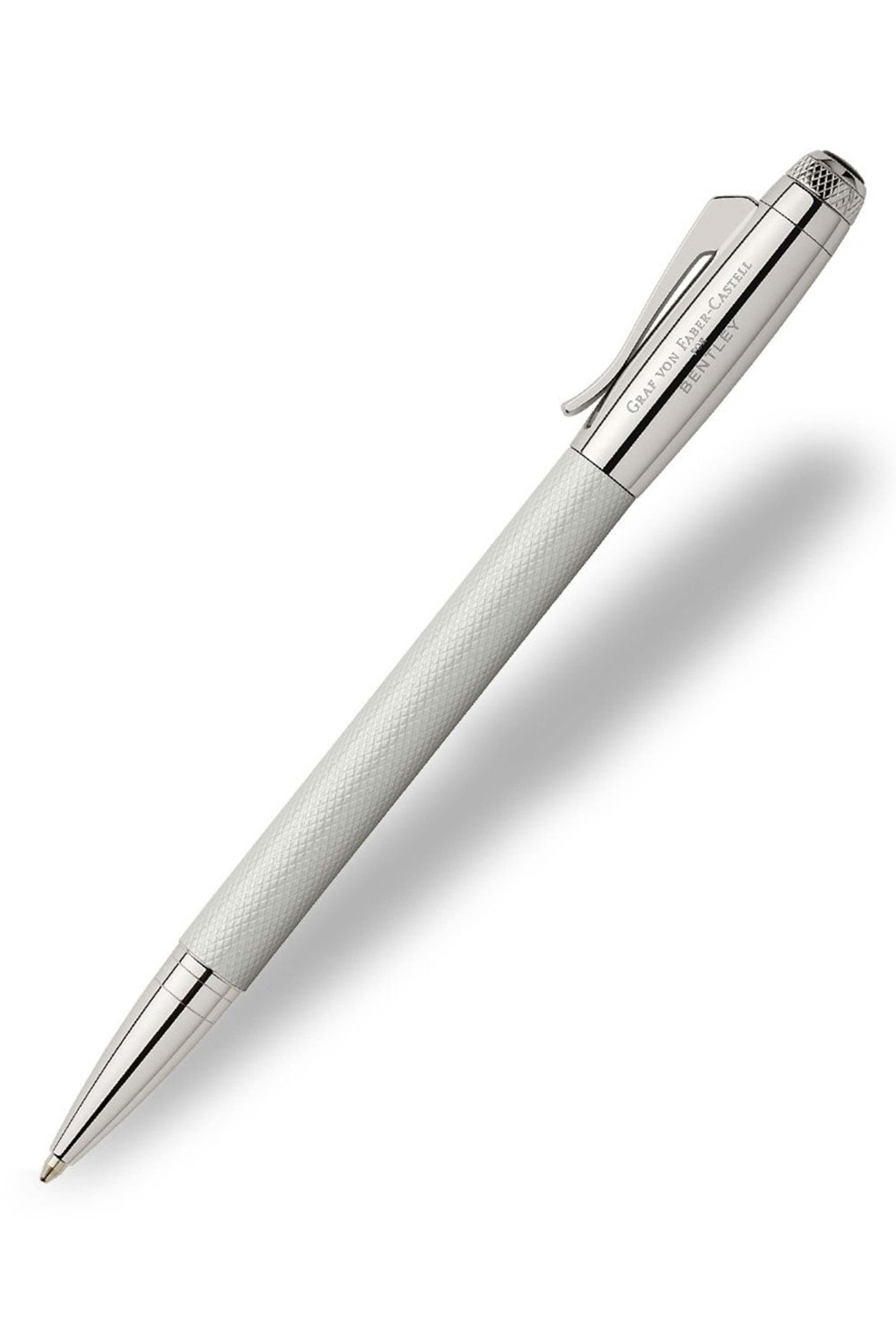 - Graf von Faber-Castell White Satin Bentley Ballpoint Pen Lacquered metal barrel decorated with elaborate diamond pattern applied in guilloche style Chromed metal parts polished to a high gloss Cap adorned by Bentley B and Bentley typical knurling Solid spring-loaded clip Ink color: Black