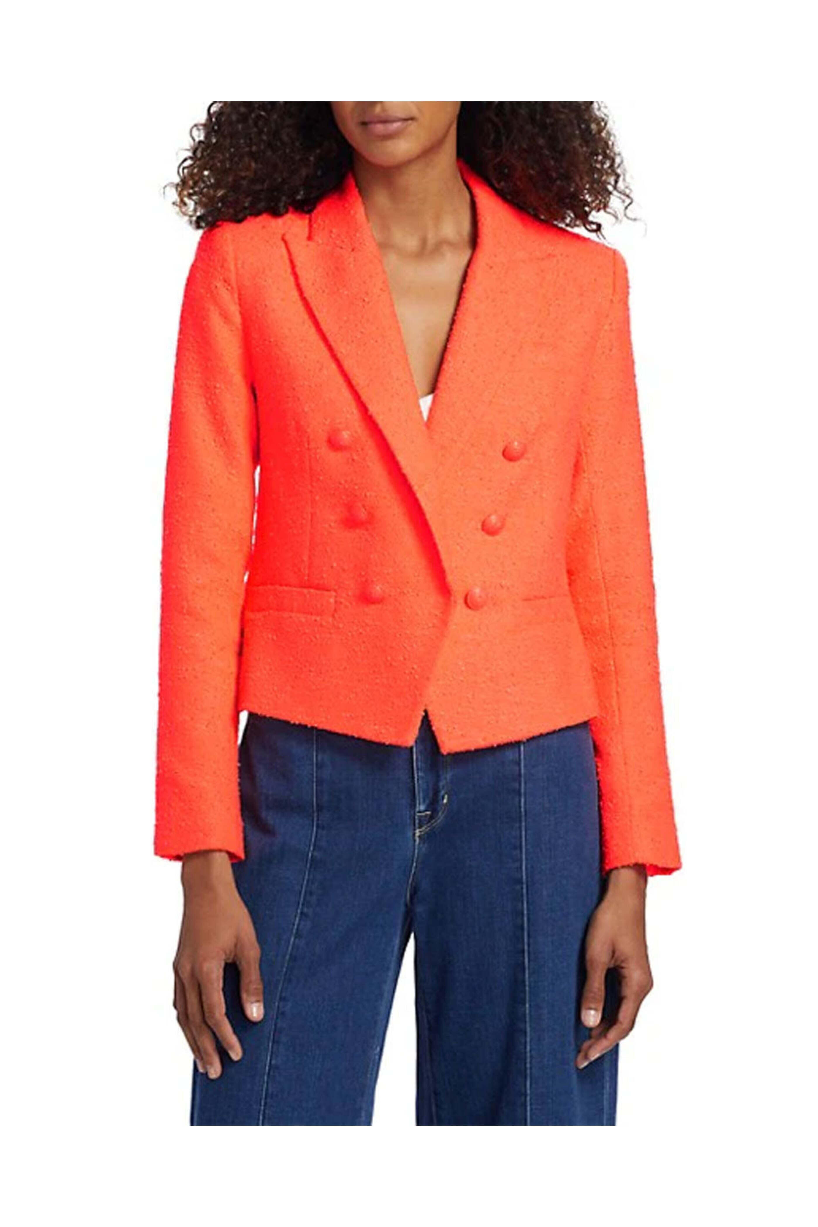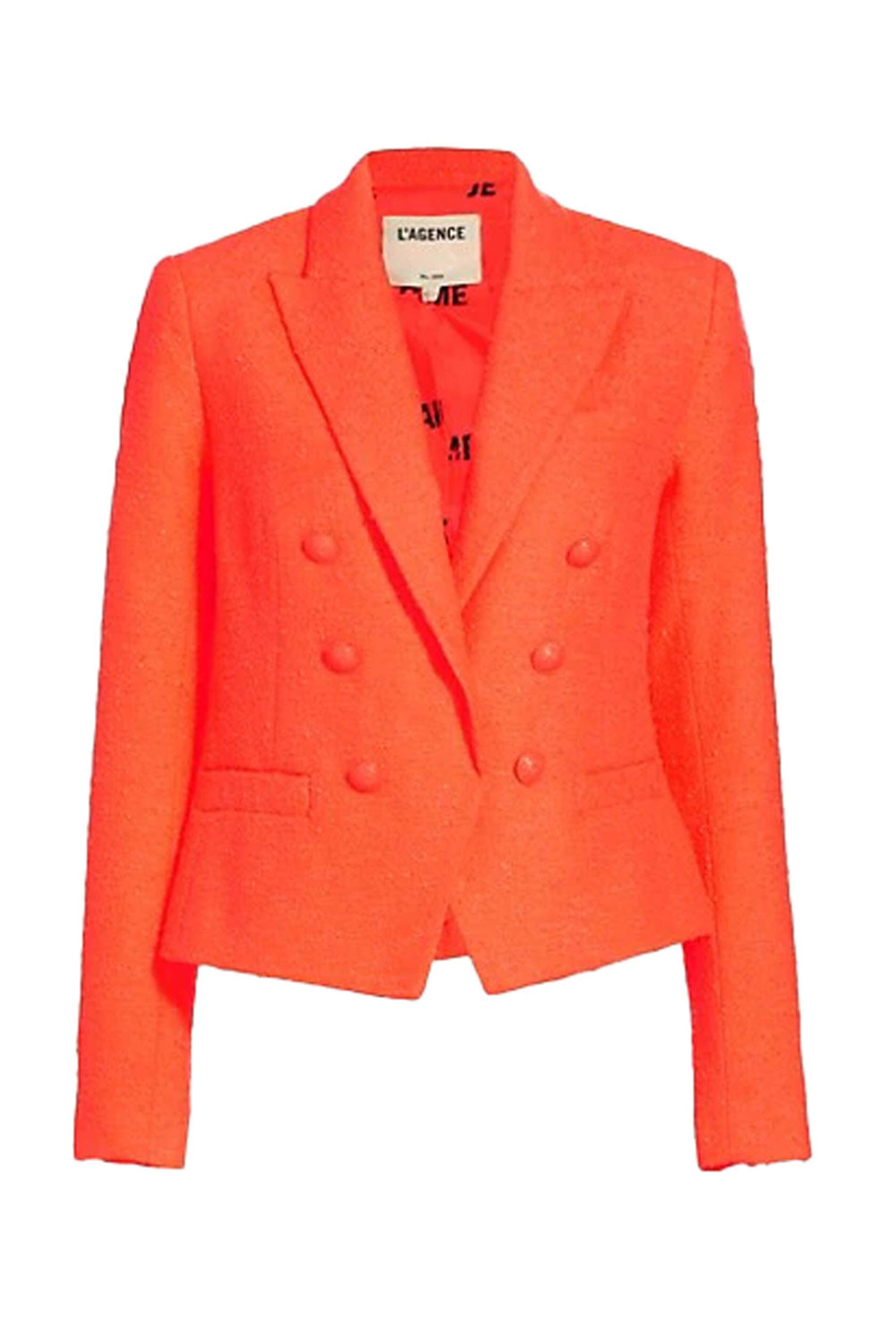 - L'Agence Bright Orange Brooke Double Breasted Crop Blazer