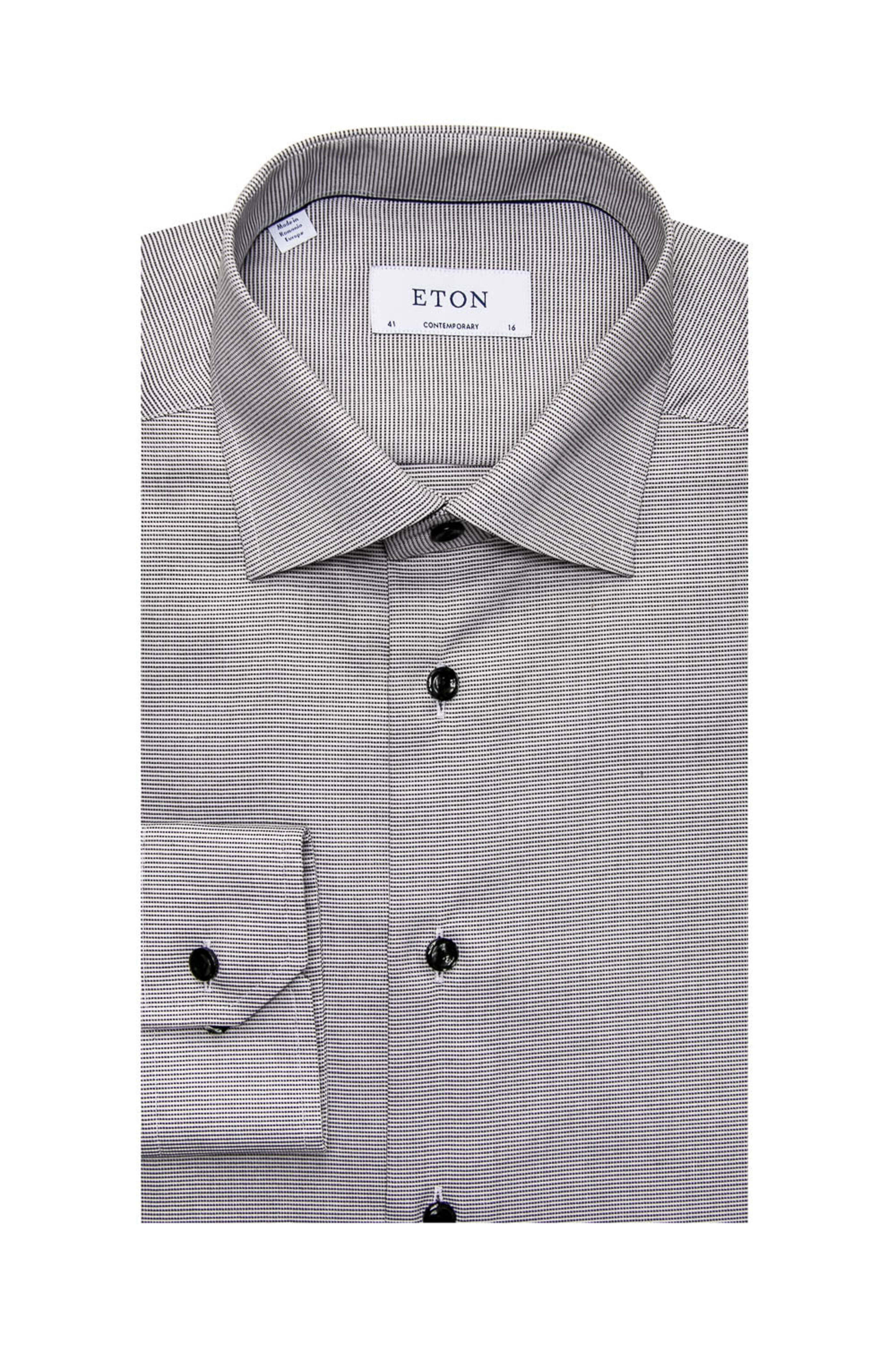 - Eton Grey Micro Geometric Dress Shirt Contemporary fit Point collar Mitered cut cuff Single button cuff 100% cotton Made in Europe