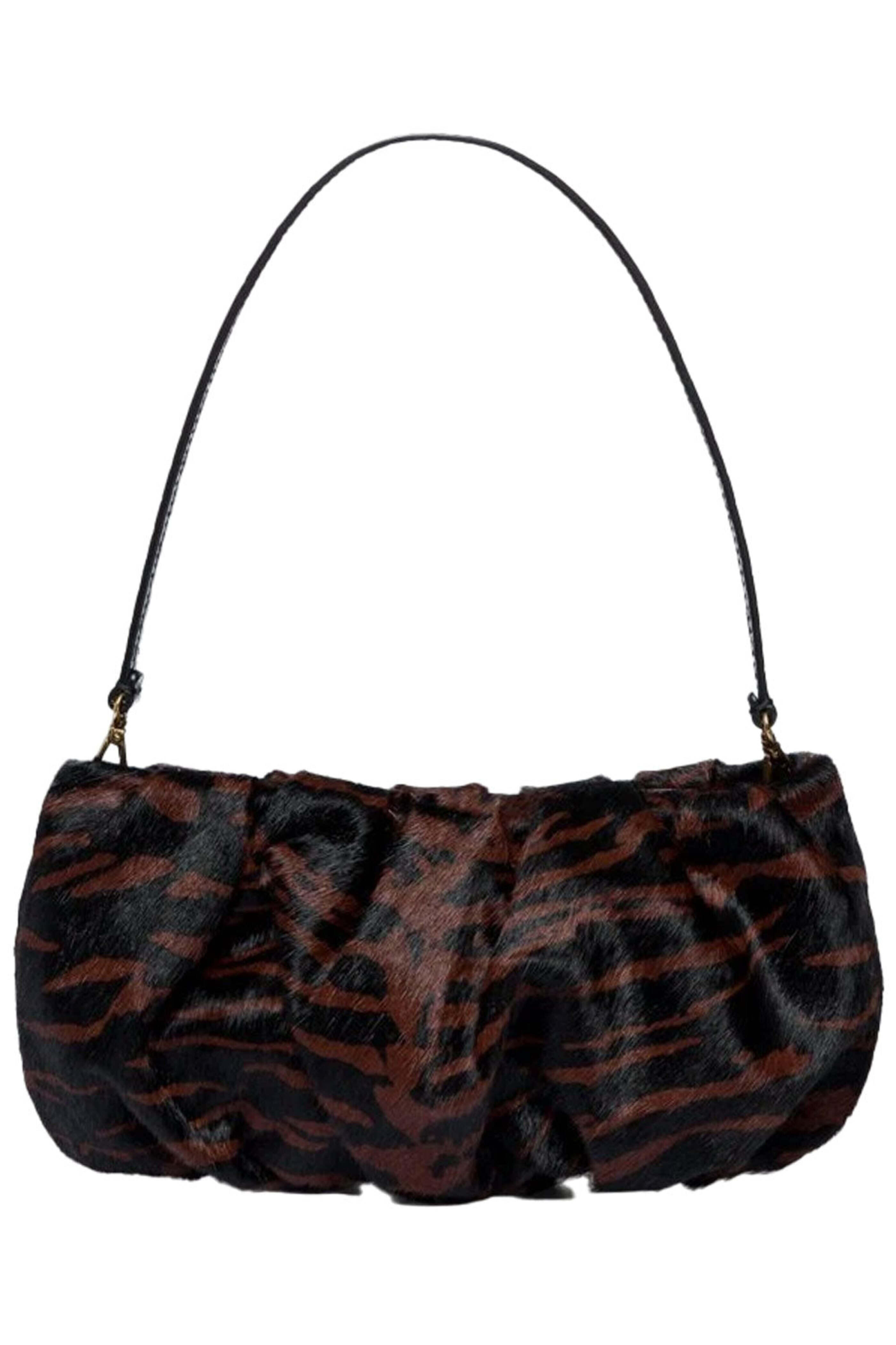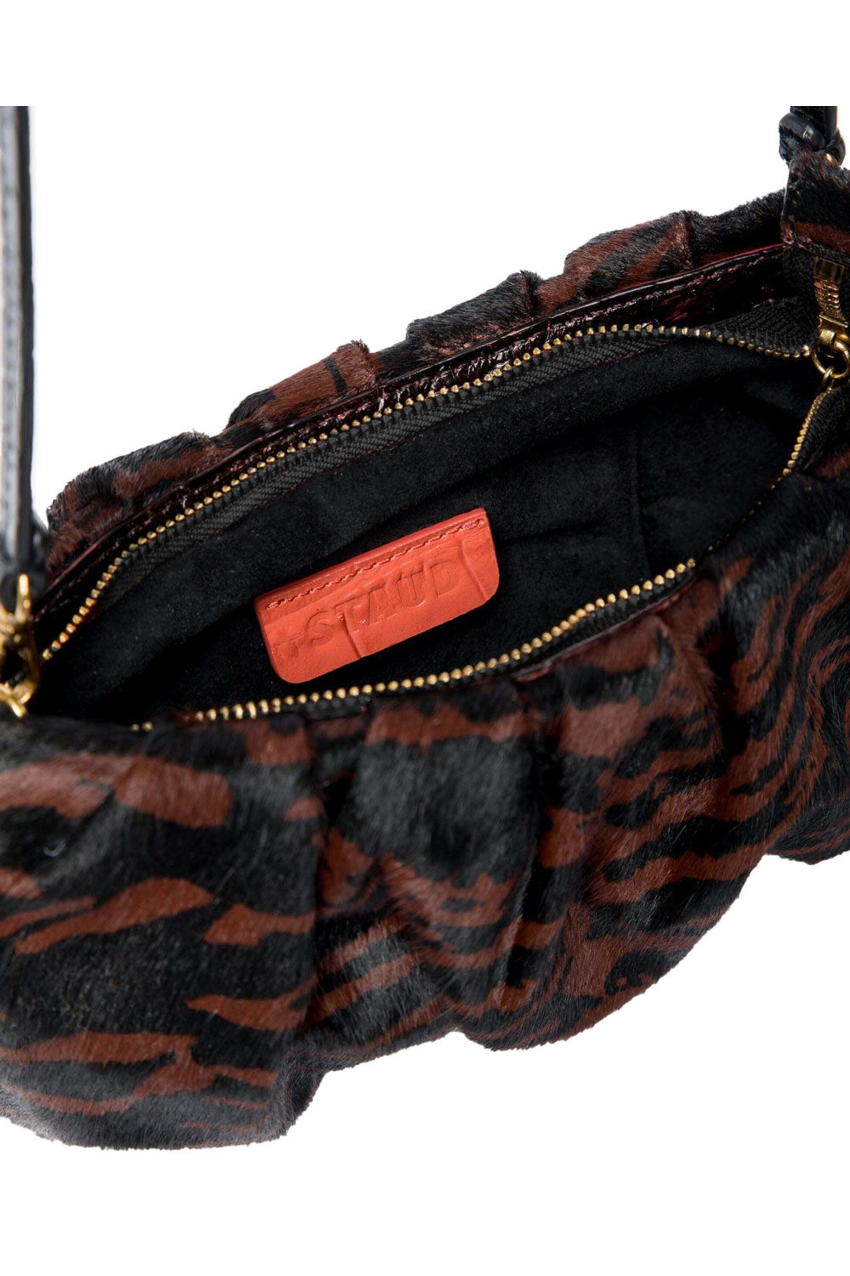 - Staud Bean Calf Hair Bag in Mahogany Zebra