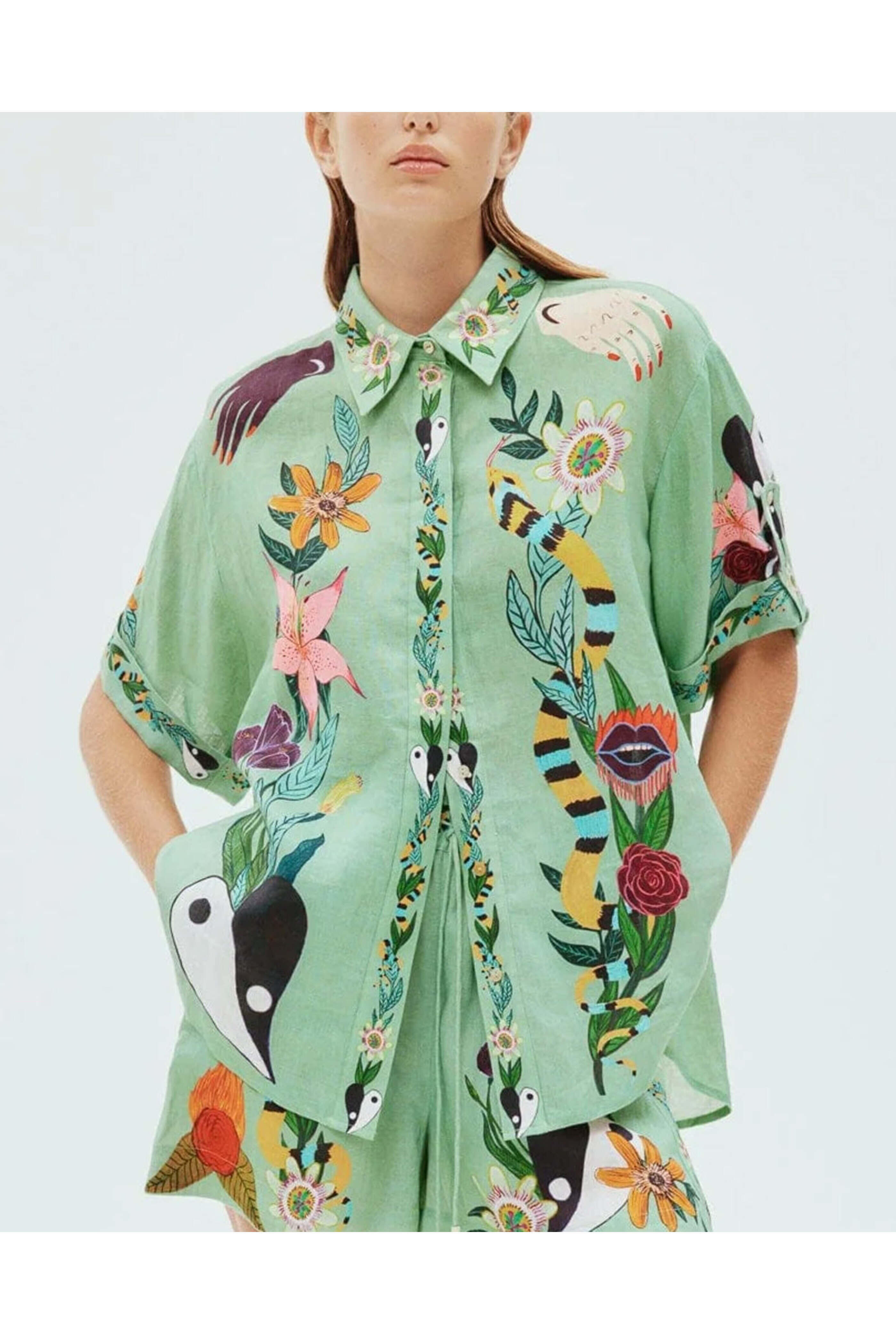 - Alémais Jade Linen Oversized Meagan Shirt