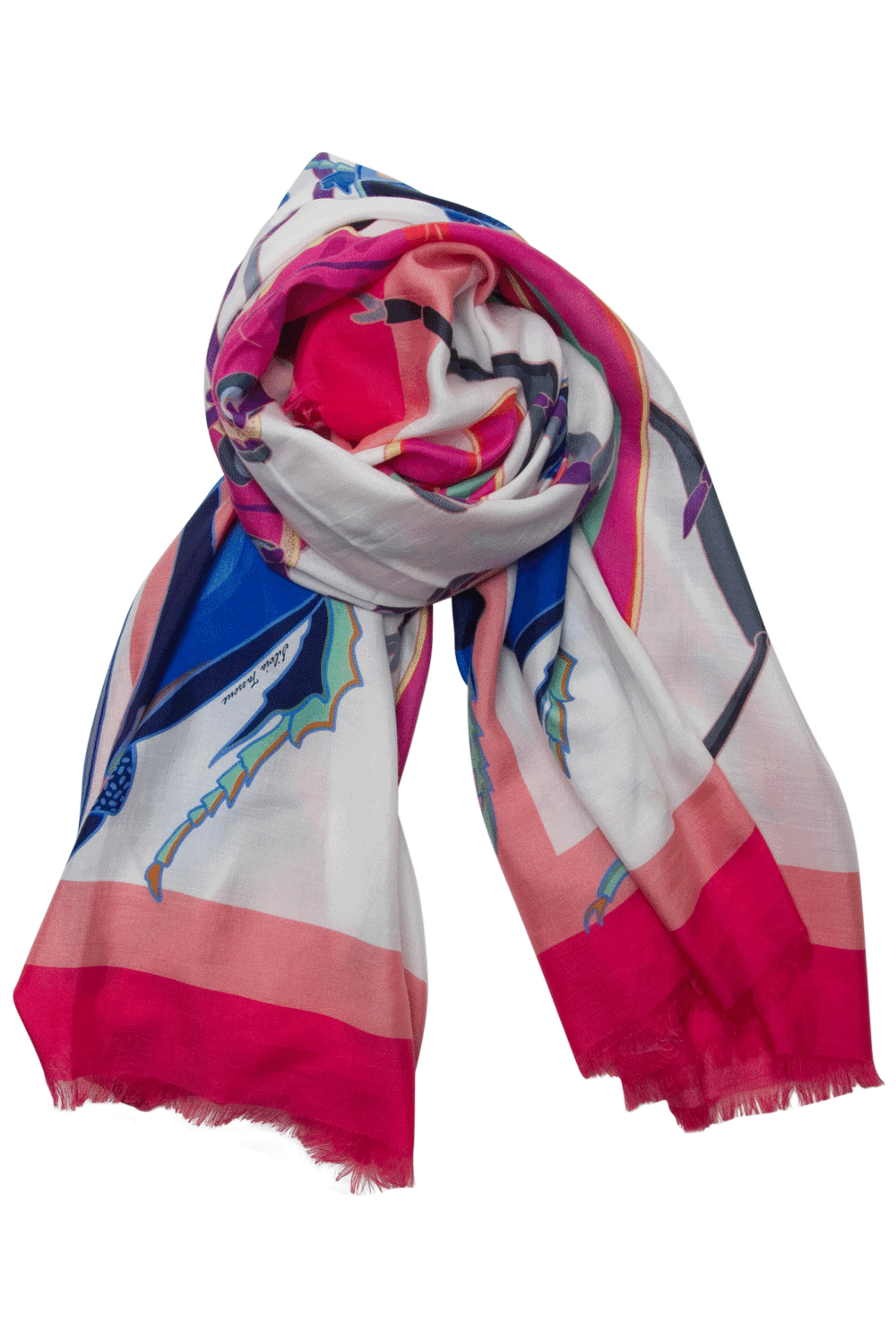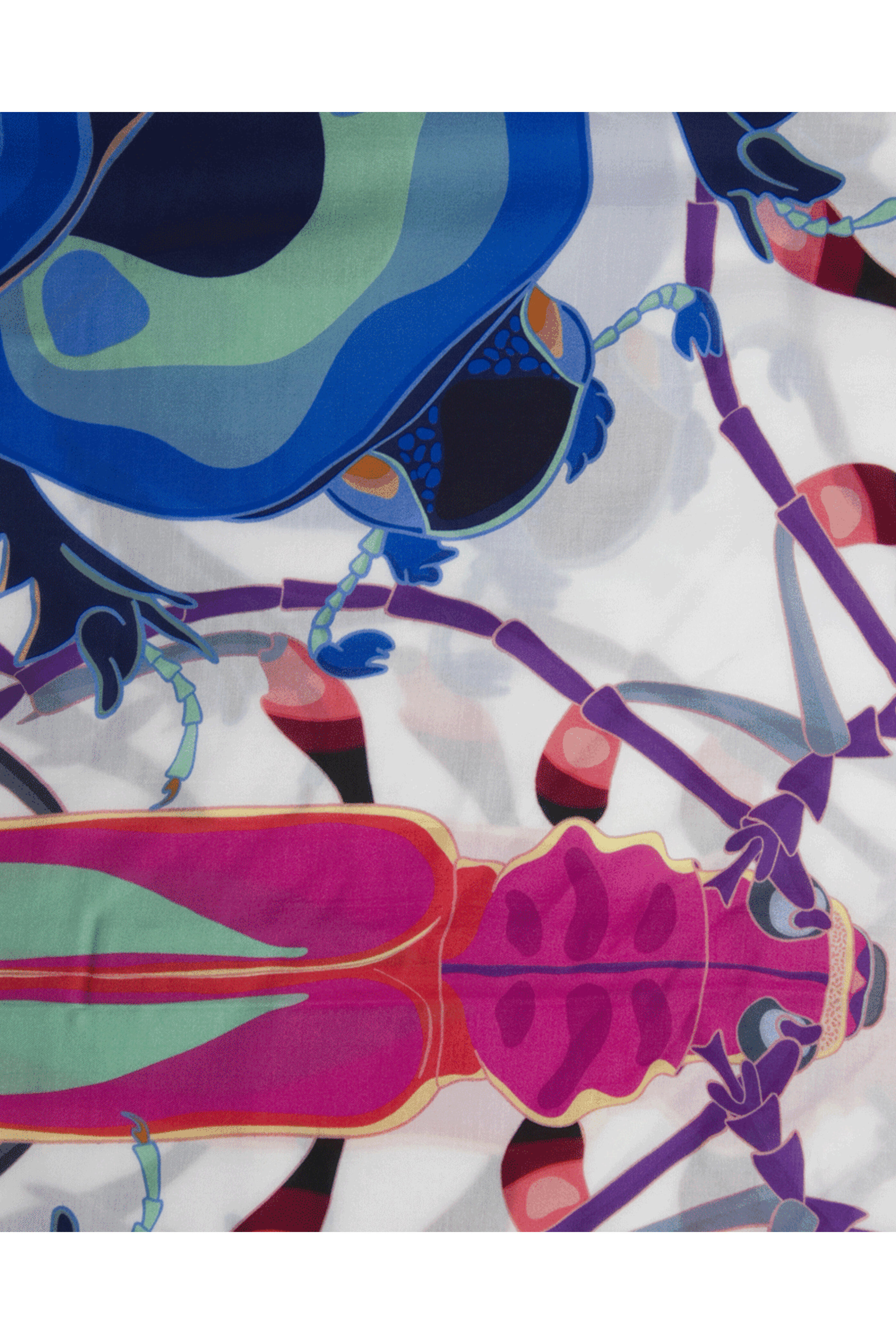 Franco Ferrai Tabacco Insect Shawl in Bianco. 53 X 53. Made in Italy. 62% cotton, 38% silk.