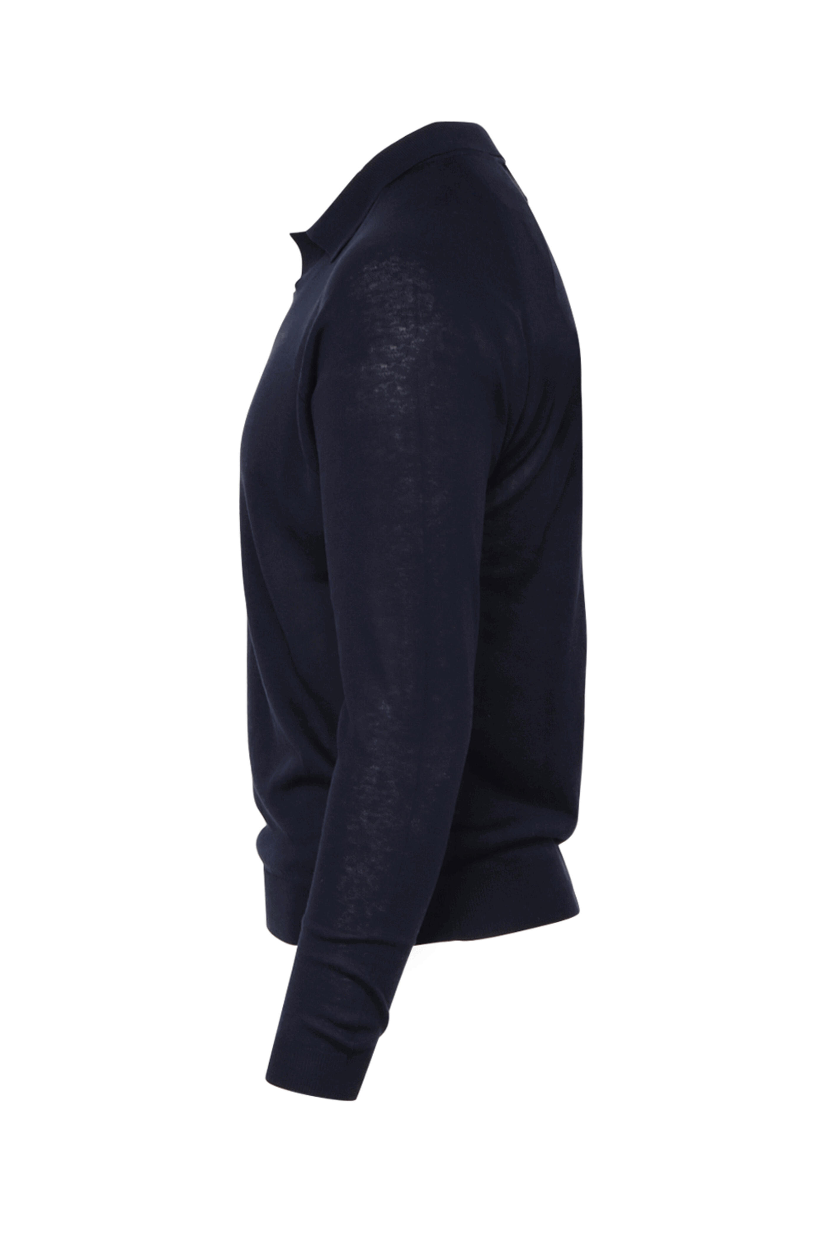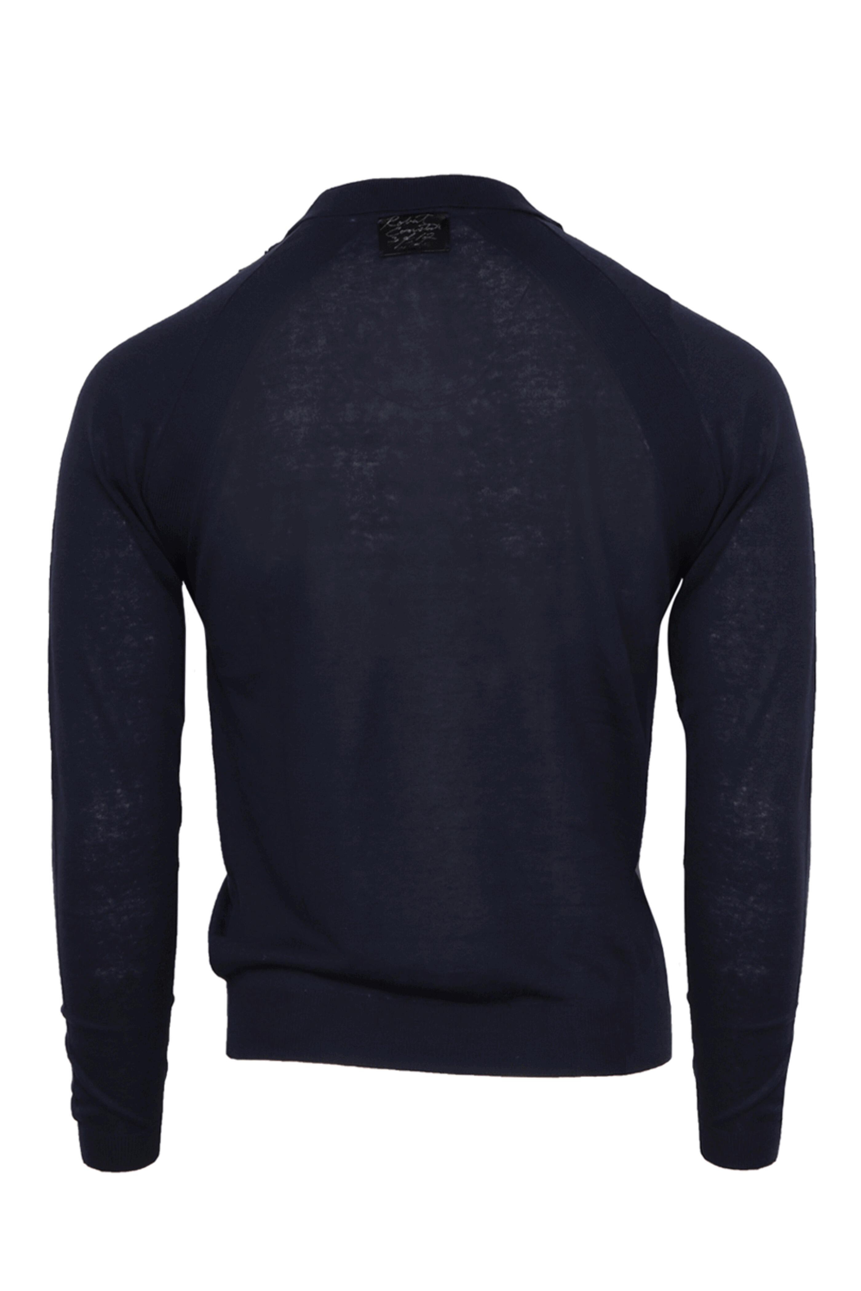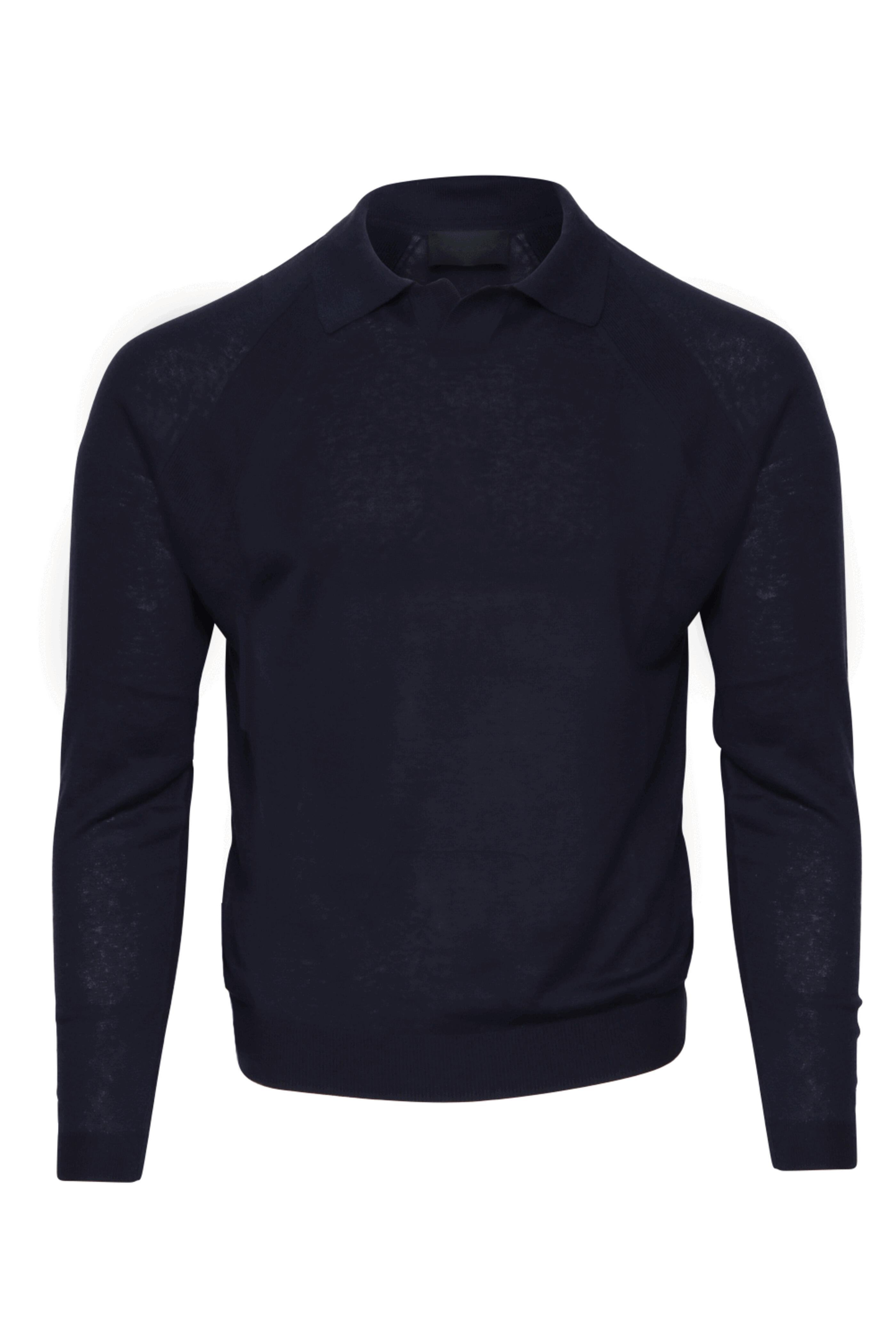 Robert Comstock Navy Long Sleeve Polo. Johnny collar. Long sleeves. Pullover style. Ribbed trims. Made in Italy . 55% silk, 45% linen.