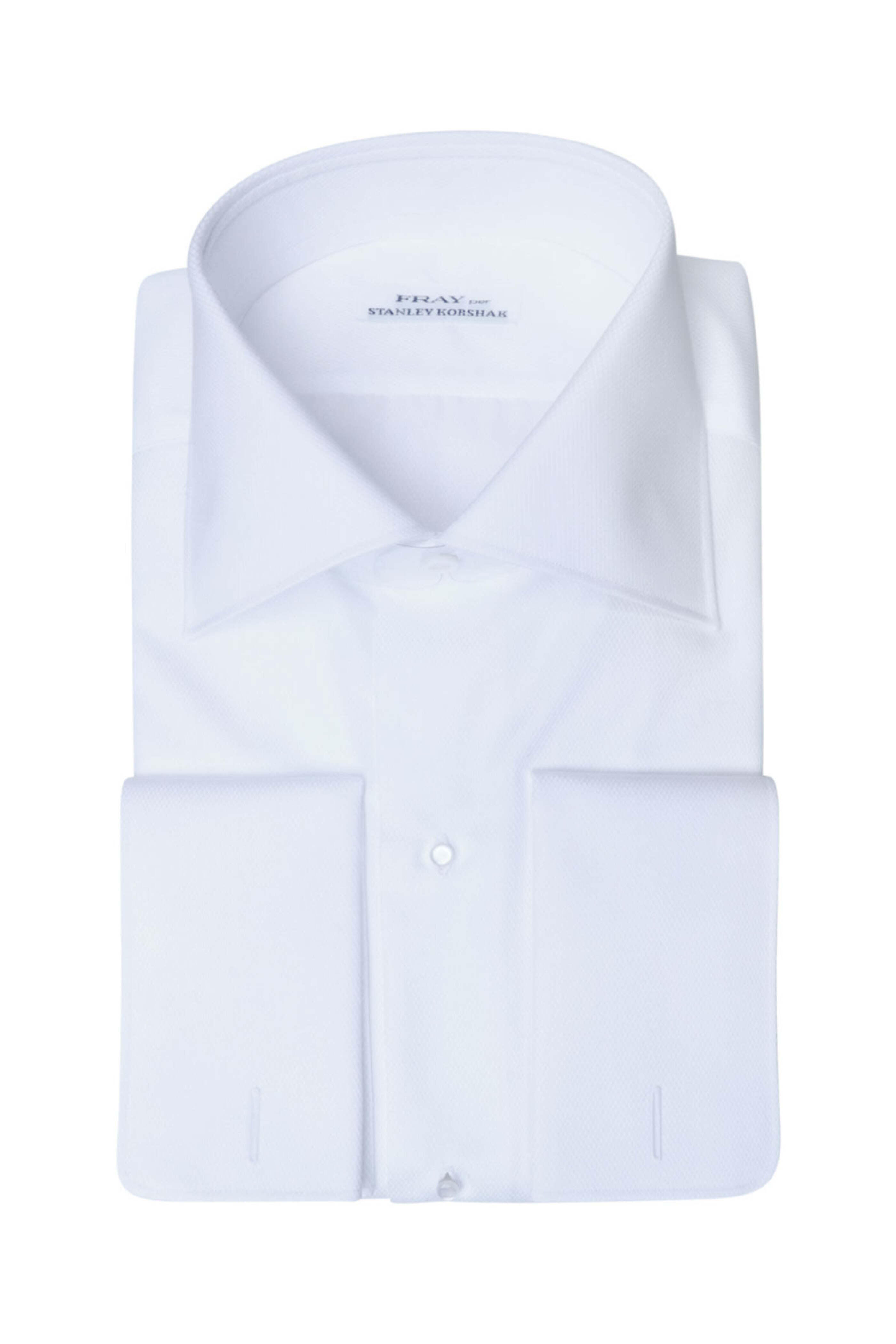 Fray Tight Diamond Weave Formal Shirt. Spread collar. Pearl buttons. Long sleeves. Double cuffs. Made in Italy. 100% cotton.