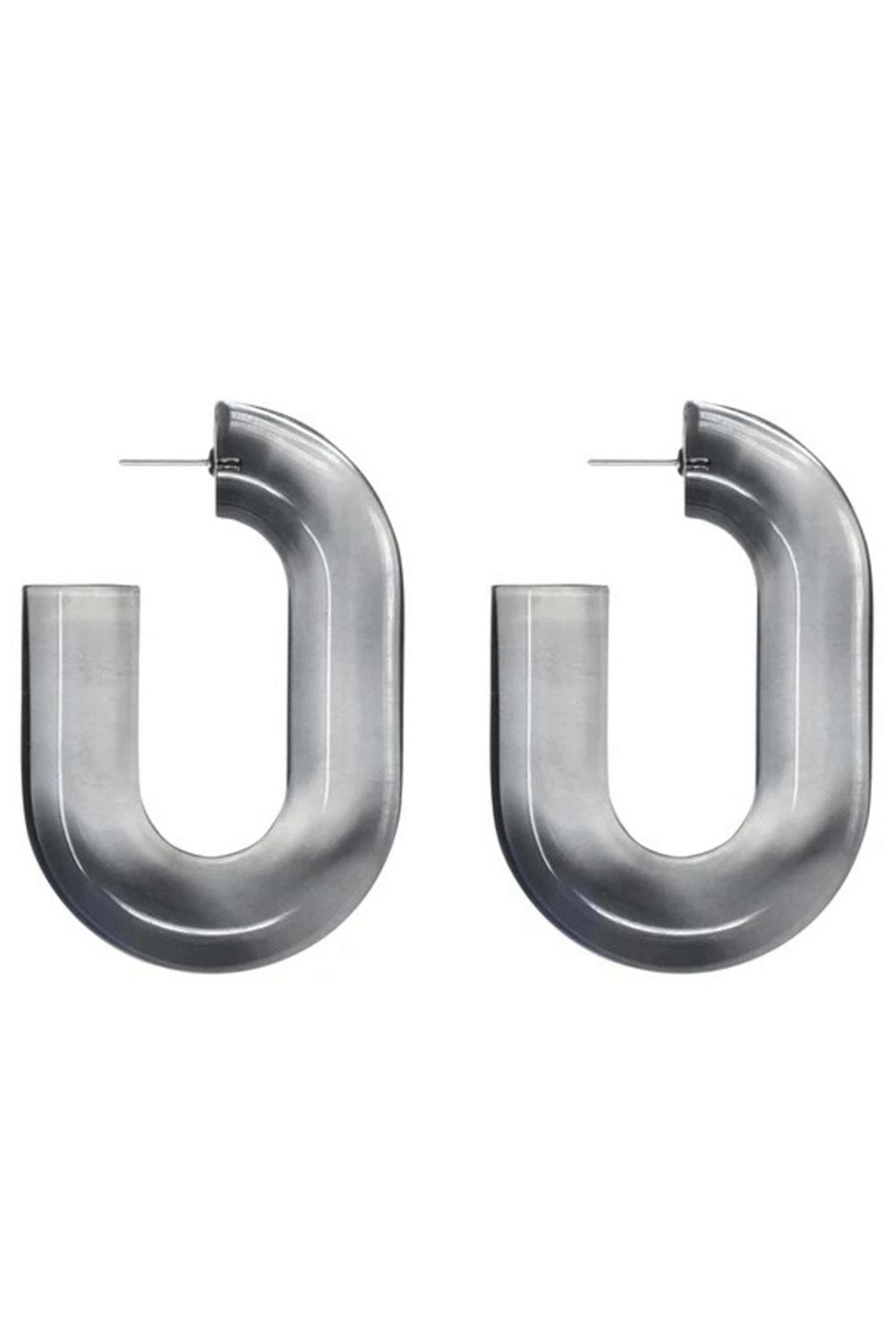 - Rachel Comey Large Grey Keeper Earrings Sculptural hoop earrings Post fastening 70 mm long 100% acrylic Sold as a pair Made in Italy