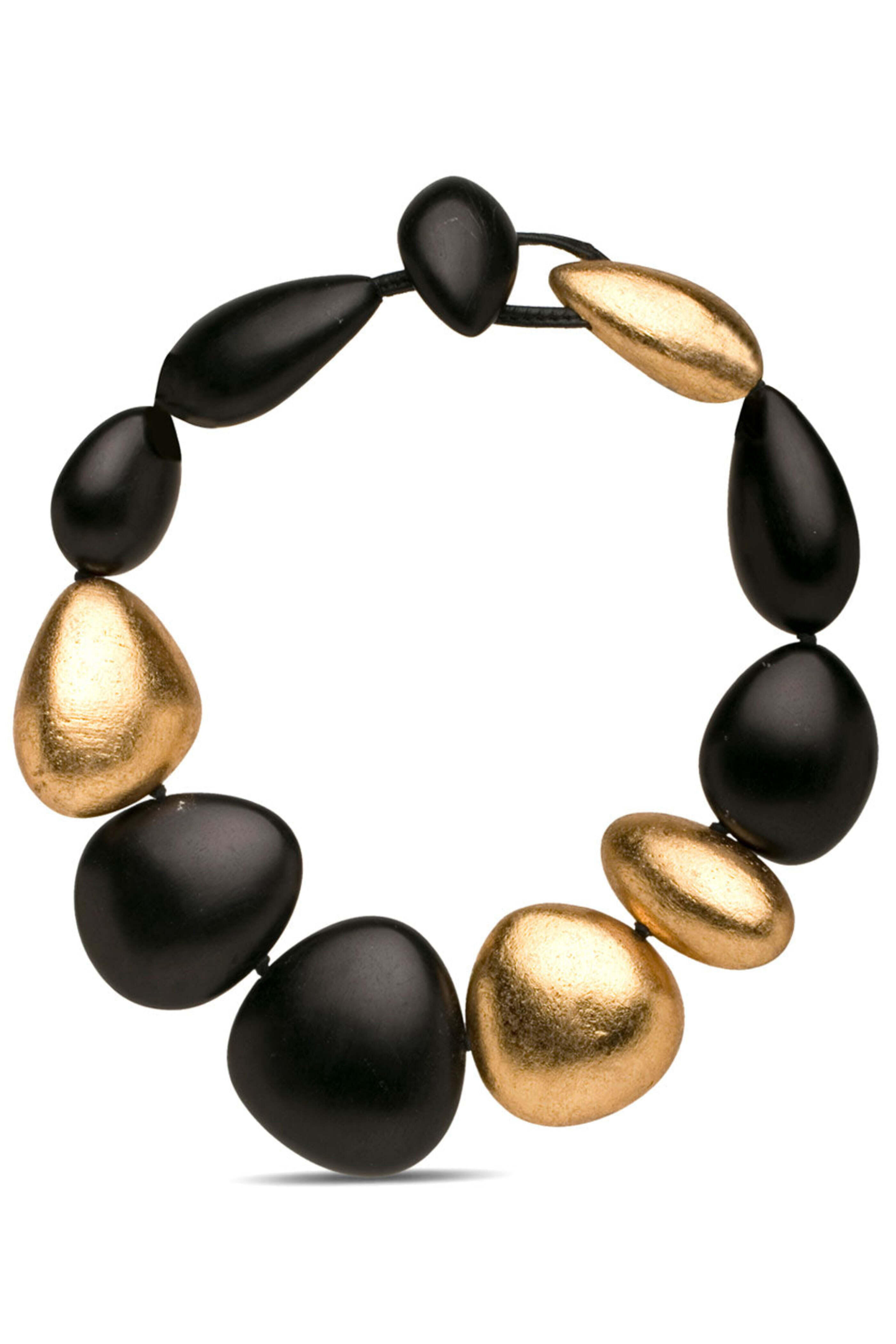 Monies Sydney Lucite and Gold Ball Necklace. Gold foil. Clear acrylic. Leather. Clear acrylic and gold balls. 8.3 L x 7.1 W x 1.4 H. Toggle clasp fastening. Made in Denmark.