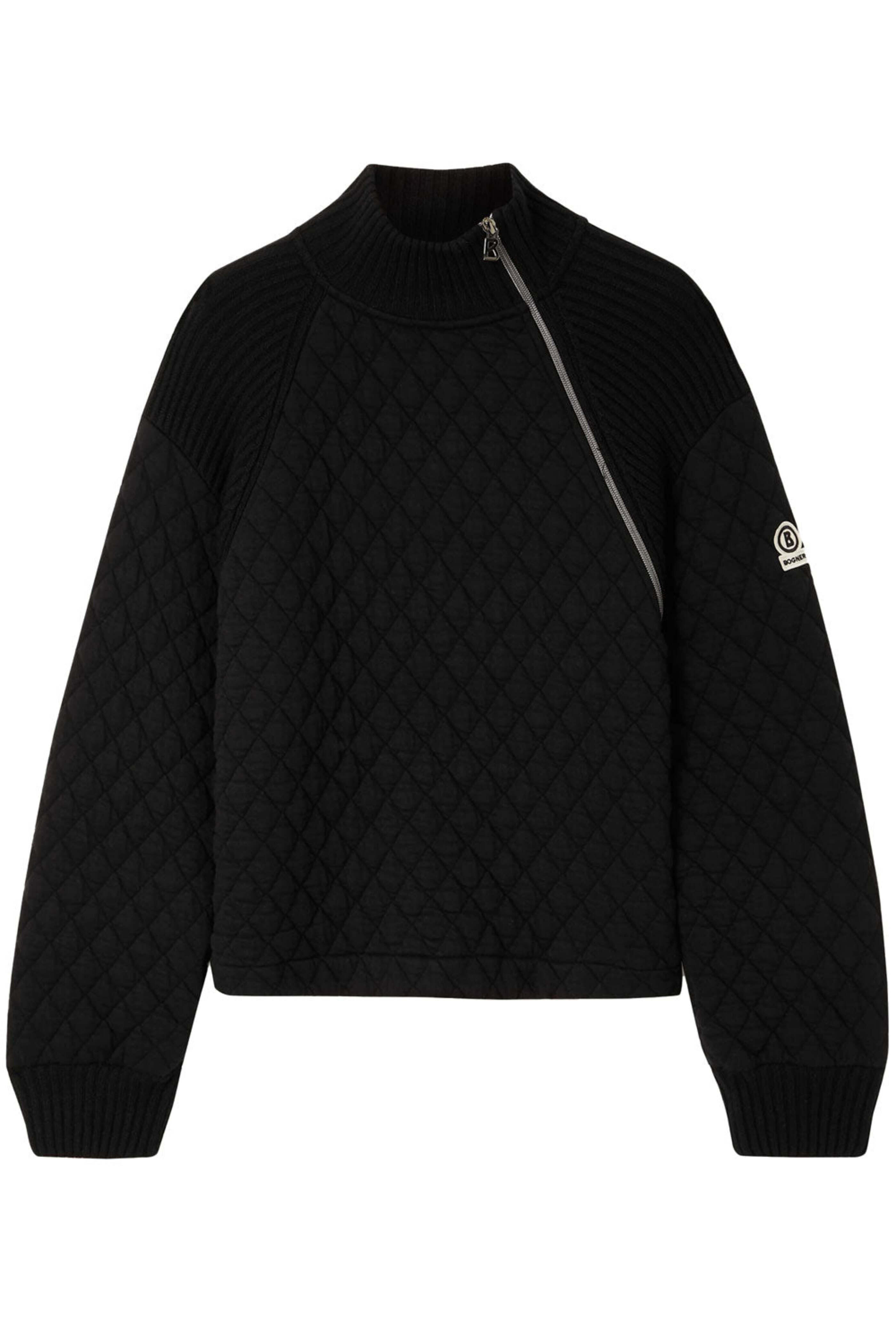 Bogner Black Kaley Quilted Turtleneck Sweater. Turtleneck. Long raglan sleeves. Ribbed at neck, shoulders, and cuffs. Diagonal zip closure at neck. Quilted fabrication. Relaxed fit. 53% cotton, 43% polyester, 4% elastane main, 37% viscose, 34% polyamide, 23% wool, 5% cashmere, 1% elastane.