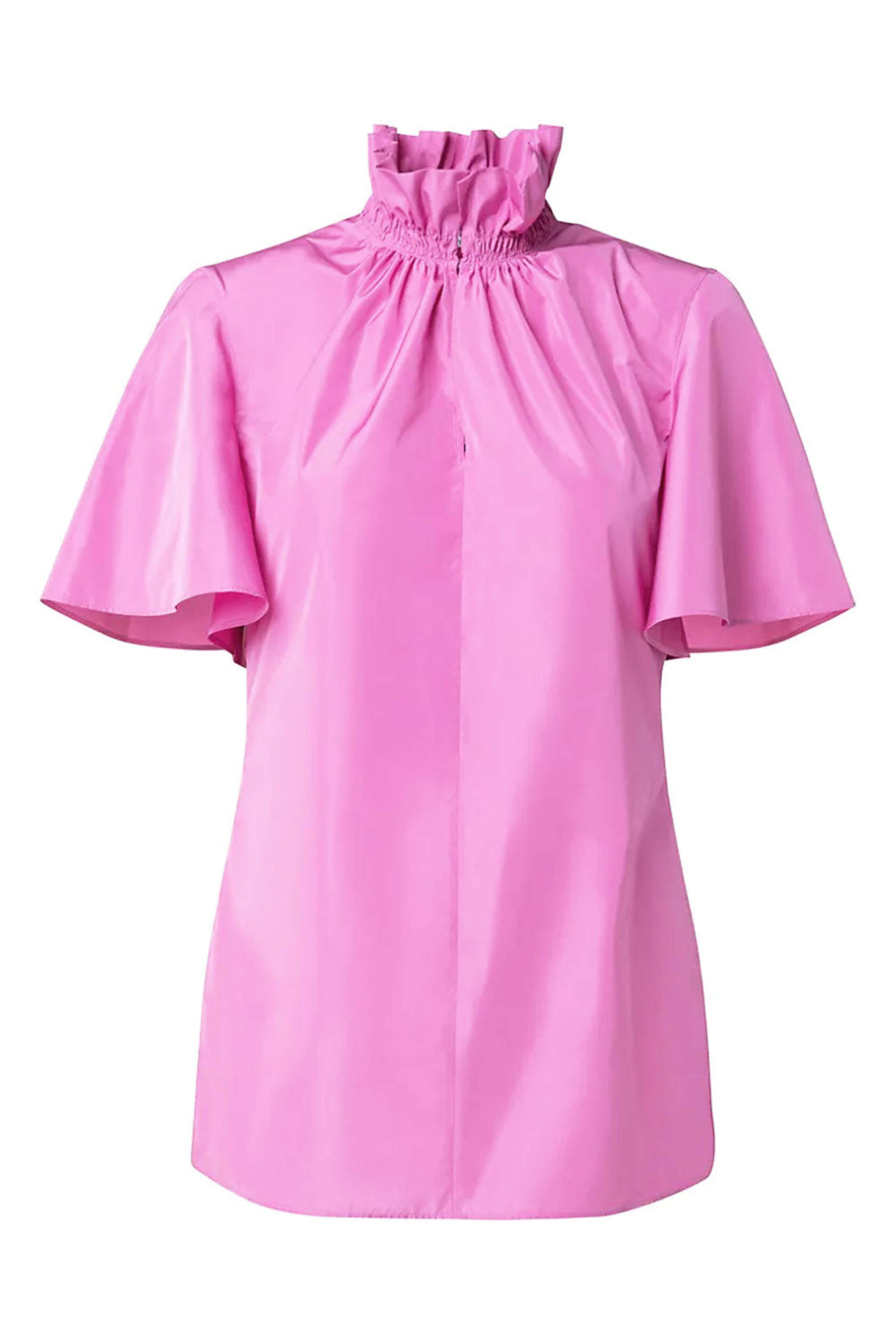 Pink Techno Taffeta Ruffle Neck Blouse