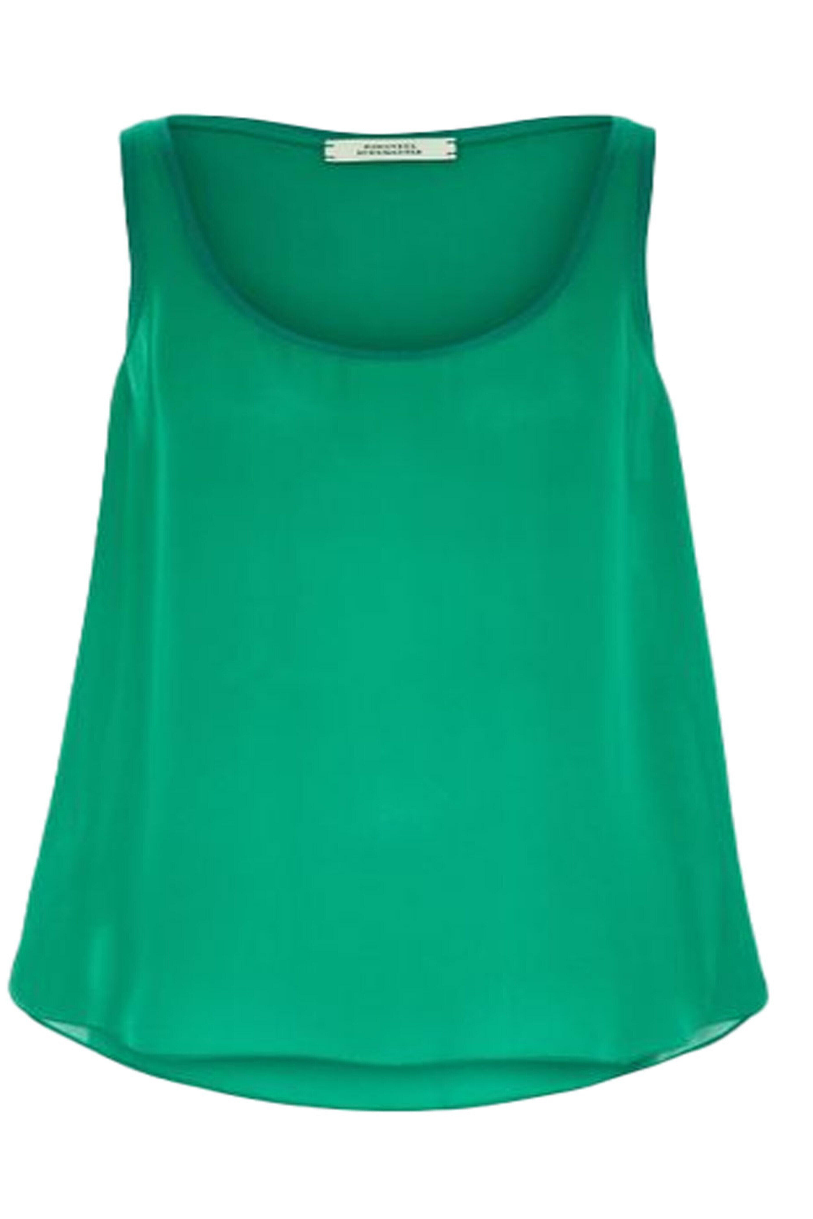 Dorothee Schumacher Vibrant Green Sophisticated Statement Top. Scoop neckline; rib trim. Thin straps. Closed back. Relaxed fit. 100% Silk.
