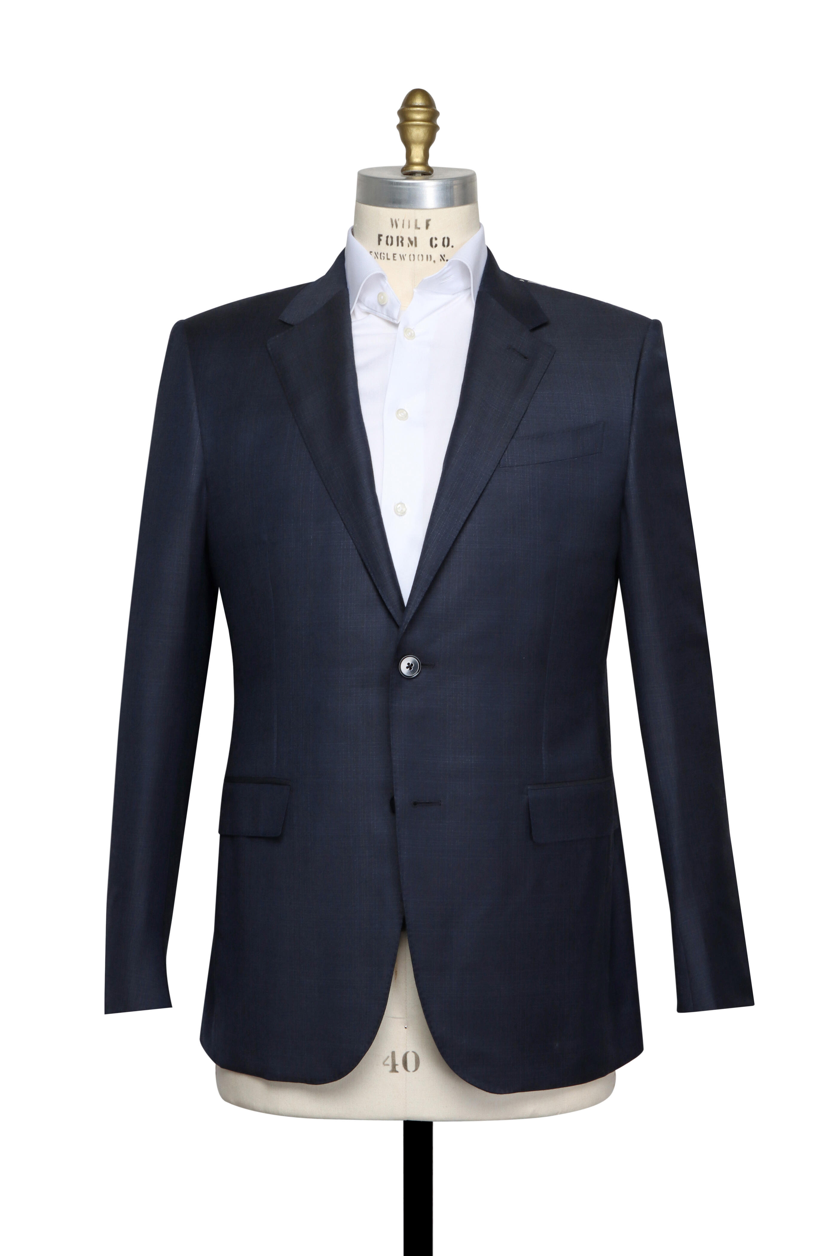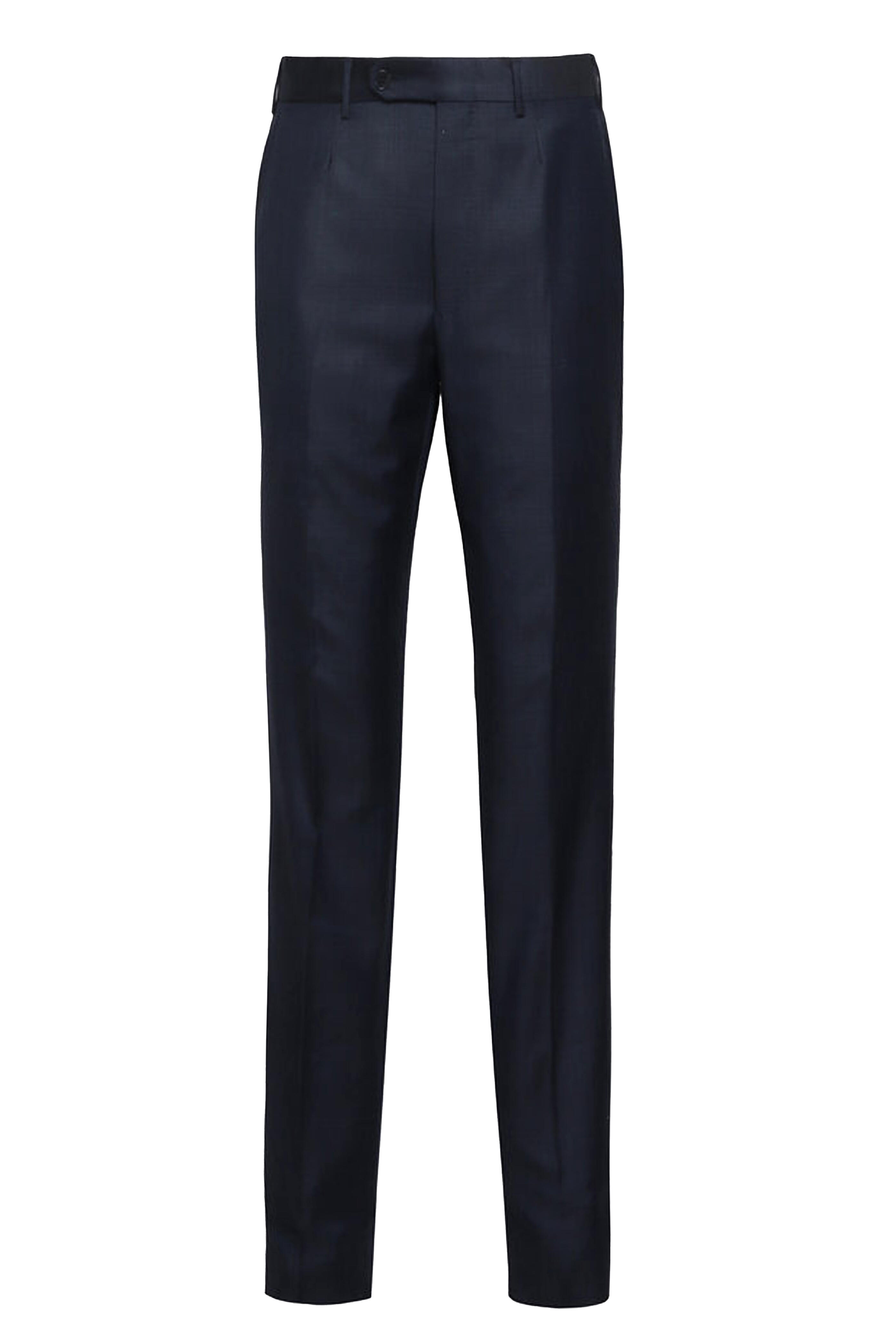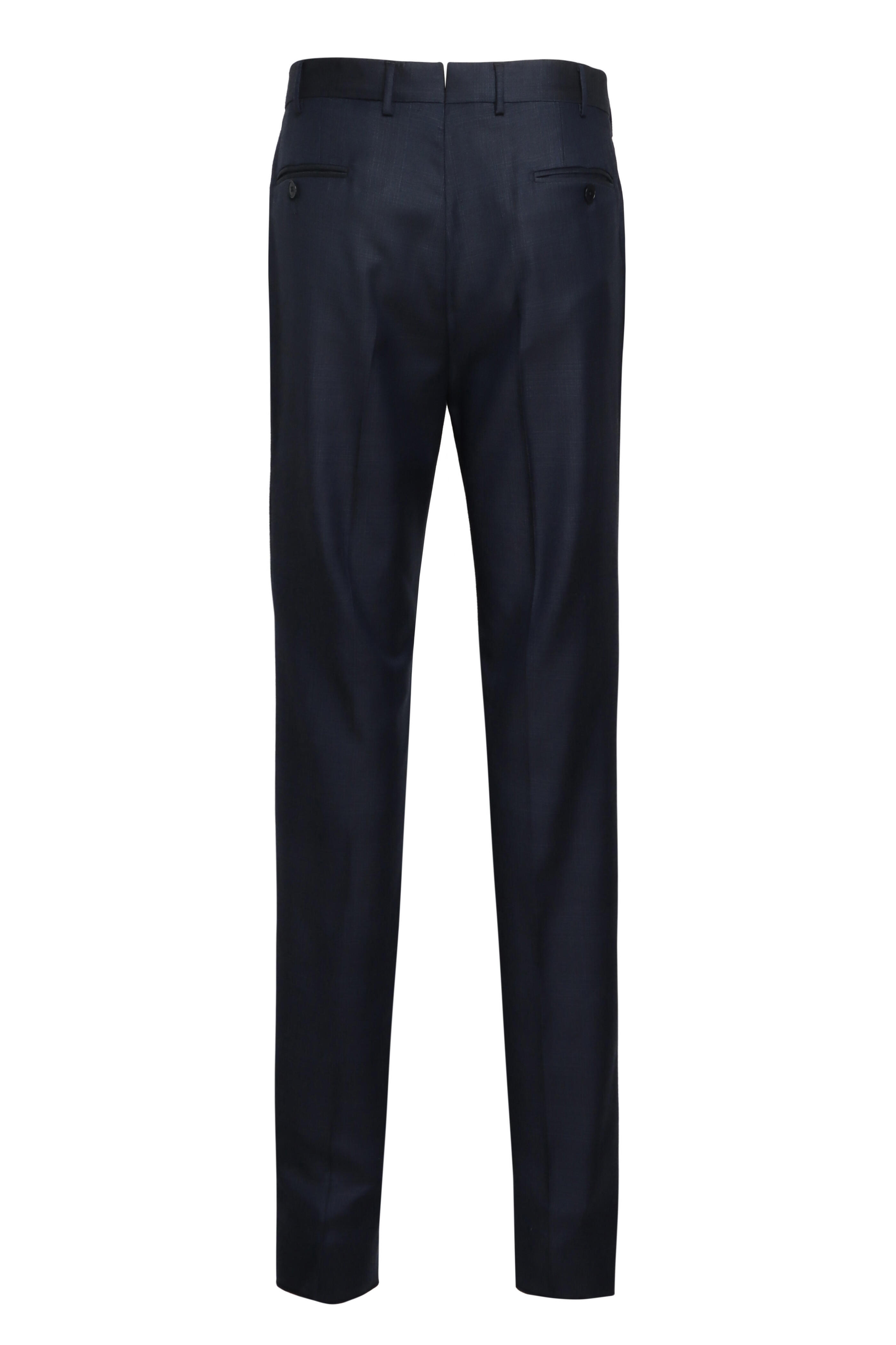 Made in Italy. Jacket: Notch lapels. Double button closure. Chest welt pocket; Lower waist flap pockets. Unfinished buttonholes. Double back vents. Pants: Banded waist; belt loops. Zip fly; extended button tab. Front slip pockets; back besom pockets. Unfinished hem. 100% wool; fully lined. Dry clean.