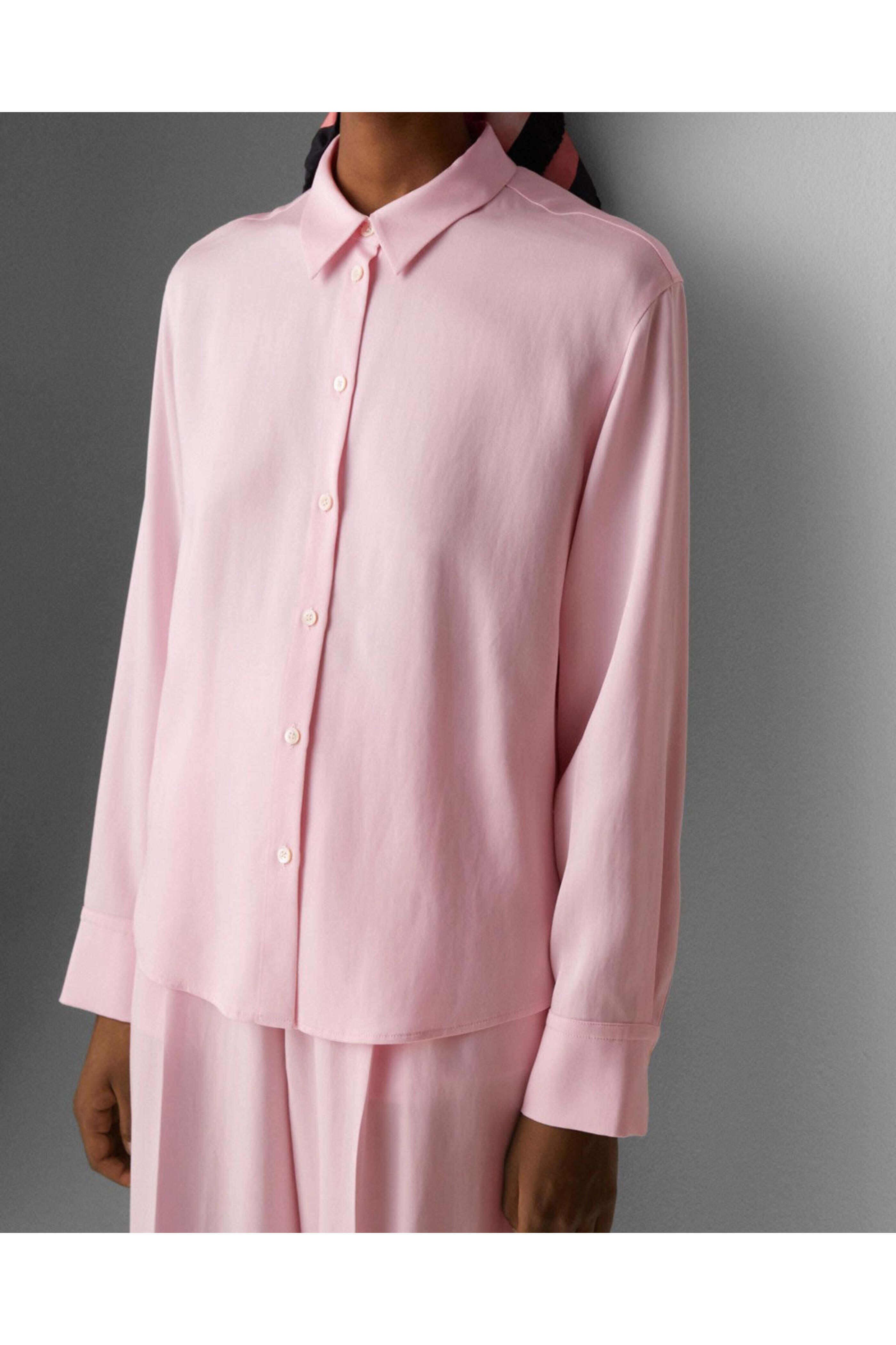 Bogner Primrose Linda Blouse. Kent collar. Long sleeves; button cuffs. Button down front closure. Back pleat and tab detail. Relaxed fit. Rounded hem. 100% lyocell.