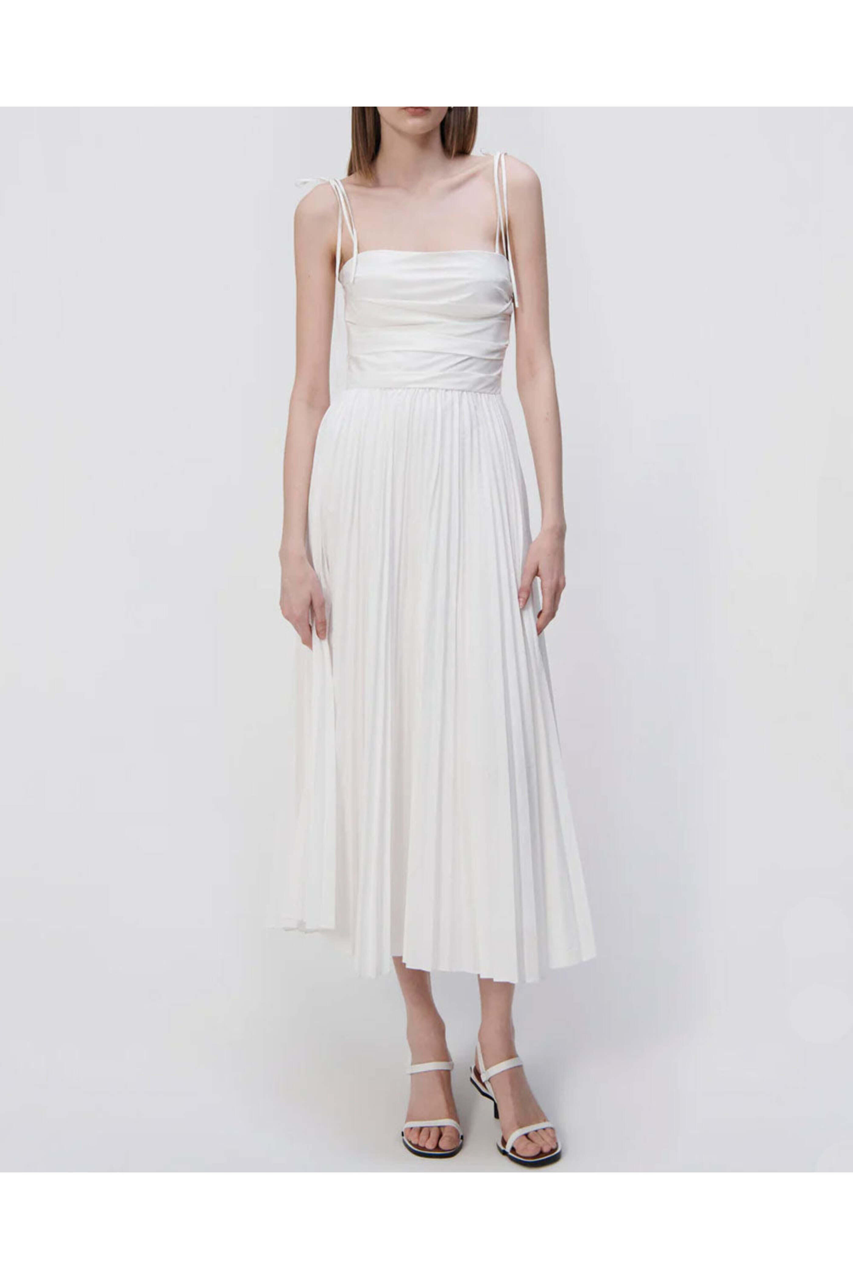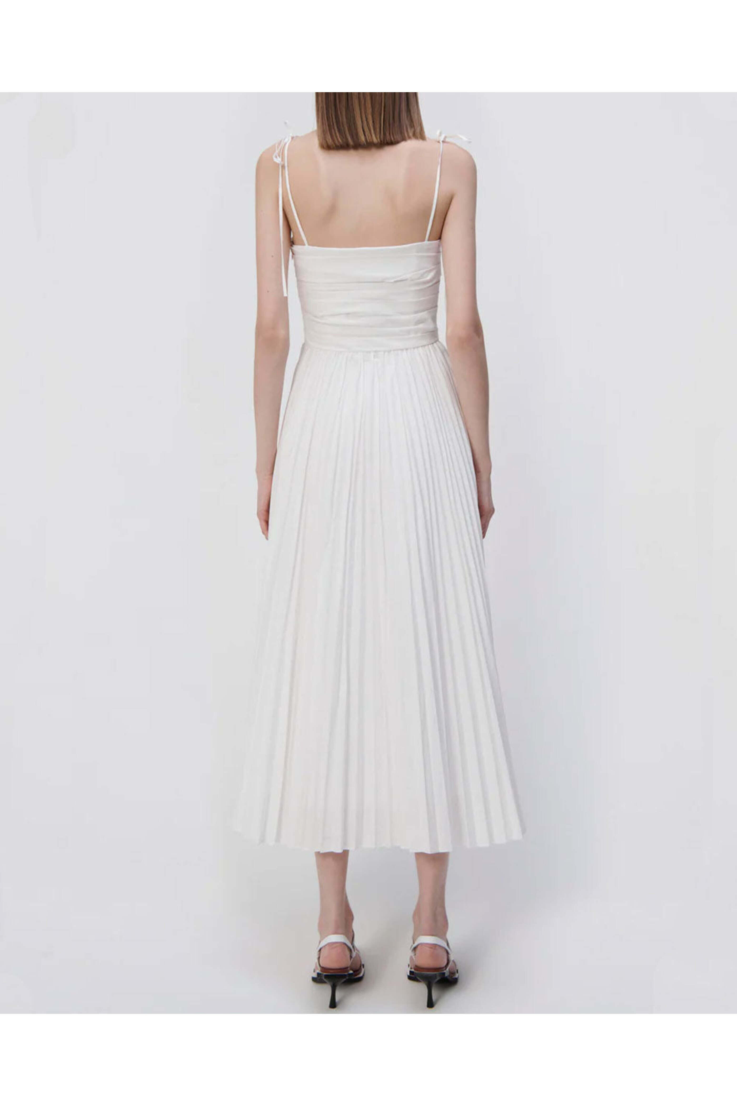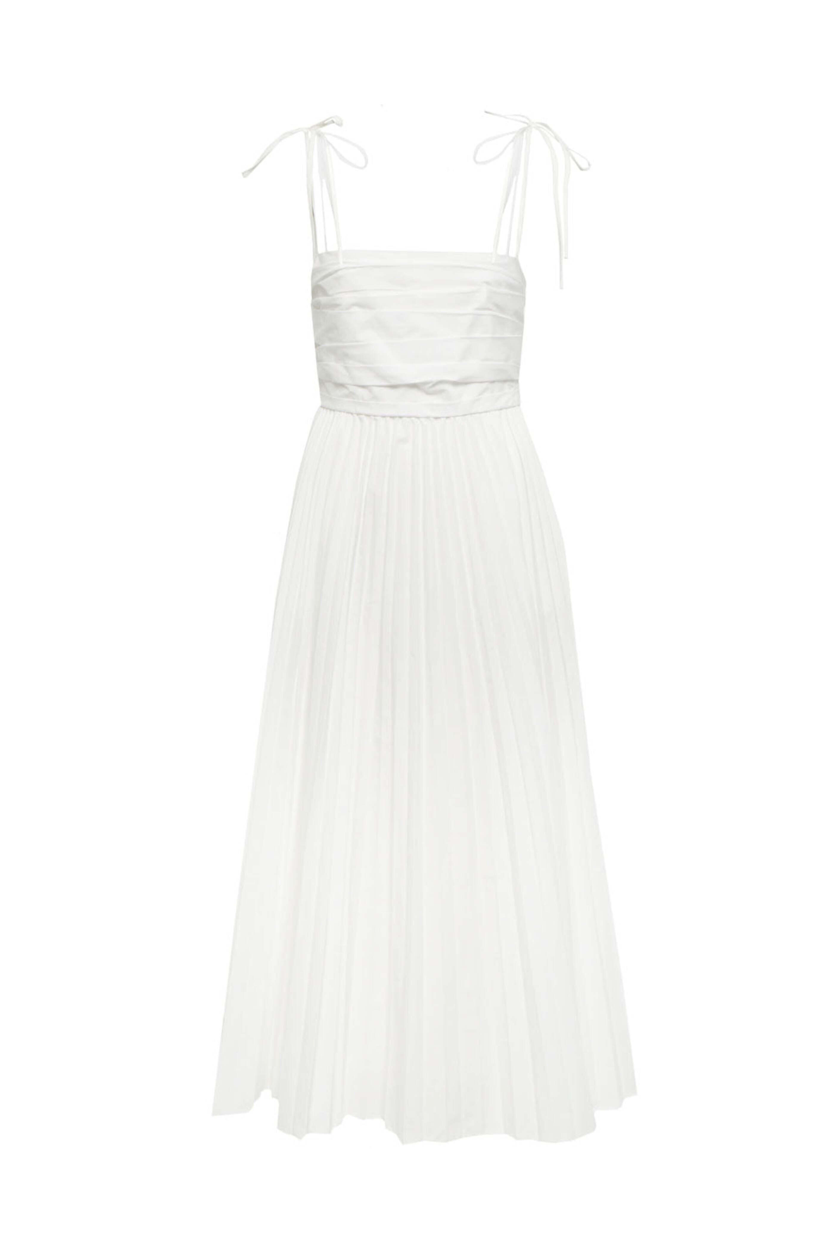 - SIMKHAI White Cotton Poplin Caroline Pleated Midi Dress