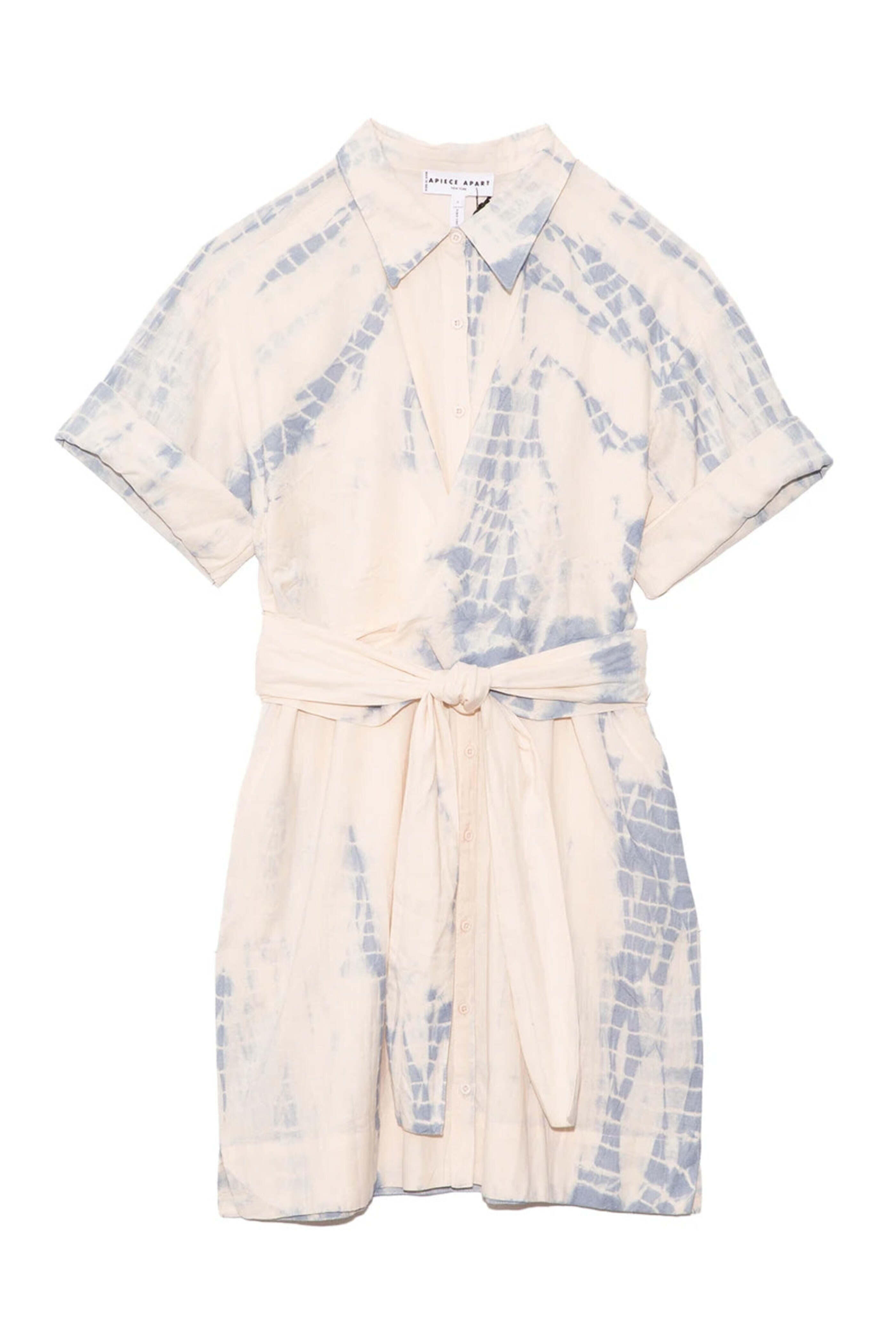 - Apiece Apart Shibori Nicoya Mini Wrap Shirt Dress