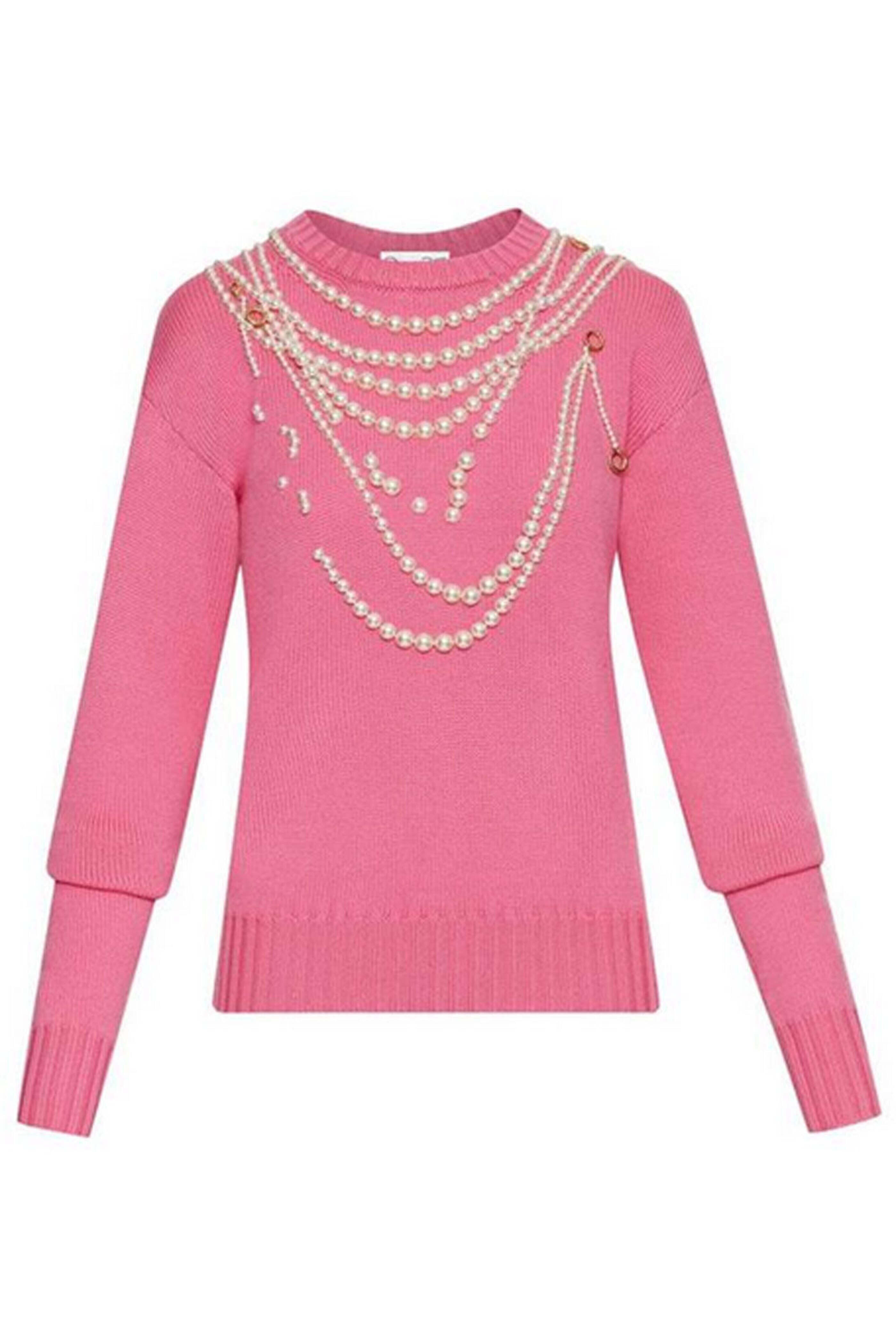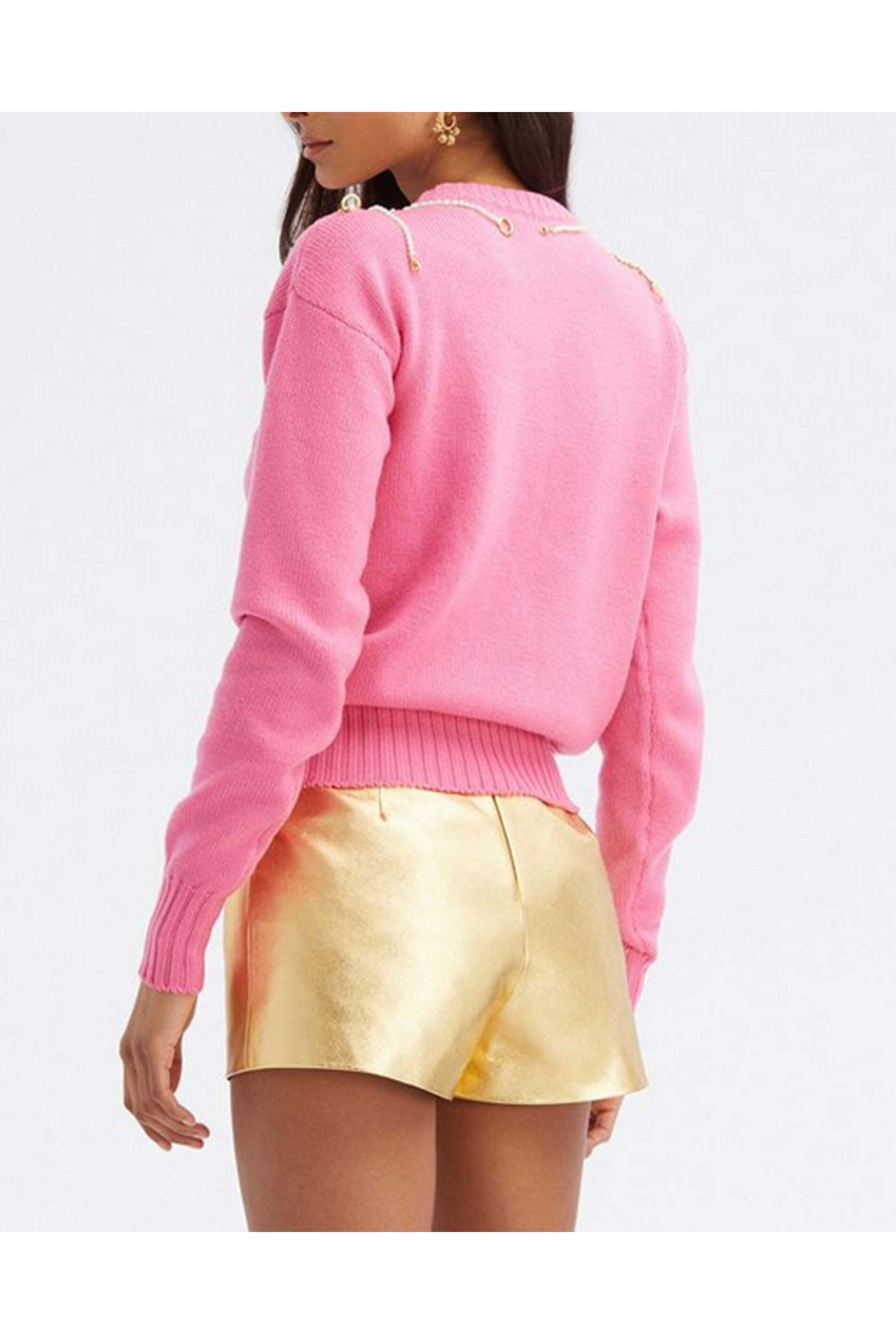 - Oscar de la Renta French Pink Pearl Embroidered Sweater