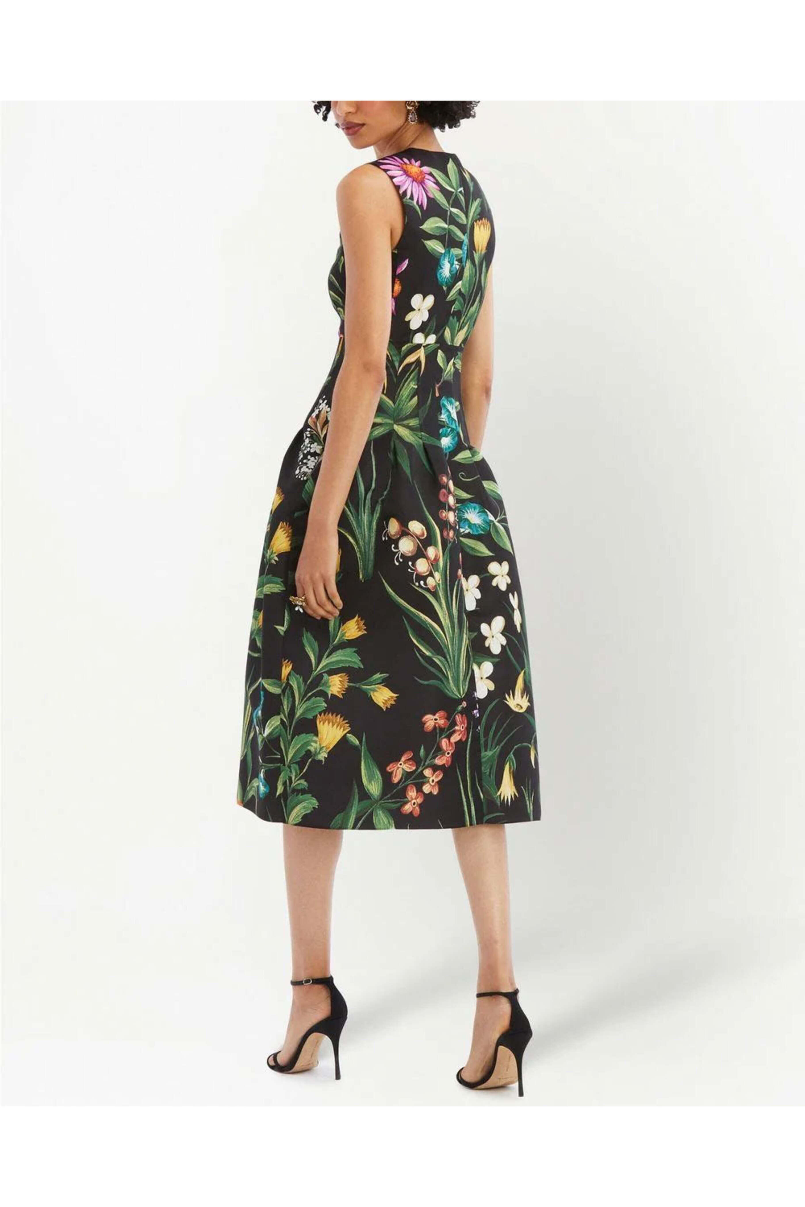 - Oscar de la Renta Black Floral Tapestry Sleeveless Faille Dress