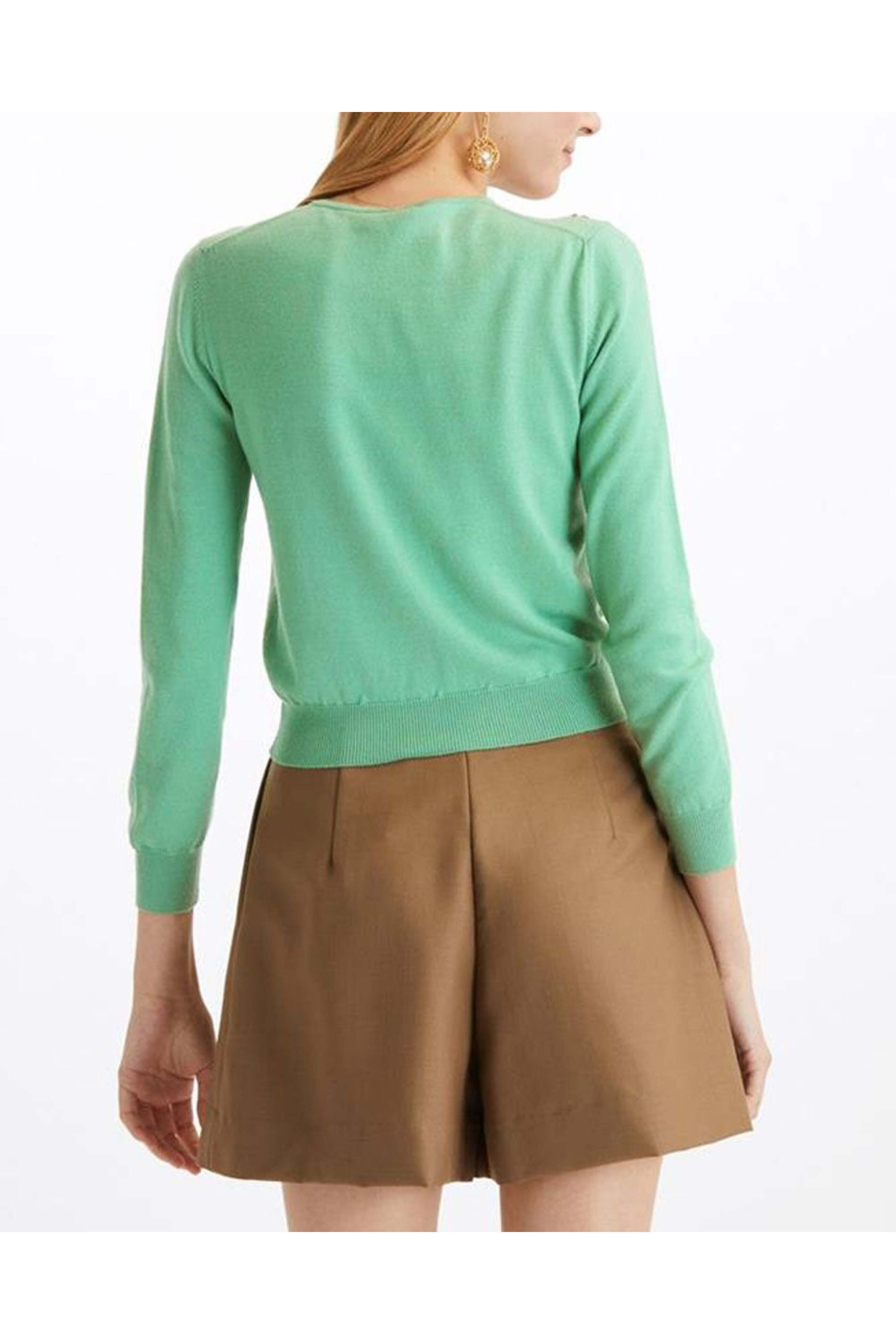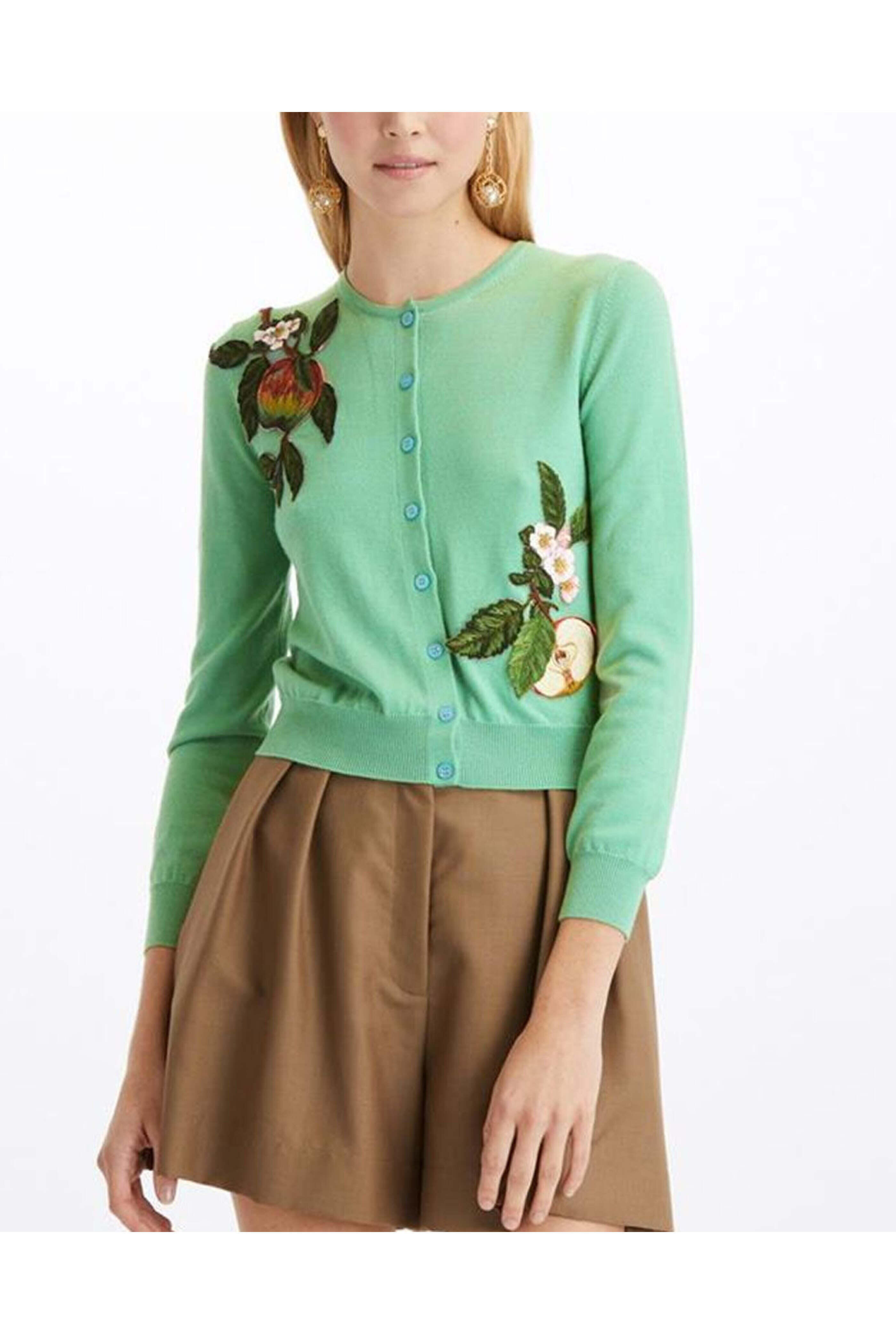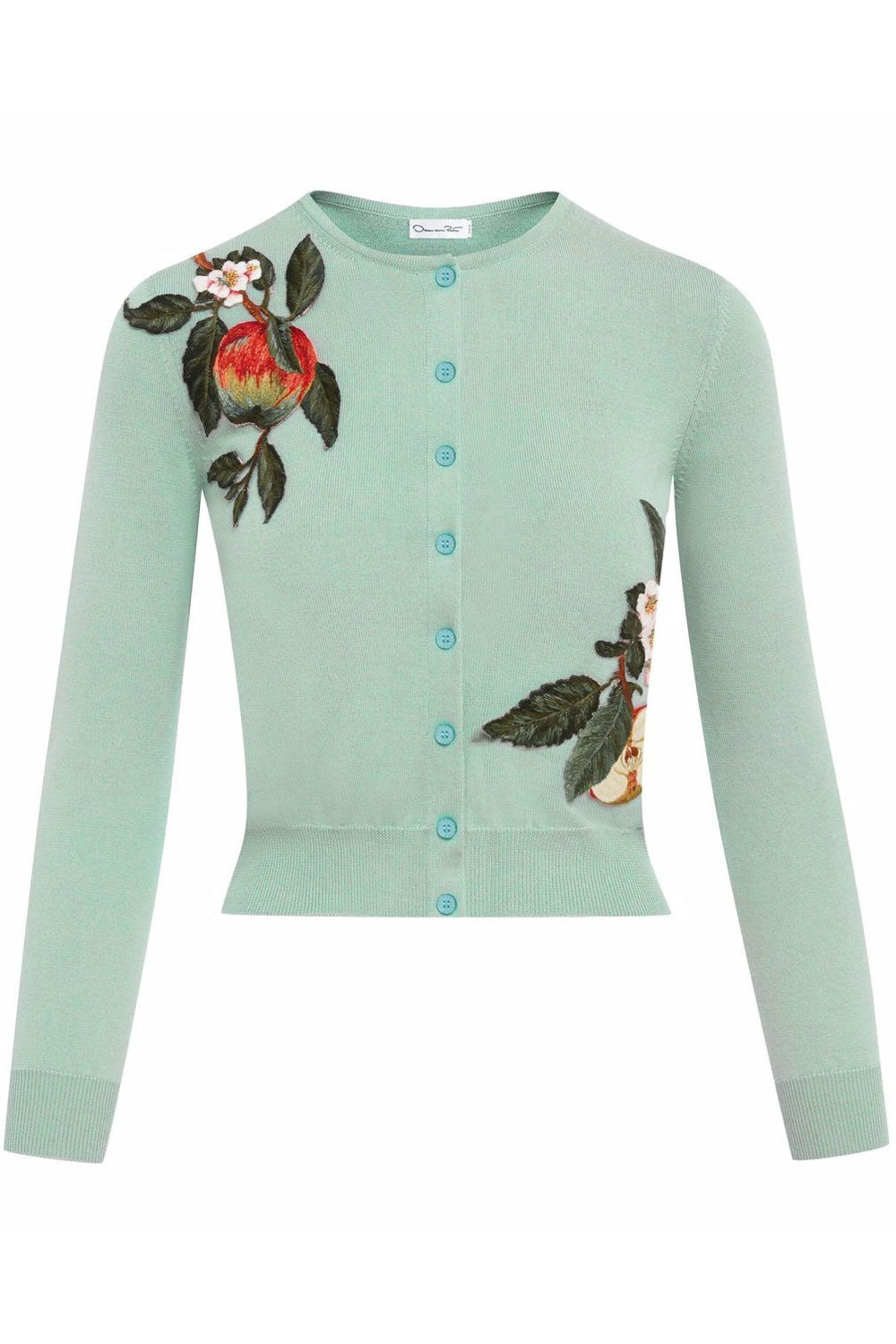 - Oscar de la Renta Seaglass Apple and Leaves Button Down Cardigan
