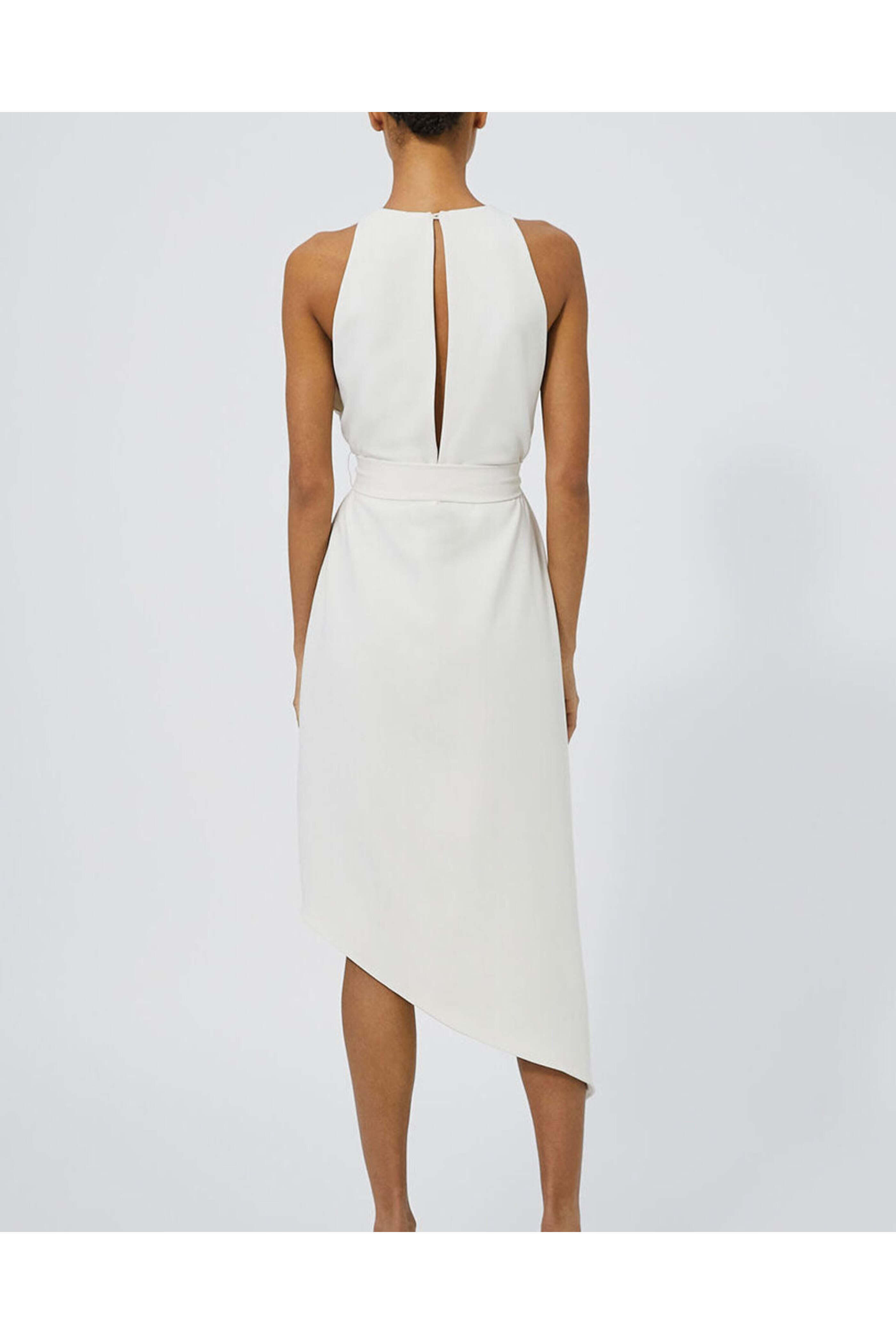 Iro Ecru Jely Dress. Round neck. Sleeveless. Back zip closure. Belted waist. Asymmetrical hem. 100% polyester.