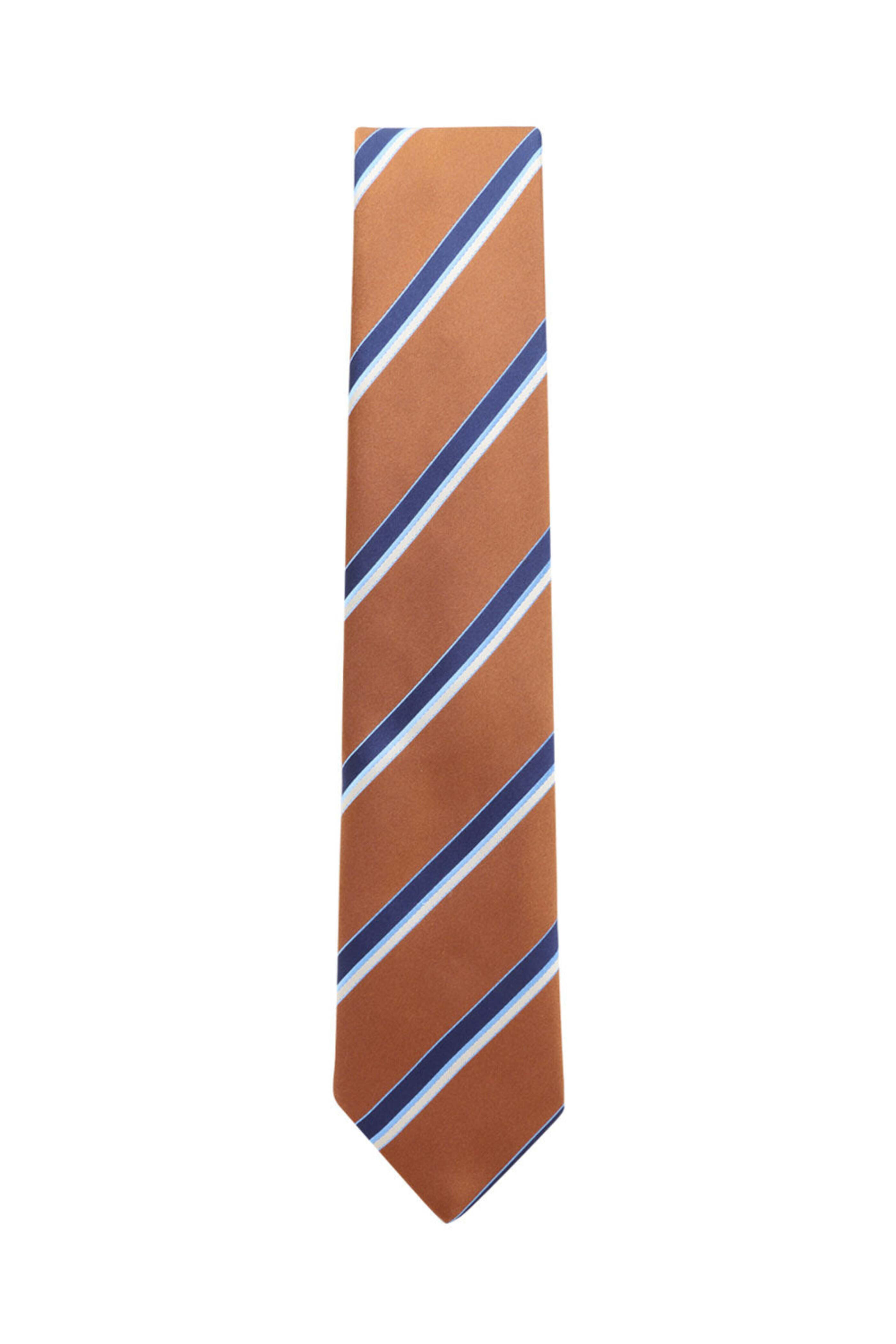 Brown and Navy Triple Striped Silk Tie
