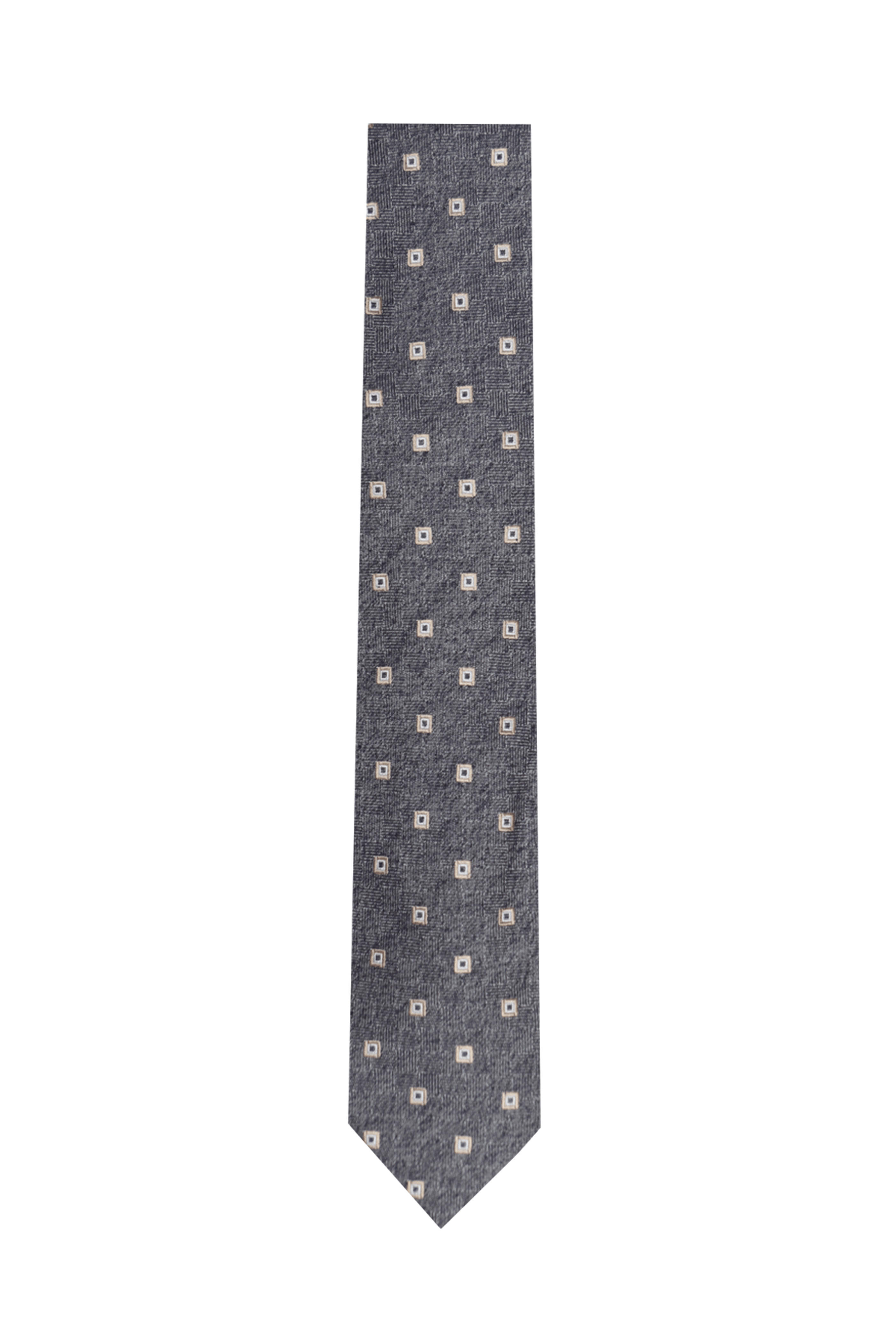 Geoff Nicholson Grey and Beige Dot Silk Tie. Seven-fold tie. 59 L x 3 W. Made in Italy. Dry clean only. 100% silk.