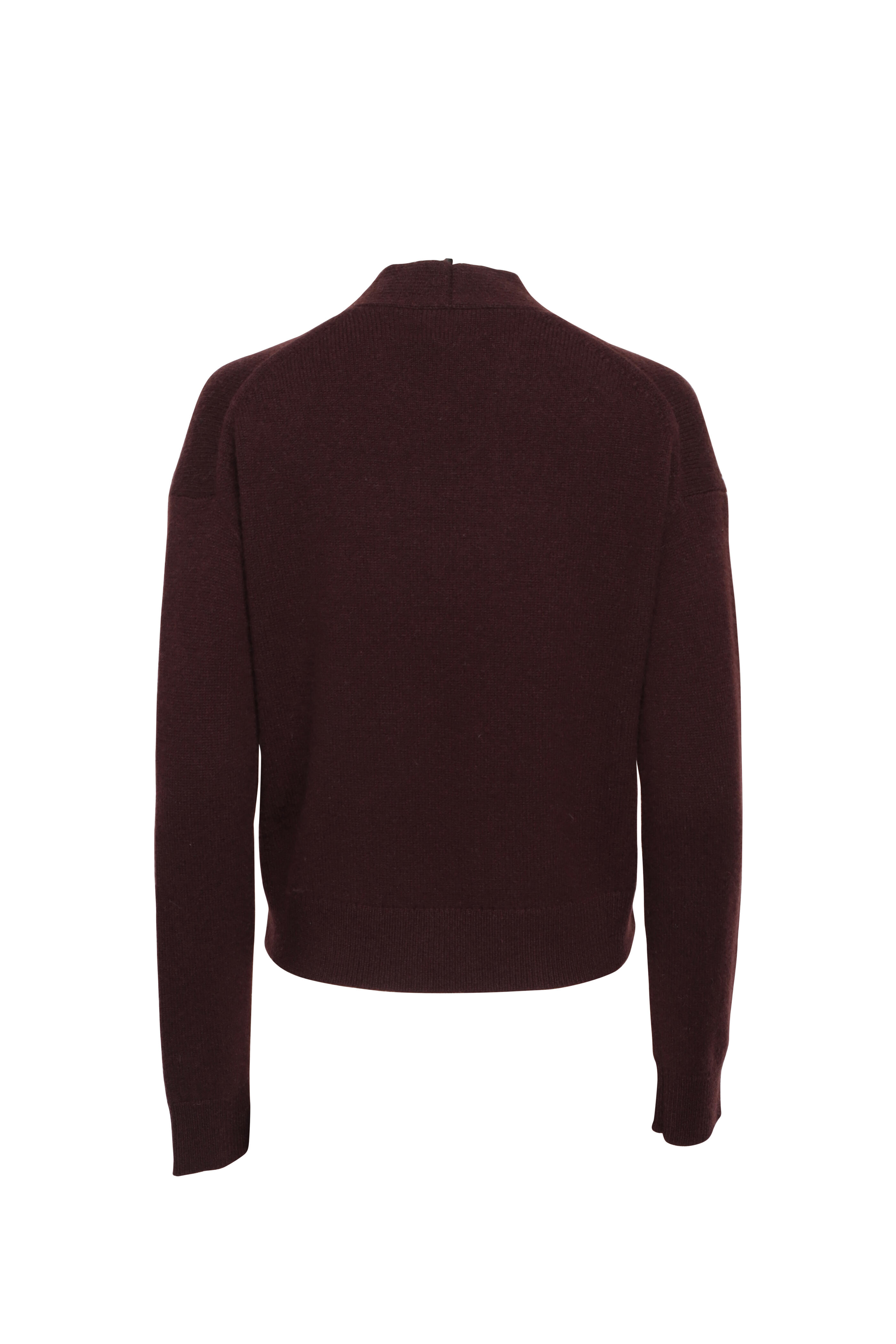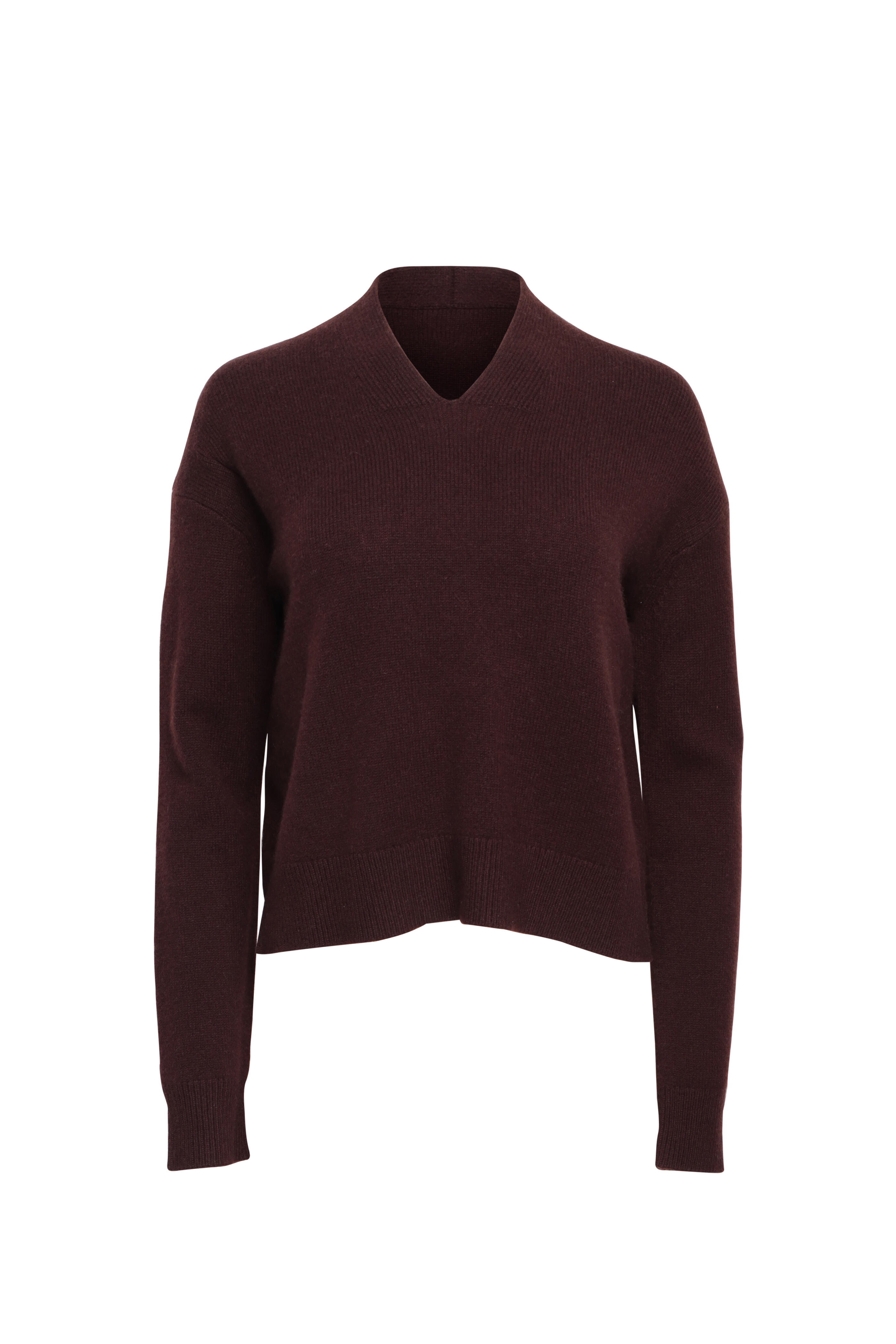 V neck. Drop shoulders. Long sleeves. Boxy fit. Ribbed hem. Imported. Cropped length. 100% cashmere. Machine washable.