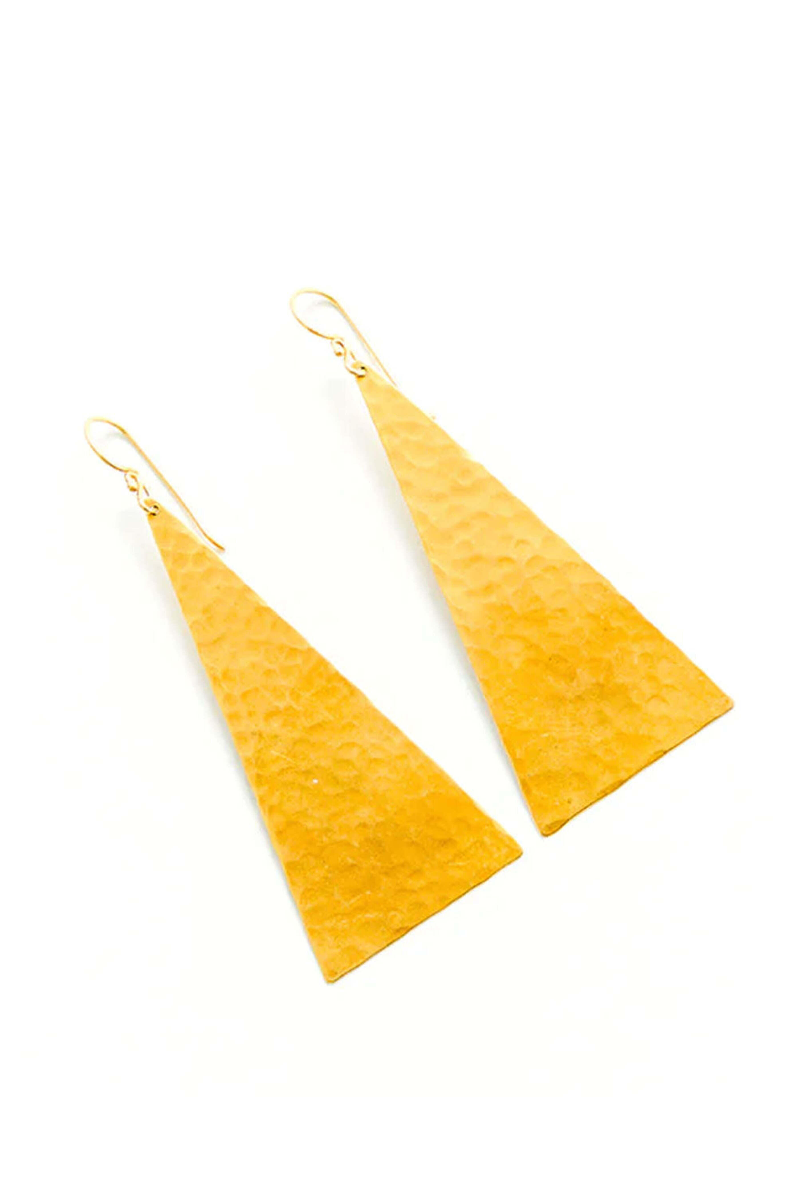 22k yellow gold. Large sheet triangle style. Fish hook backs. Length: 3".