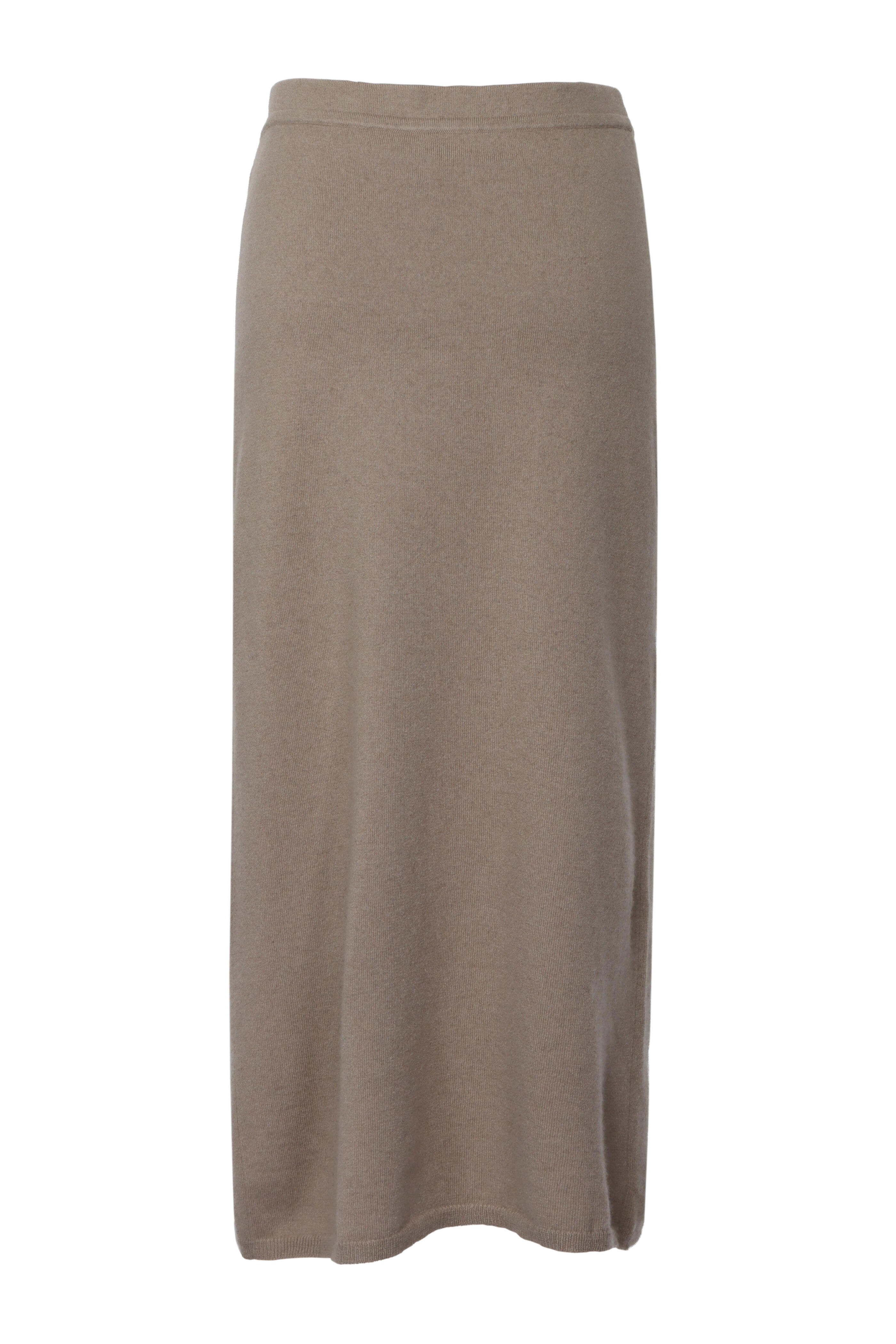 Mid rise. Elastic waist. Faux wrap silhouette. Imported. Midi length. 55% cashmere, 45% cotton. Dry clean.