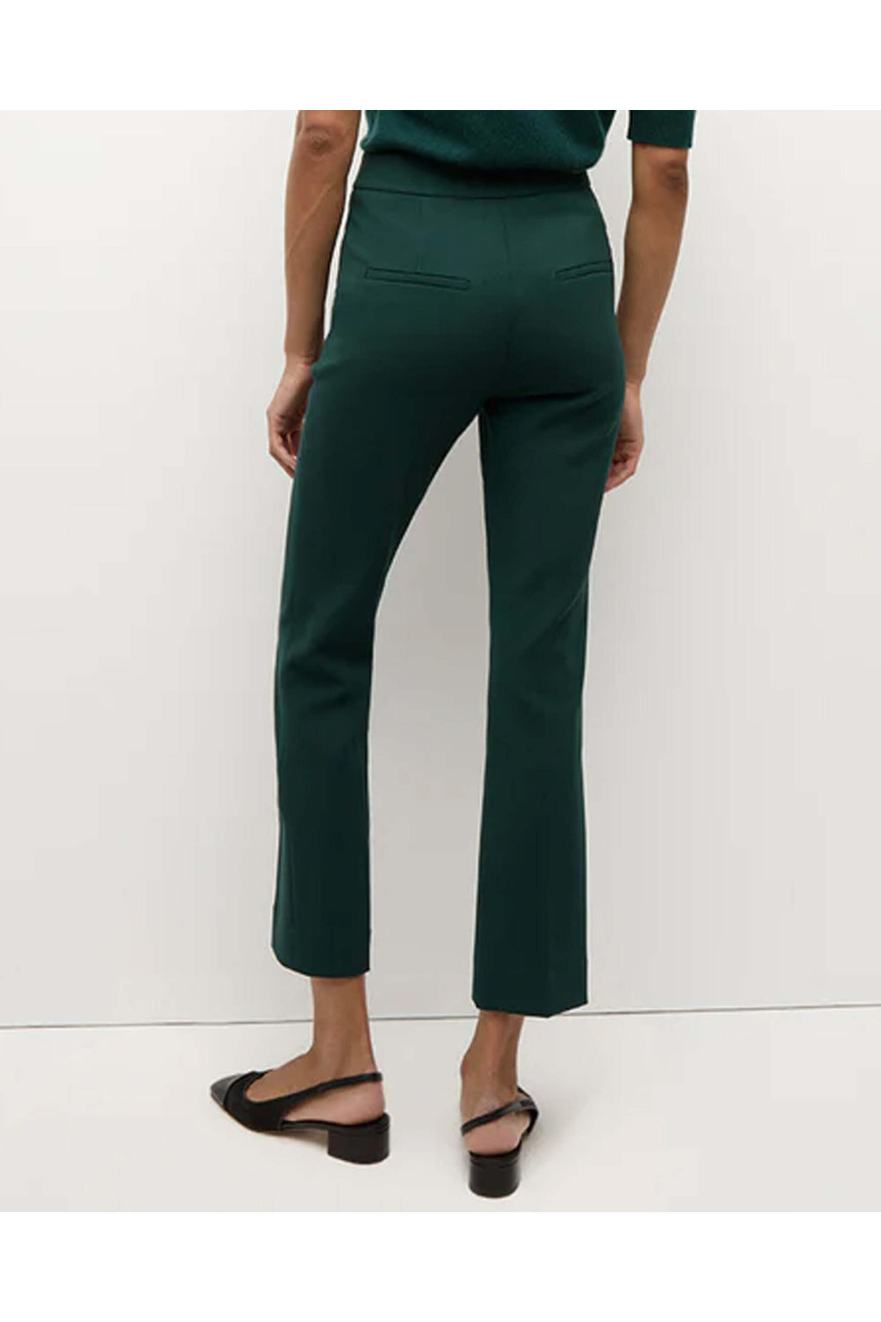 Veronica Beard Pine Arte Pant. High rise. Hook and eye closure. Zip fly. Side slip pockets. Back welt pockets. Straight silhouette. Cropped length. Lined. 63% polyester, 27% viscose, 7% cotton, 3% elastane outer 100% polyester lining.