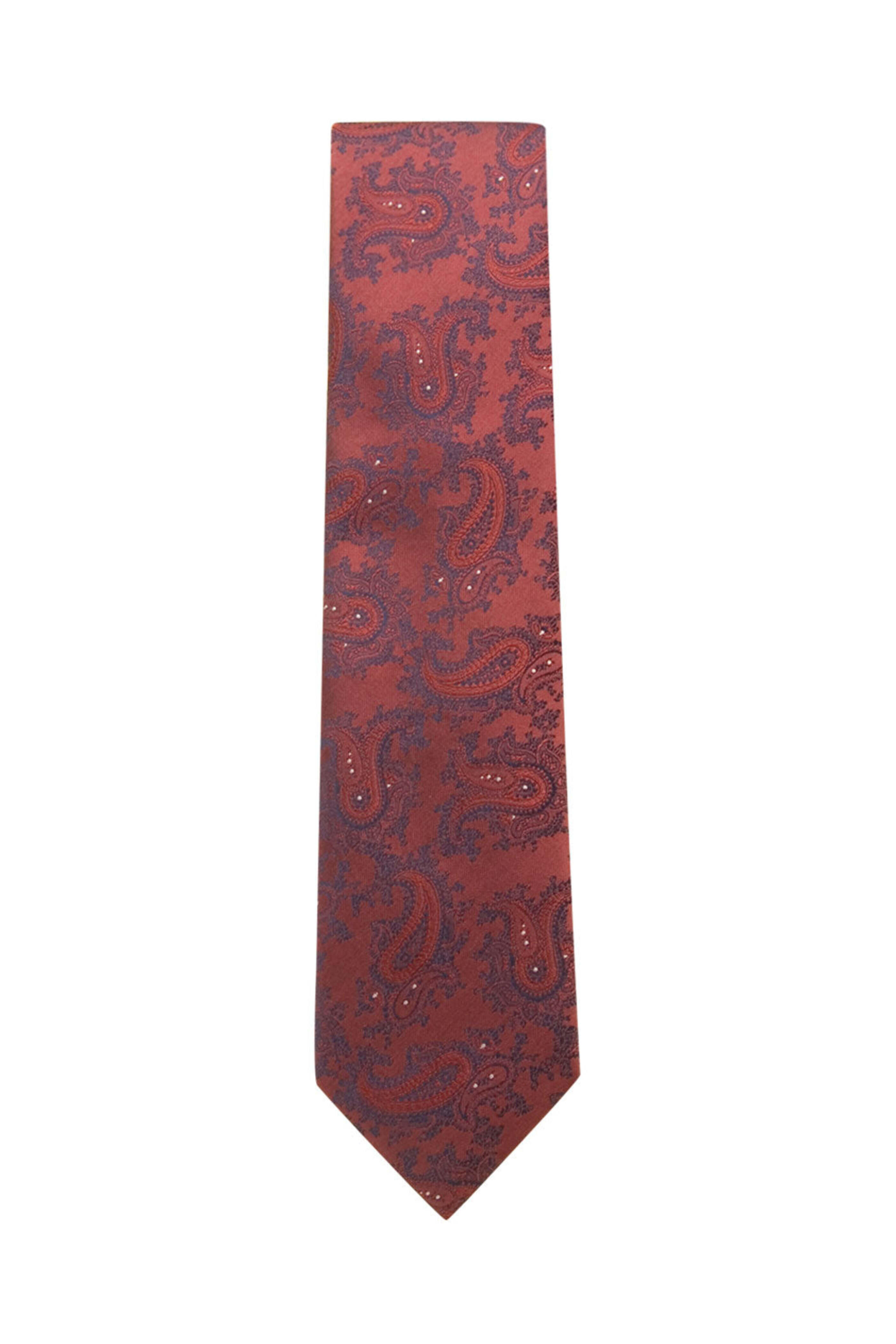 Brioni Mahogany and Navy Paisley Silk Tie. 59€ L x 3.14€ W. Handmade in Italy. 100% silk.