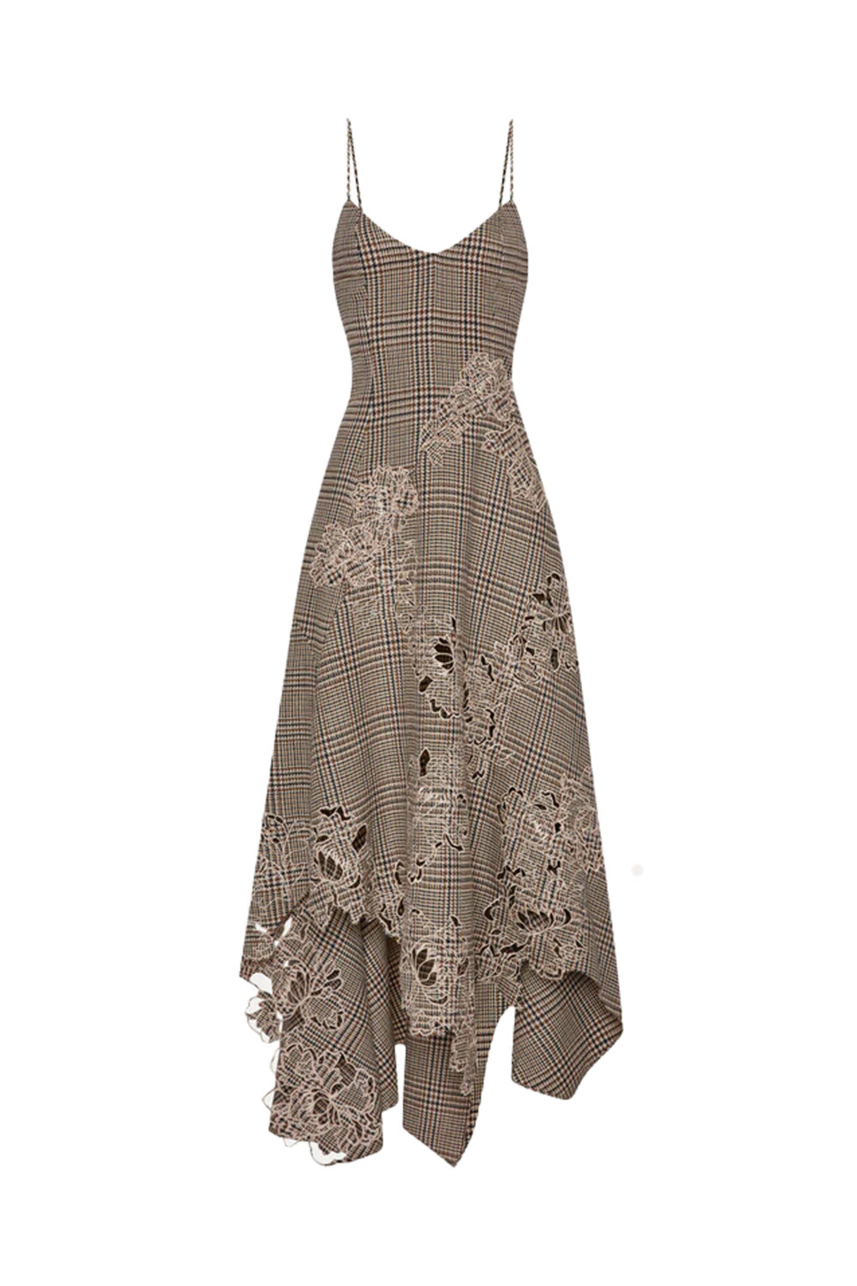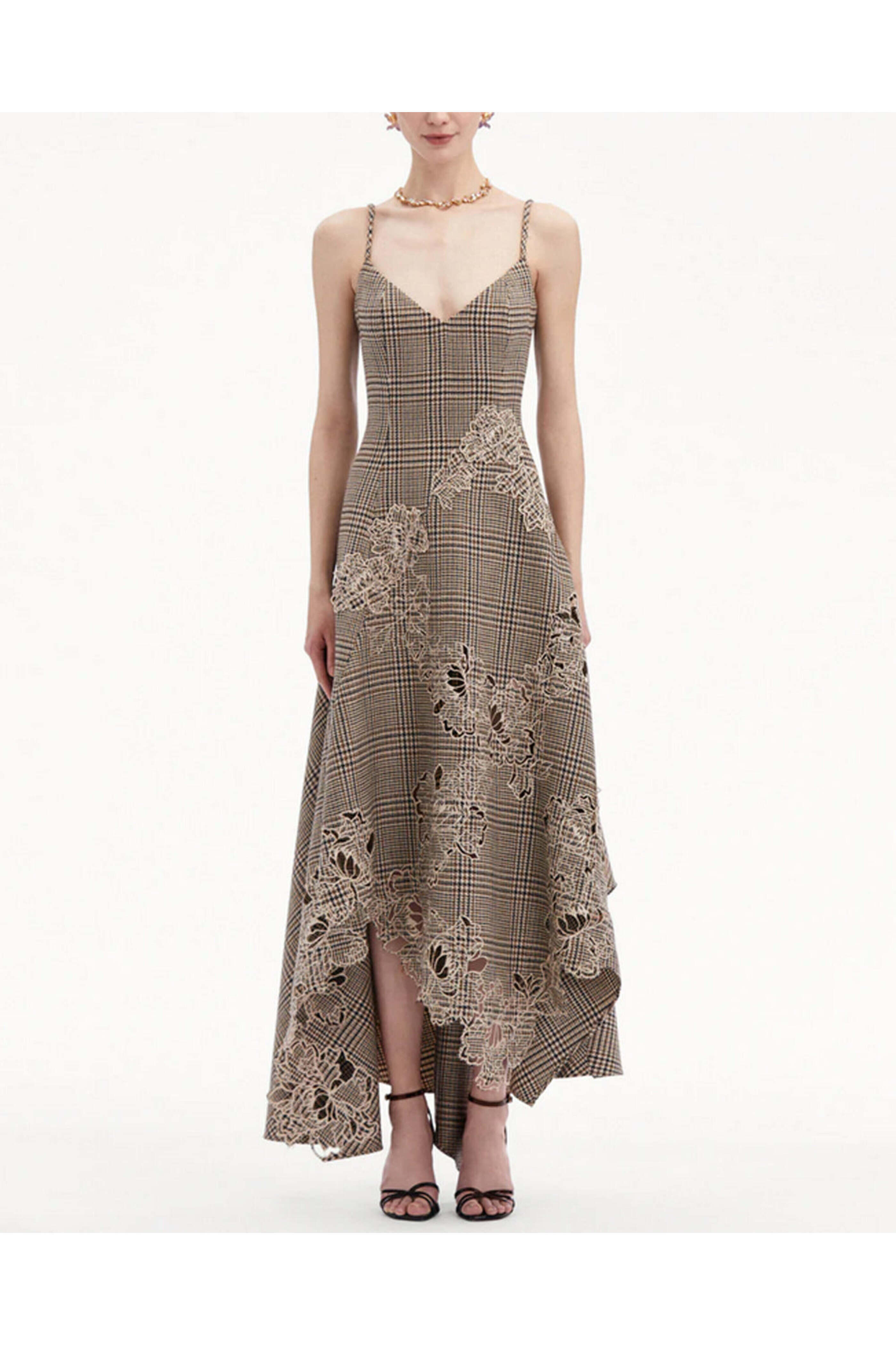 Cocoa Check Peony Guipure Lace Applique Midi Dress