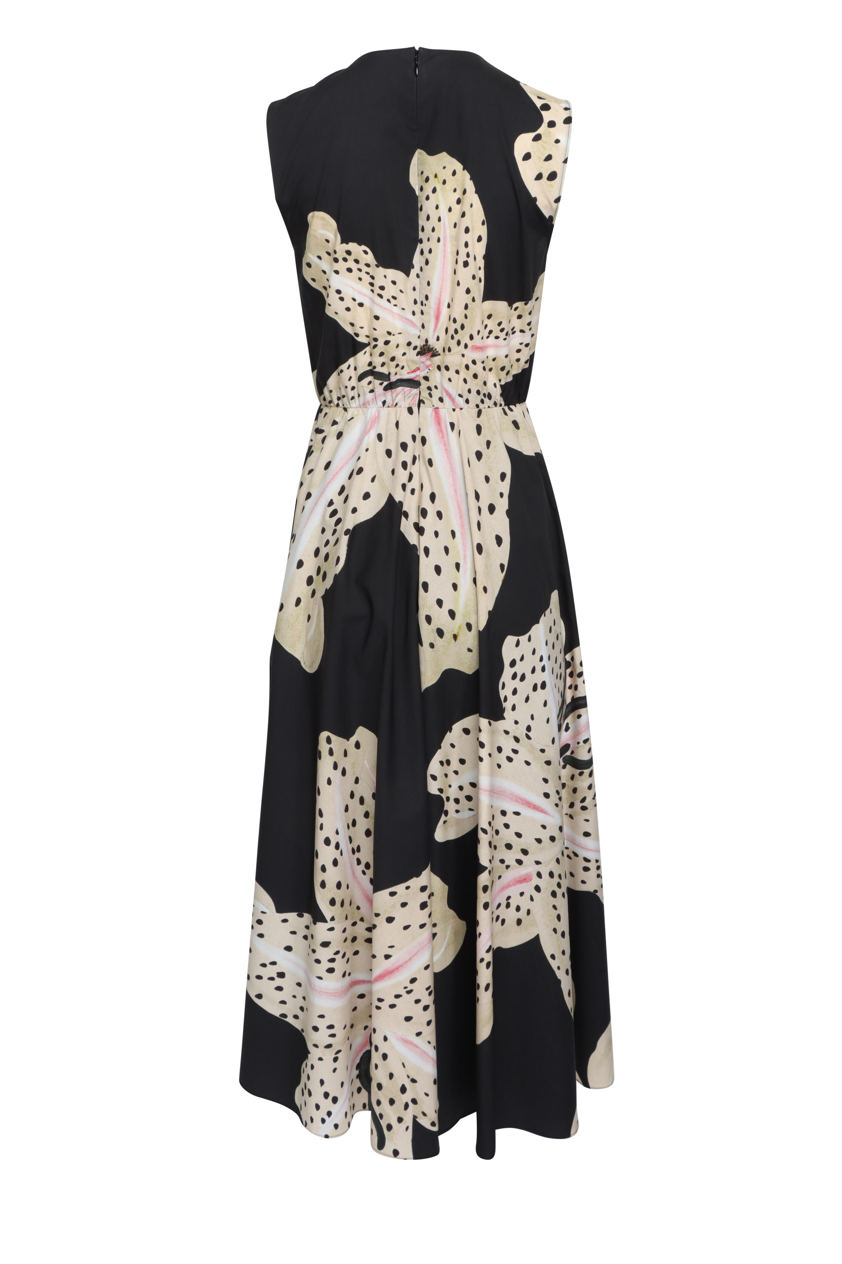 Black Micro Lilies Sleeveless Midi Dress