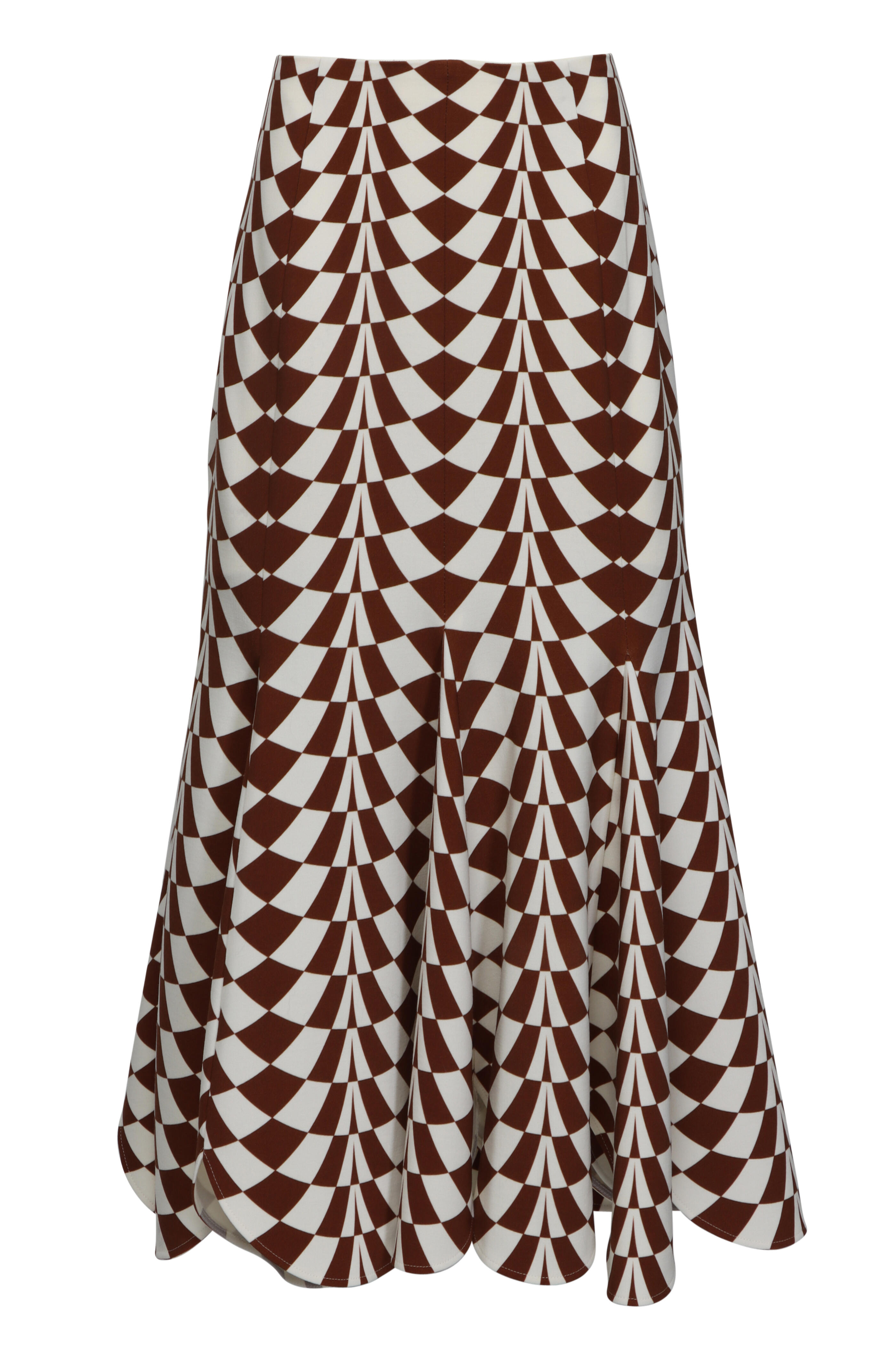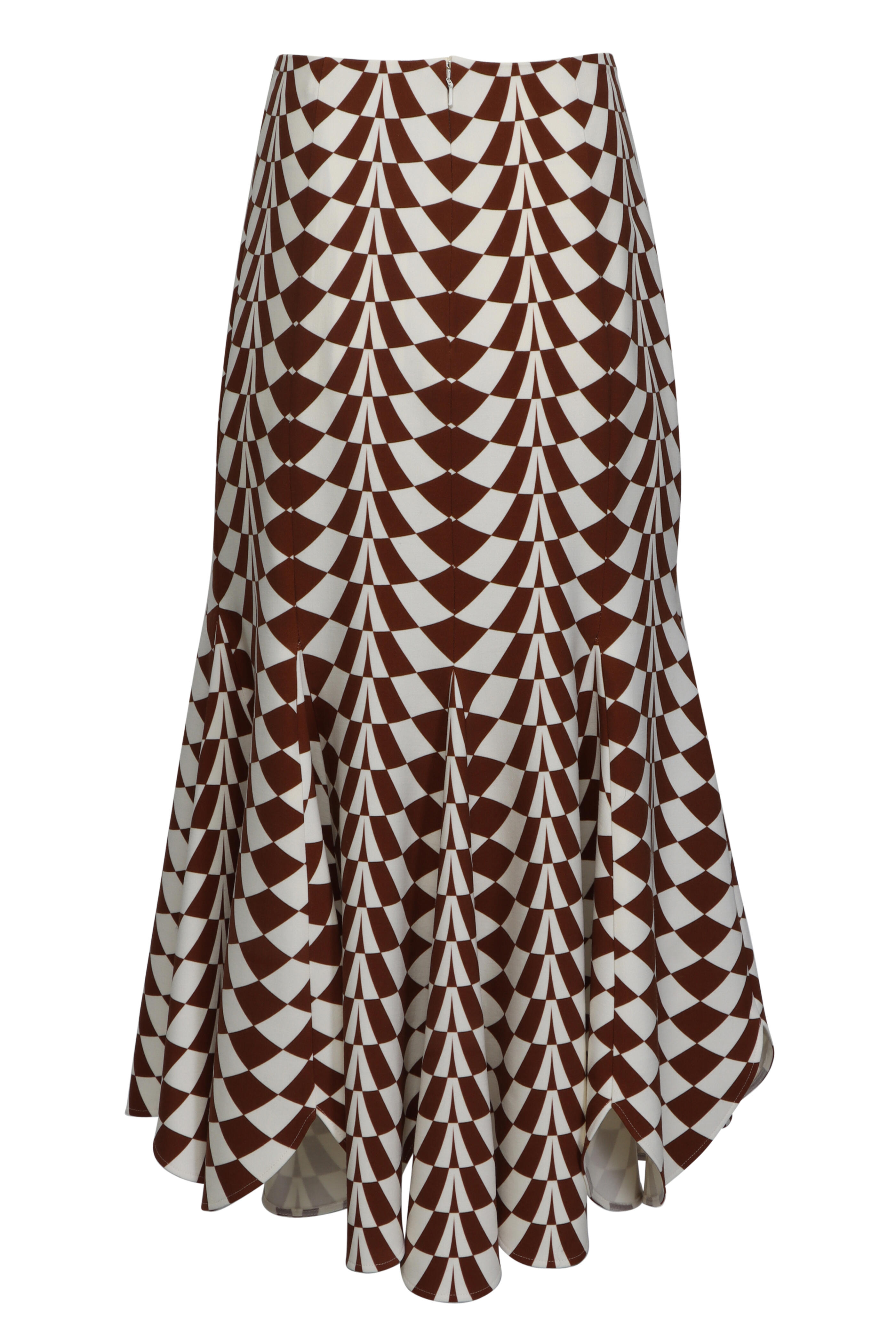 Brown & Ivory Geo Print Wool Midi Skirt