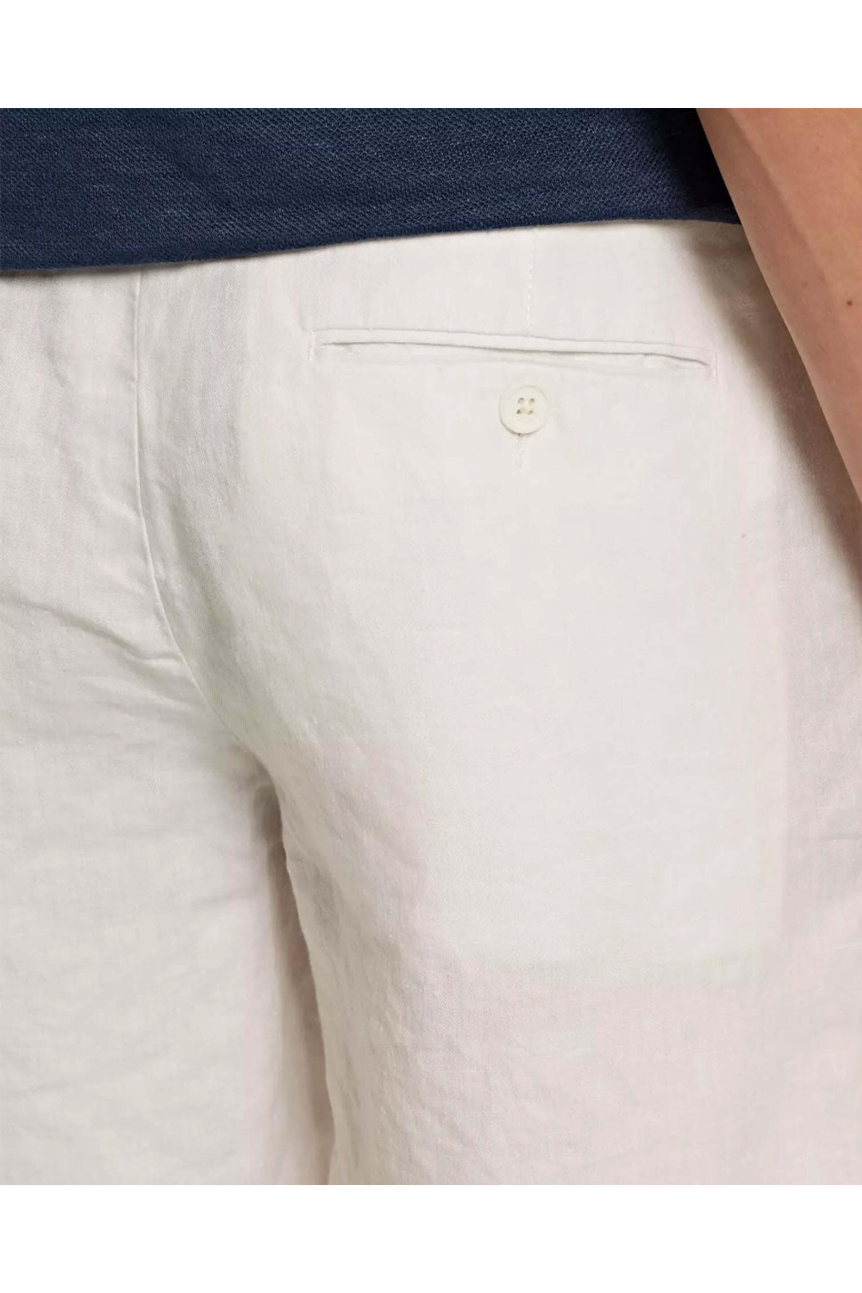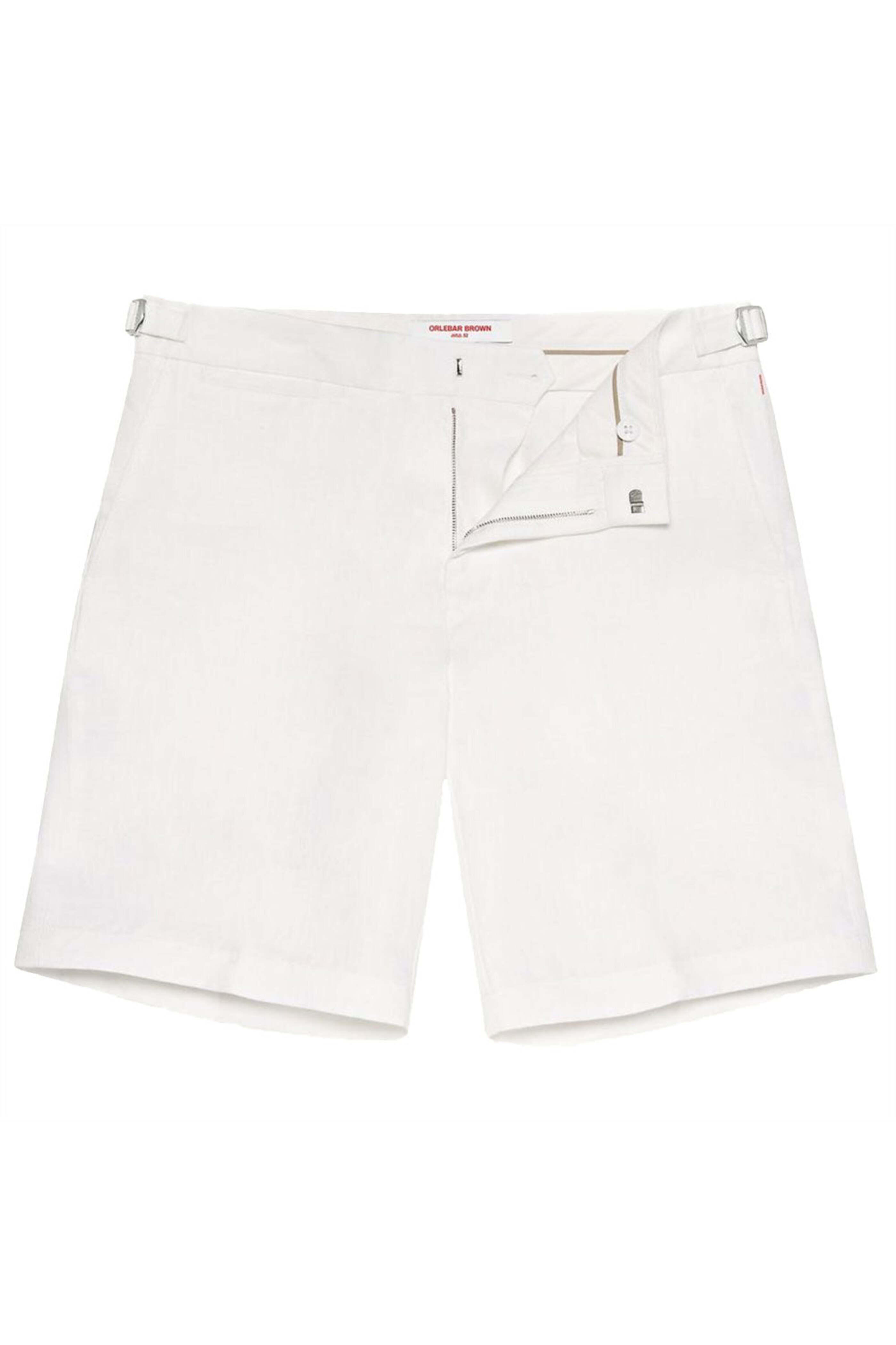 Orlebar Brown Norwich Linen White Short. Flat front. Zip fly. Tailored closure. Adjustable nickel-effect side-fasteners. Side seam pocket. Back slip pockets. 5-pocket design. Tailored, slim fit. Made in Spain. 100% linen.