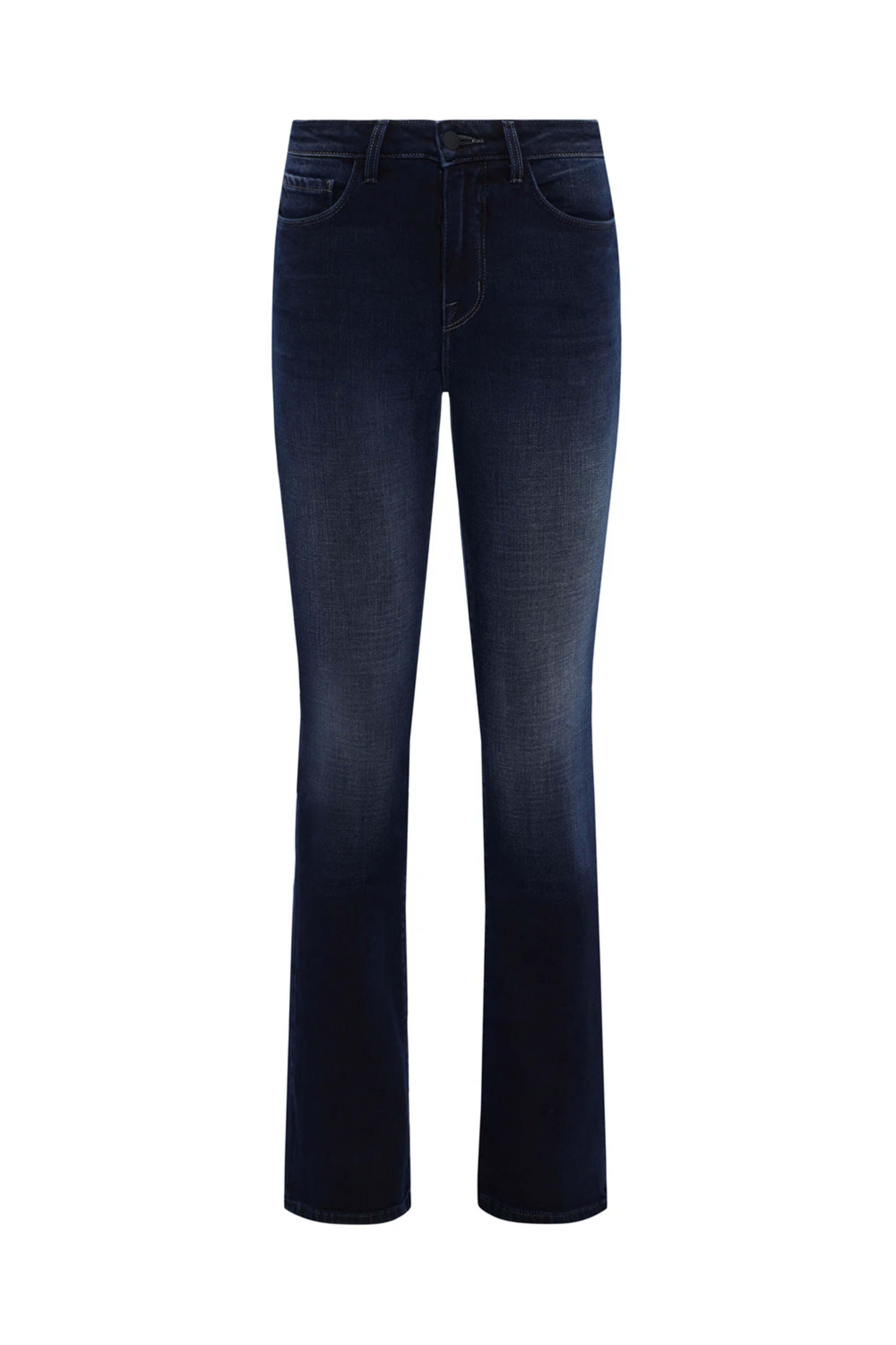 LAgence High Rise Selma Baby Bootcut Jean in Maverick Mave. High rise. Button closure. Zip fly. Belt loops. Five pocket style. Straight through leg. Flare hem. Full length. 94% cotton, 5% polyester, 1% spandex.
