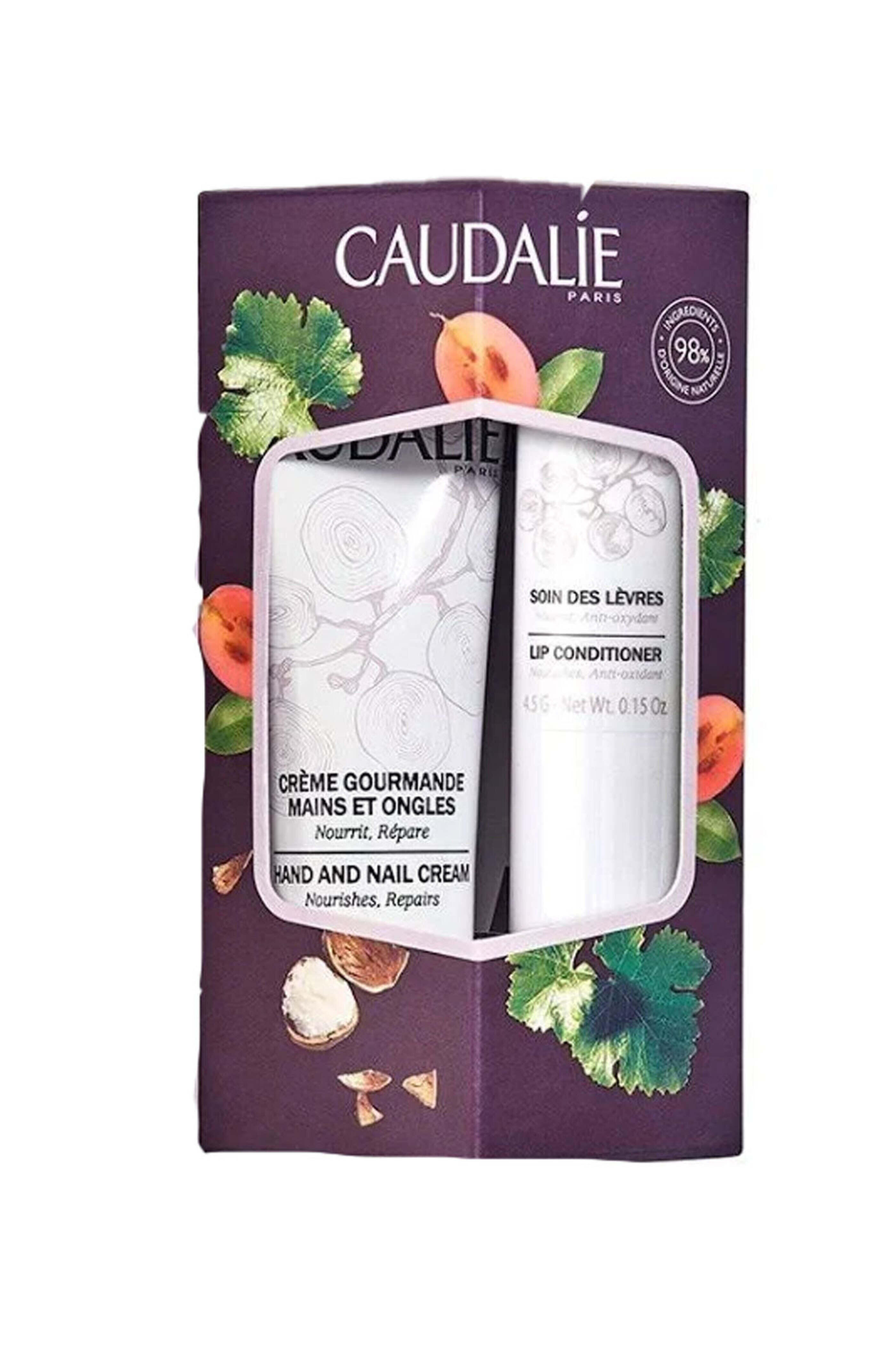 Caudalie Evergreen Lip & Hand Duo. Hand and Nail Cream (1 fl.oz): An antioxidant-rich cream that moisturizes hands and nails.. Lip Conditioner (0.15 oz.): A nourishing lip balm made with antioxidants and shea butter to keep your lips looking youthful and conditioned.