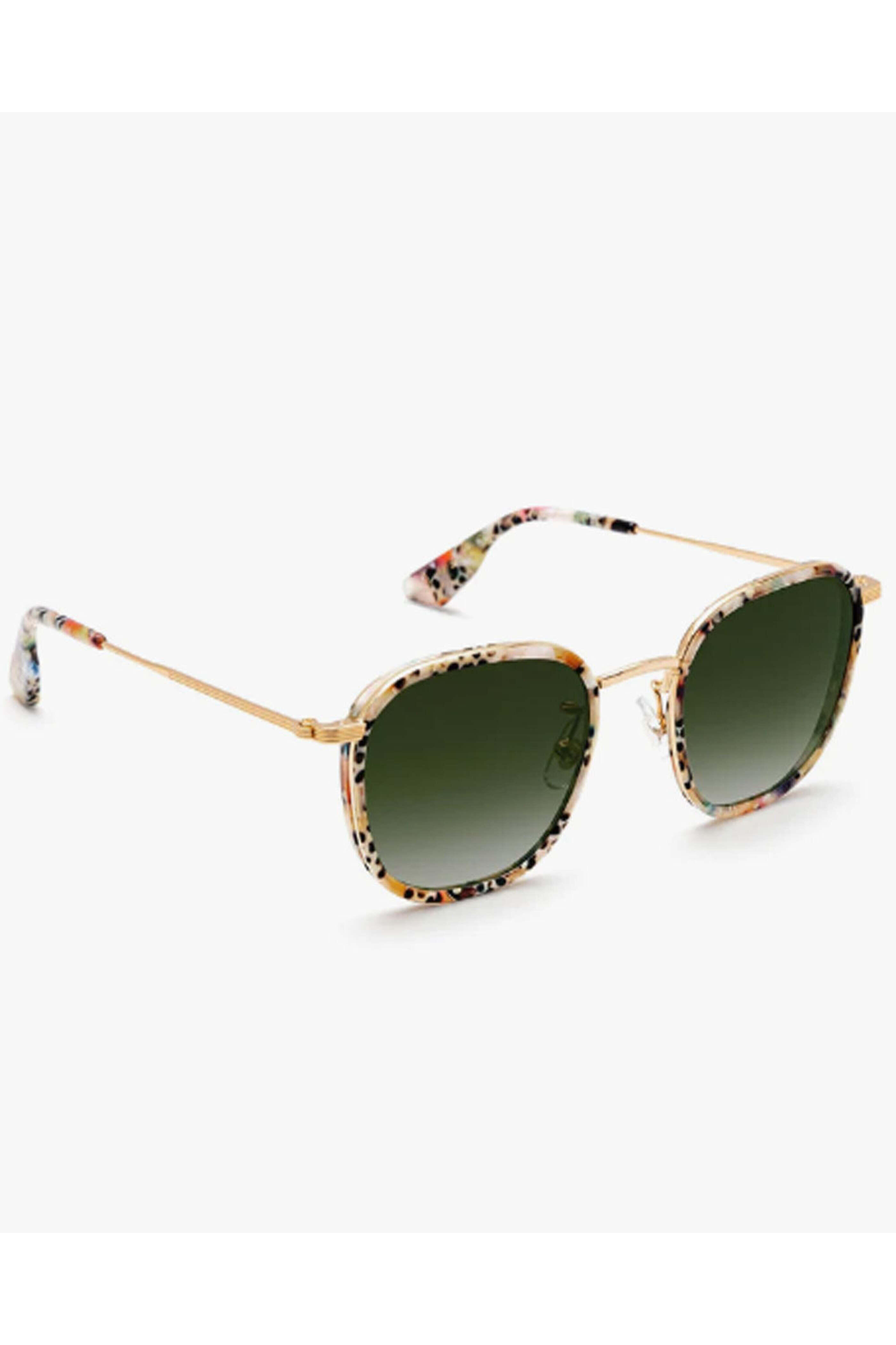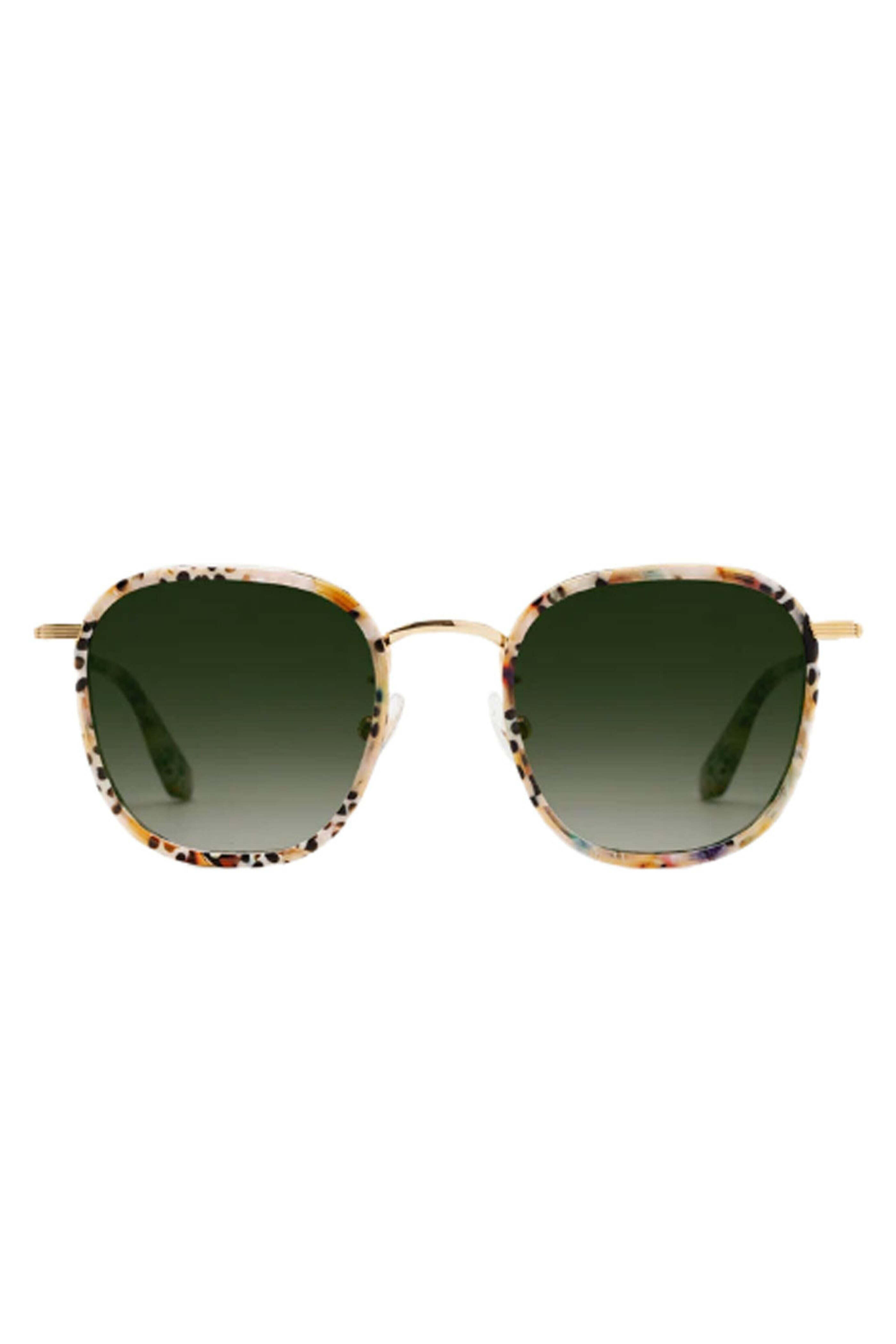 Krewe Hyde Sunglasses in 18K Poppy. Custom, Dark Green Gradient lenses. Handcrafted, 12K gold-plated stainless steel and acetate frame. Adjustable nose pads and temple wires. Fit: 133mm. Eye: 49mm. Temple: 147mm. Bridge: 22mm. 100% UVA/UVB protection.