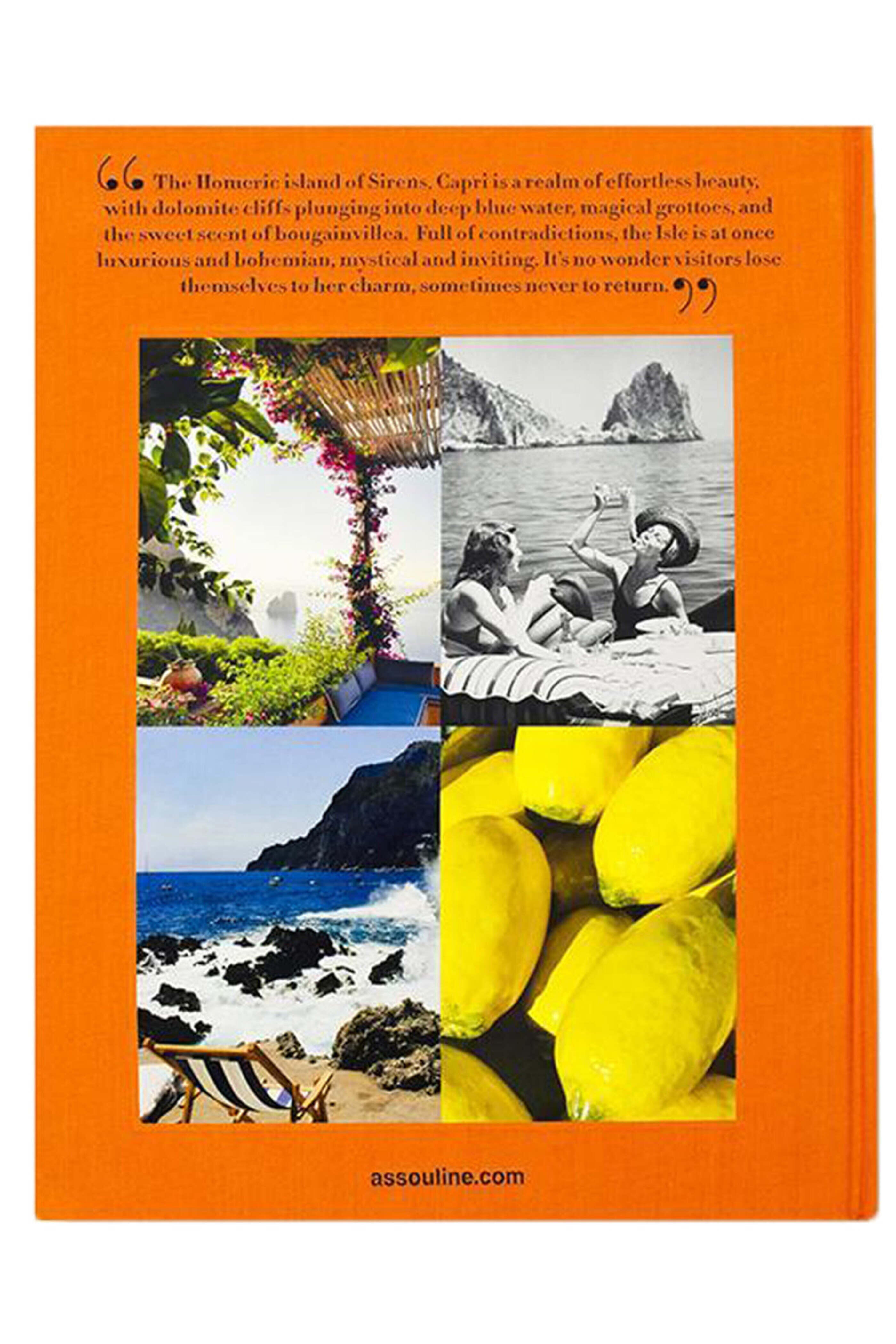 Assouline Capri Dolce Vita Written by Cesare Cunaccia Provides a look at the fabled corner of the world through the ages and celebrates paradise on earth 272 pages 200+ illustrations Linen hardcover Dimensions: 13 L x 9.8 W x 1.3 D.