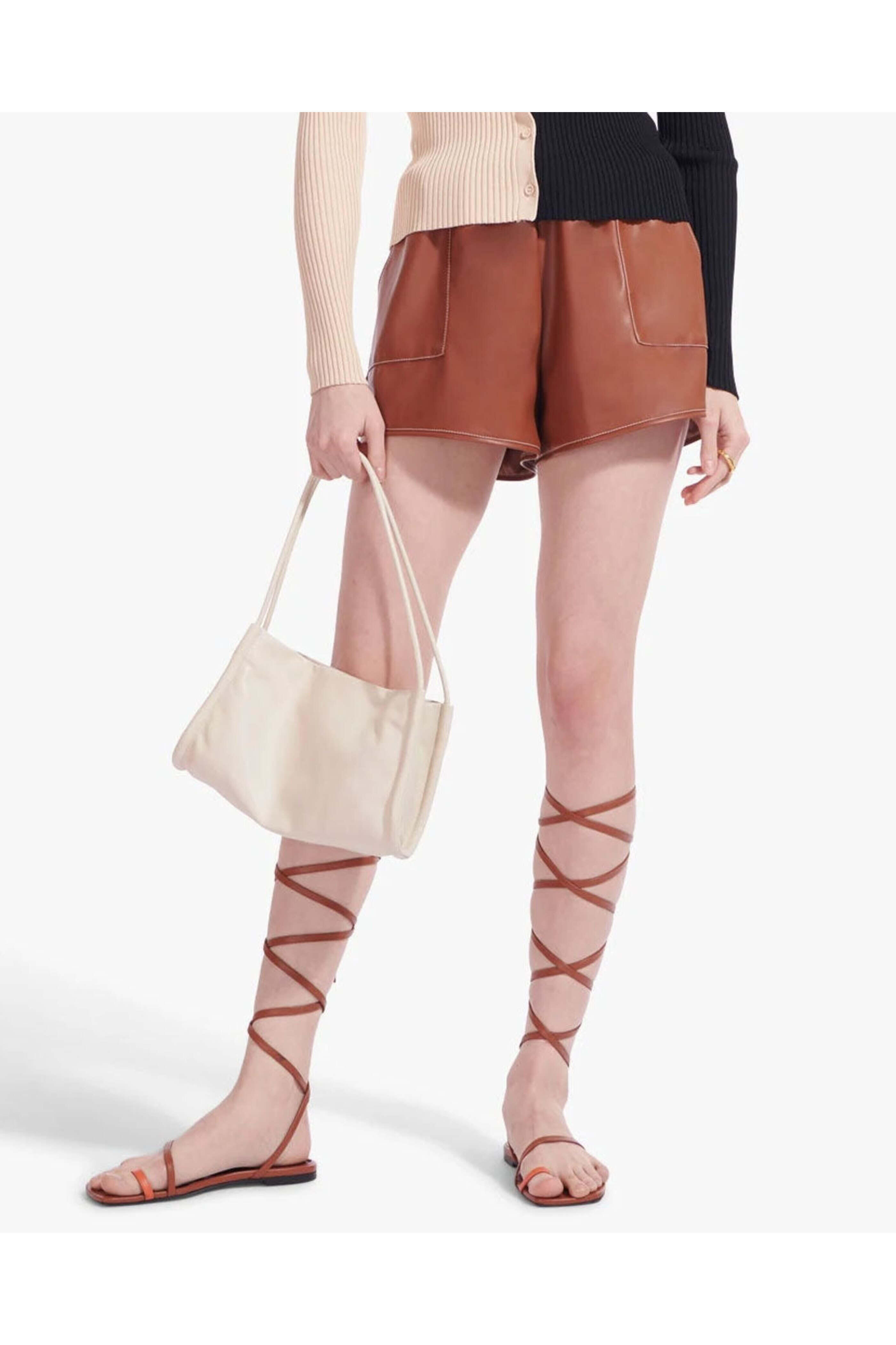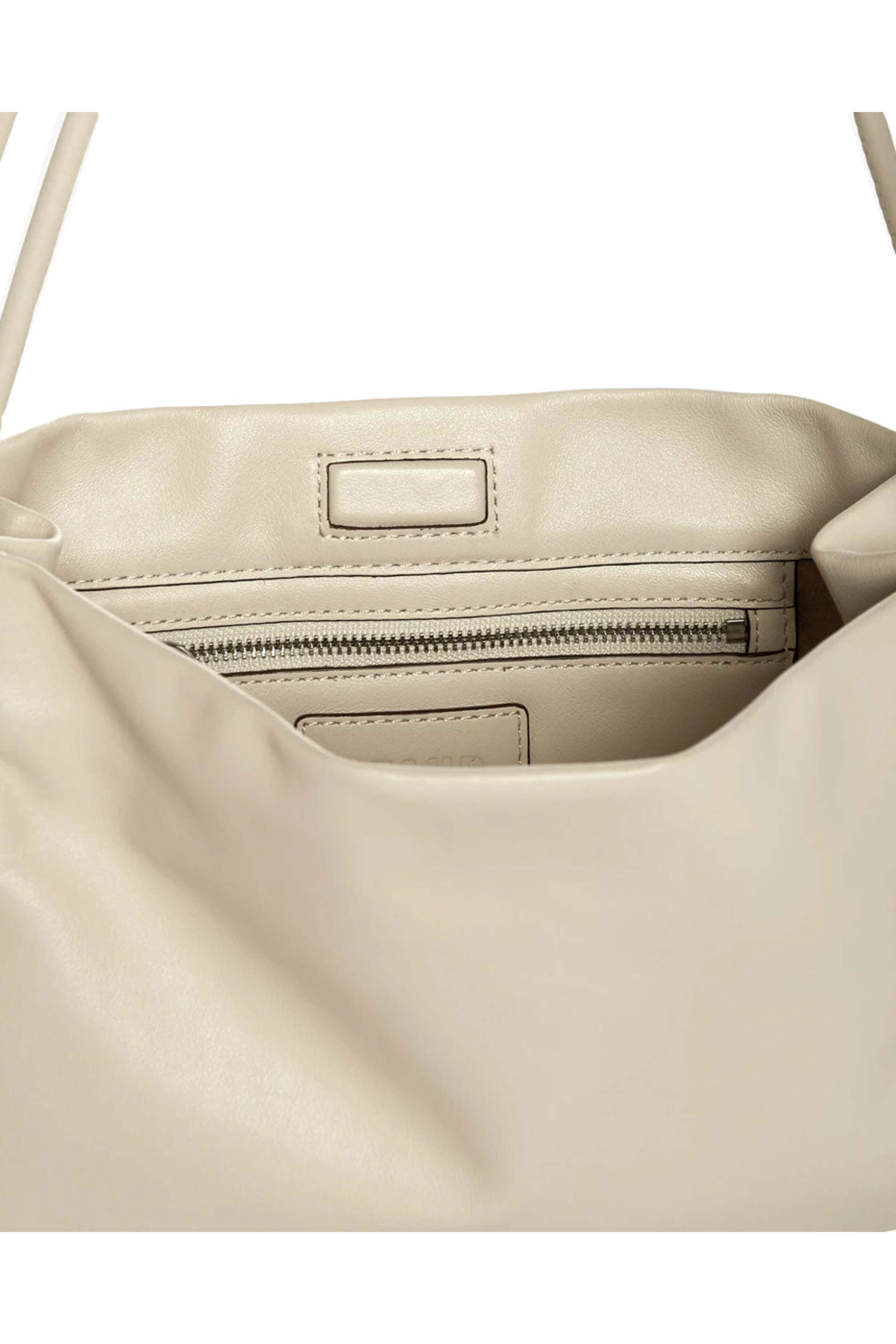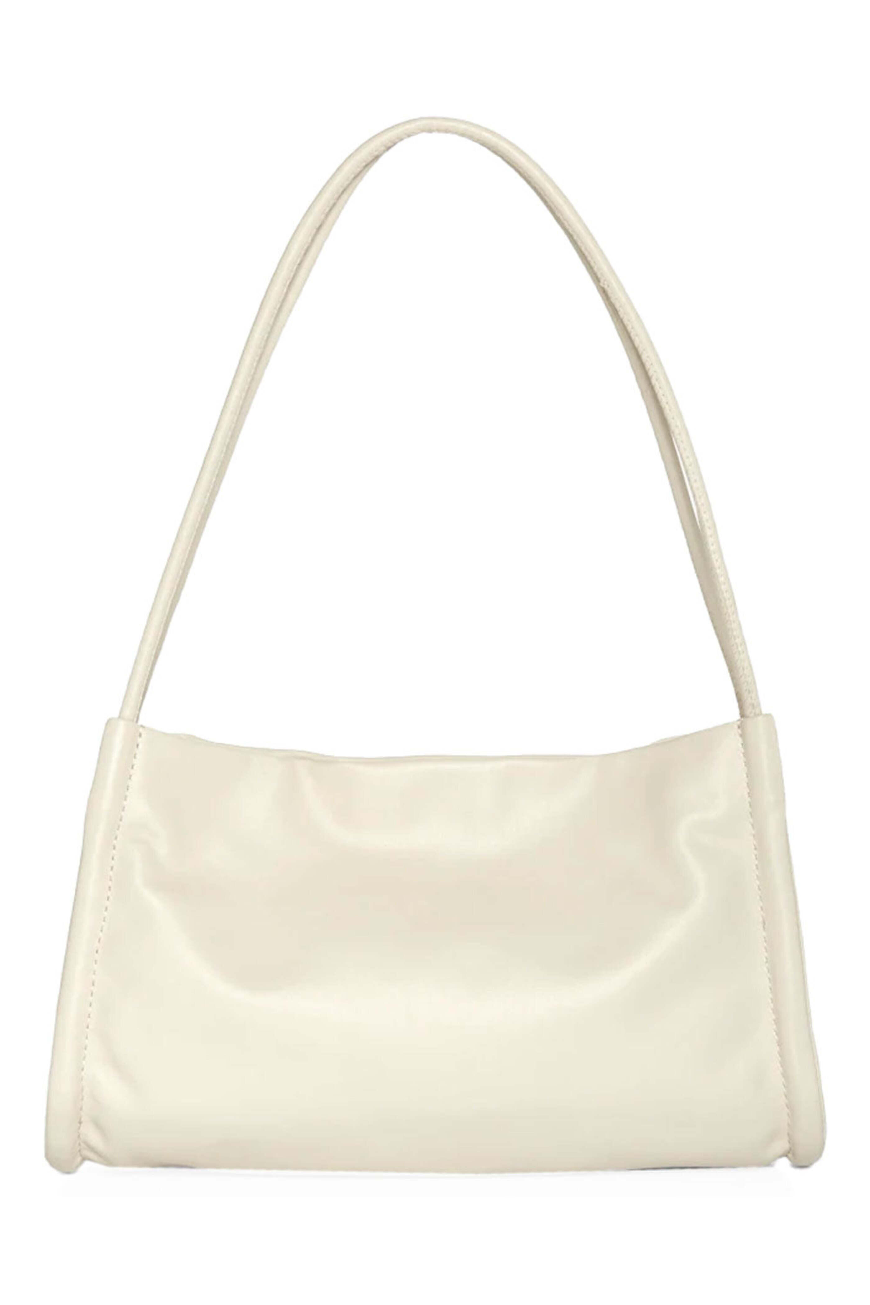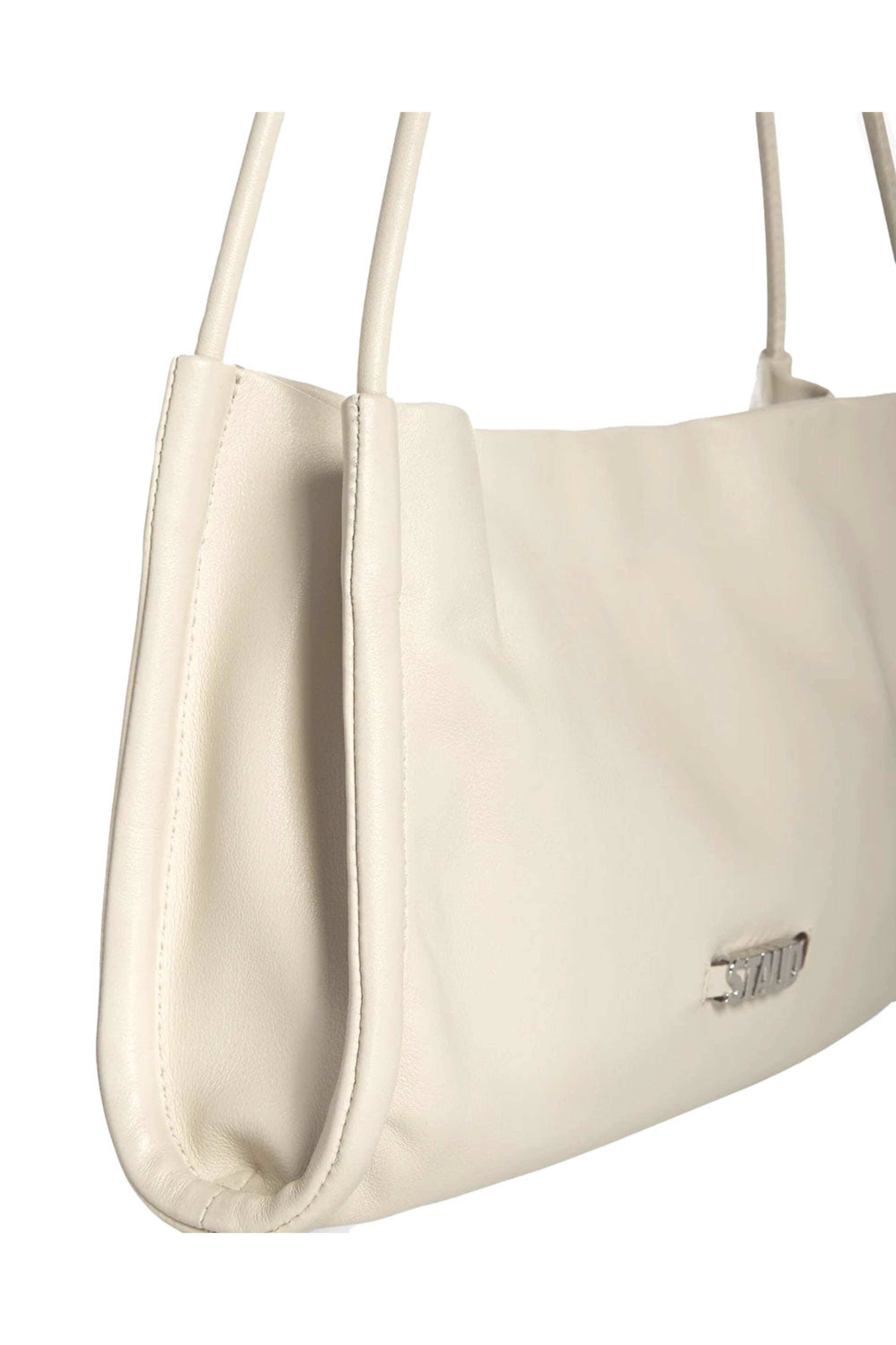 STAUD Gia Shoulder bag in Cream. Magnetic closure. Two top straps. Interior zip pocket. Tonal stitching. Logo detail. Nappa leather outer and lining. 11 W X 7 H X 2.5 D. 8.6 strap drop.
