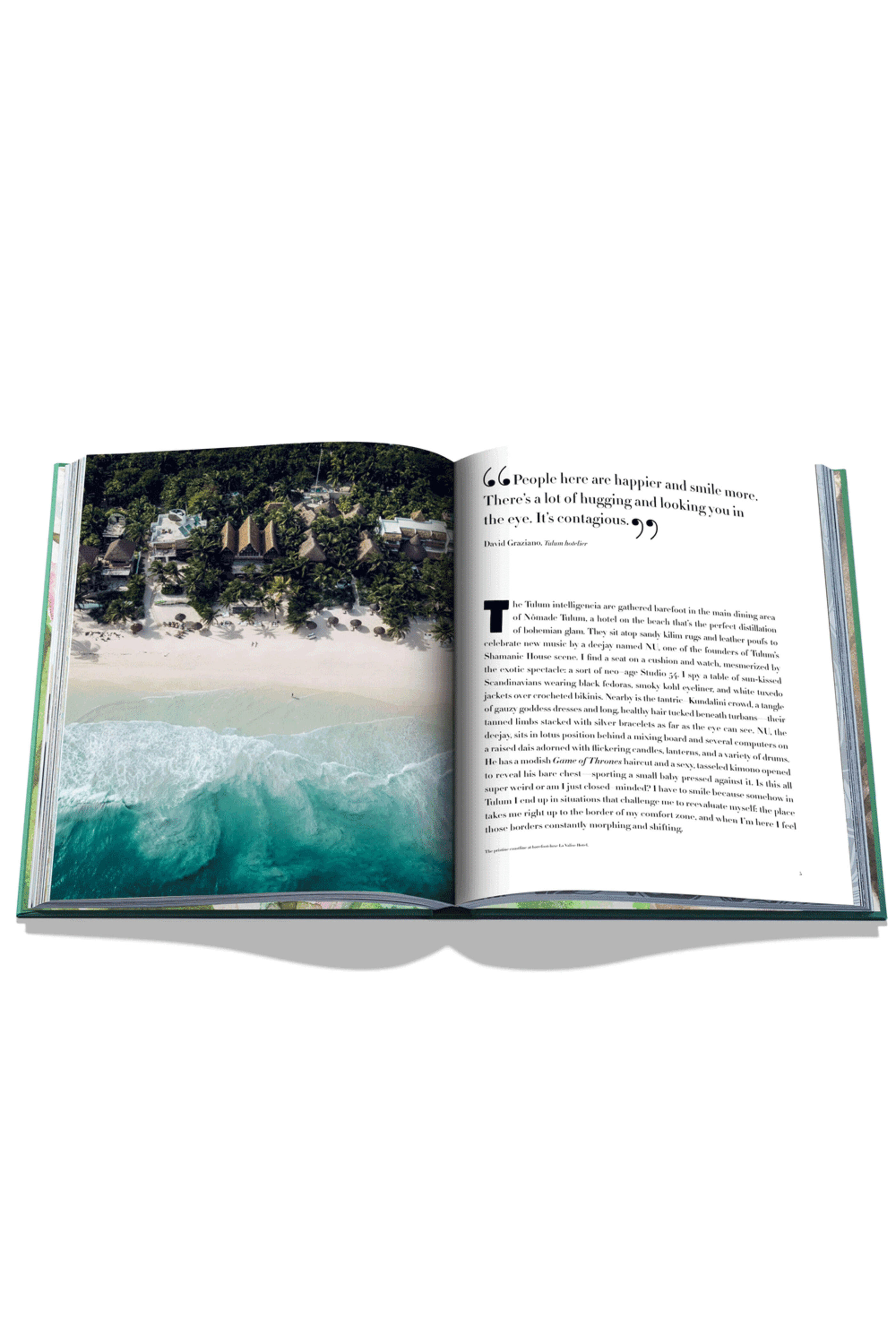 Assouline Tulum Gypset by Julia Chaplin. A hub for barefoot bohemians and glamorous goddesses, Tulum is a Mayan hideaway that perfectly distills the gypset lifestyle. The boho-chic crowds home away from home, Tulum is a rare and successful modern experiment in both consciousness and sophistication, bolstered by its down-to-earth hotels, mesmerizing cenotes, and lush backdrop. 280 pages. 200+ illustrations. 9.8 W x 13 L x 1.4 D. Linen hardcover. Released in August 2019.