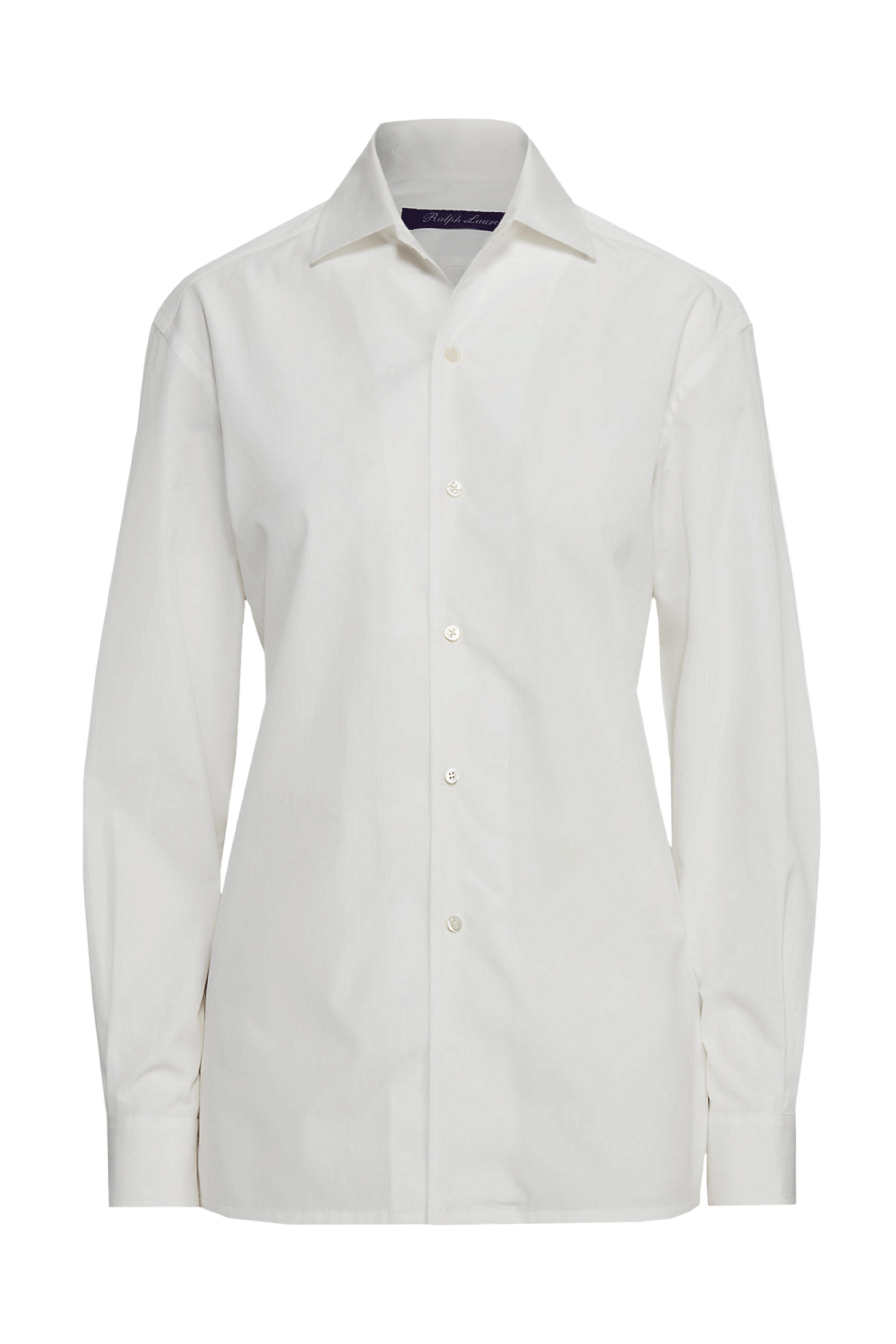 Ralph Lauren White Classic Button Front Shirt. Collar. Long sleeves; button cuffs. Button down front closure. Regular fit. Straight hem. Made in Italy. 100% cotton.