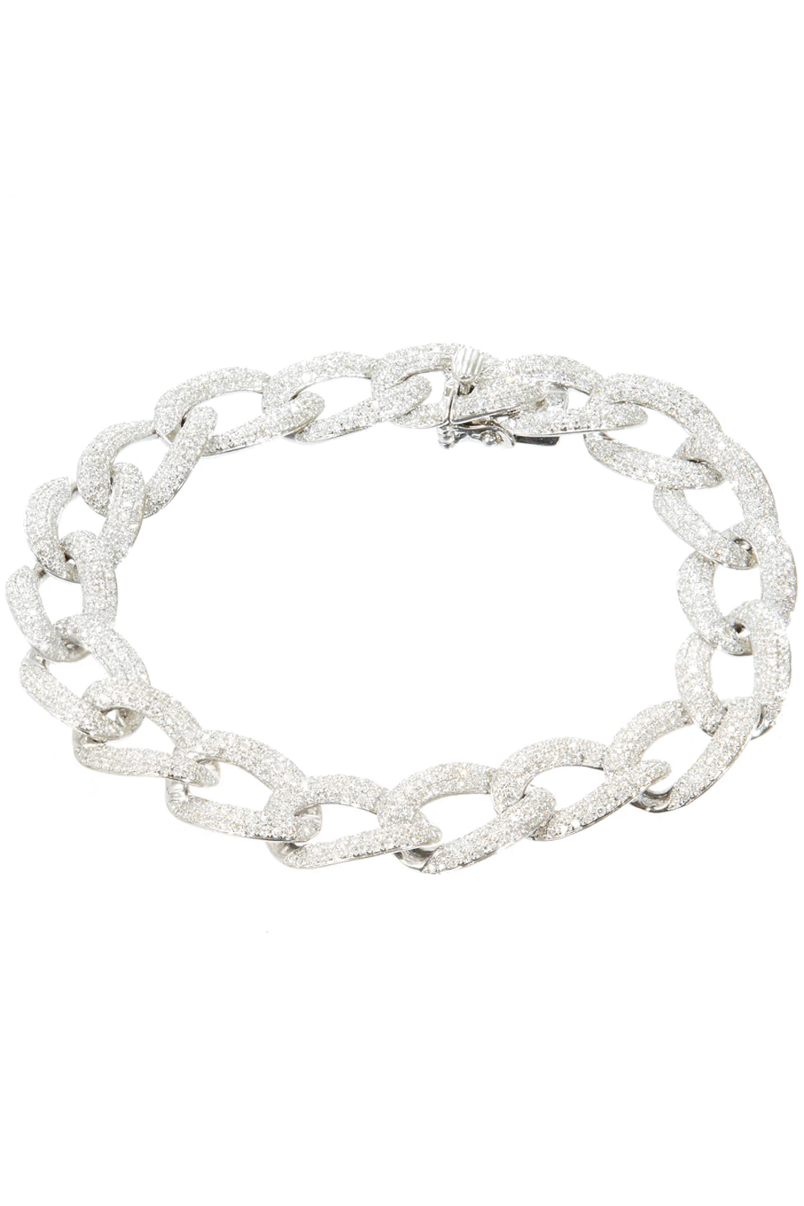 18k White Gold Diamonds Cuban Link Chain Bracelet