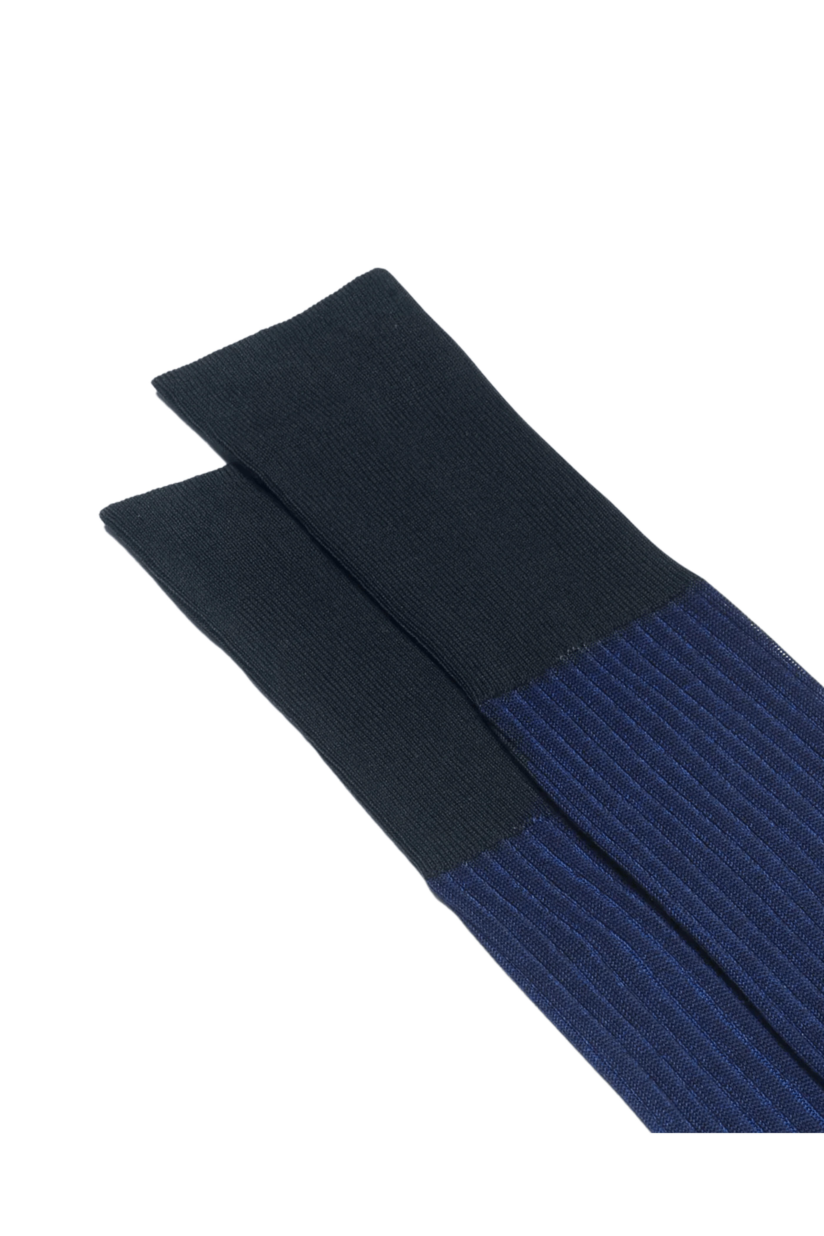 Bresciani Vanisee Over the Calf Socks in Navy and Blue. Over the calf. One size fits most. Made in Italy. 100% cotton.