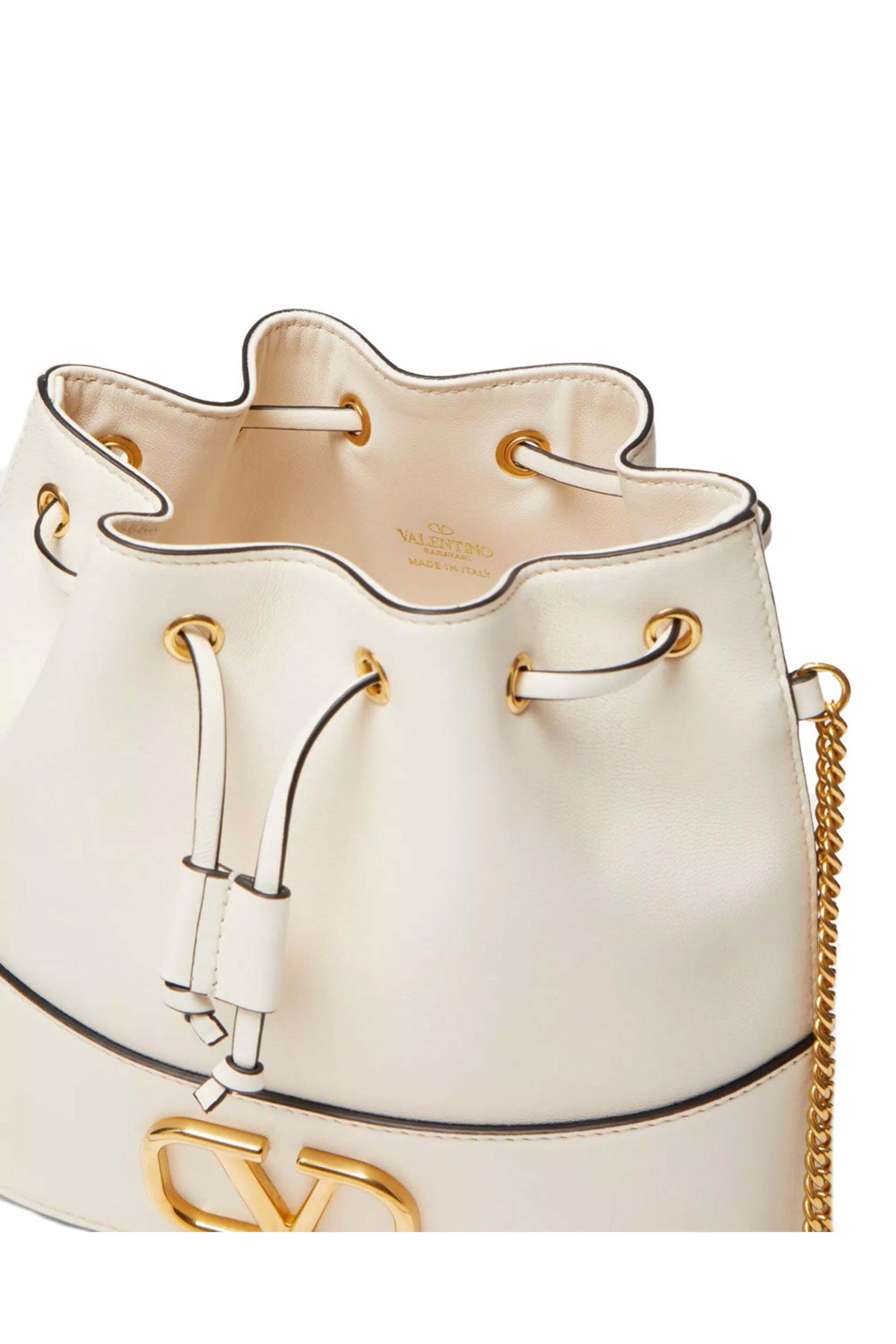 - Valentino mini Bucket Bag with Vlogo Signature Chain in Light Ivory