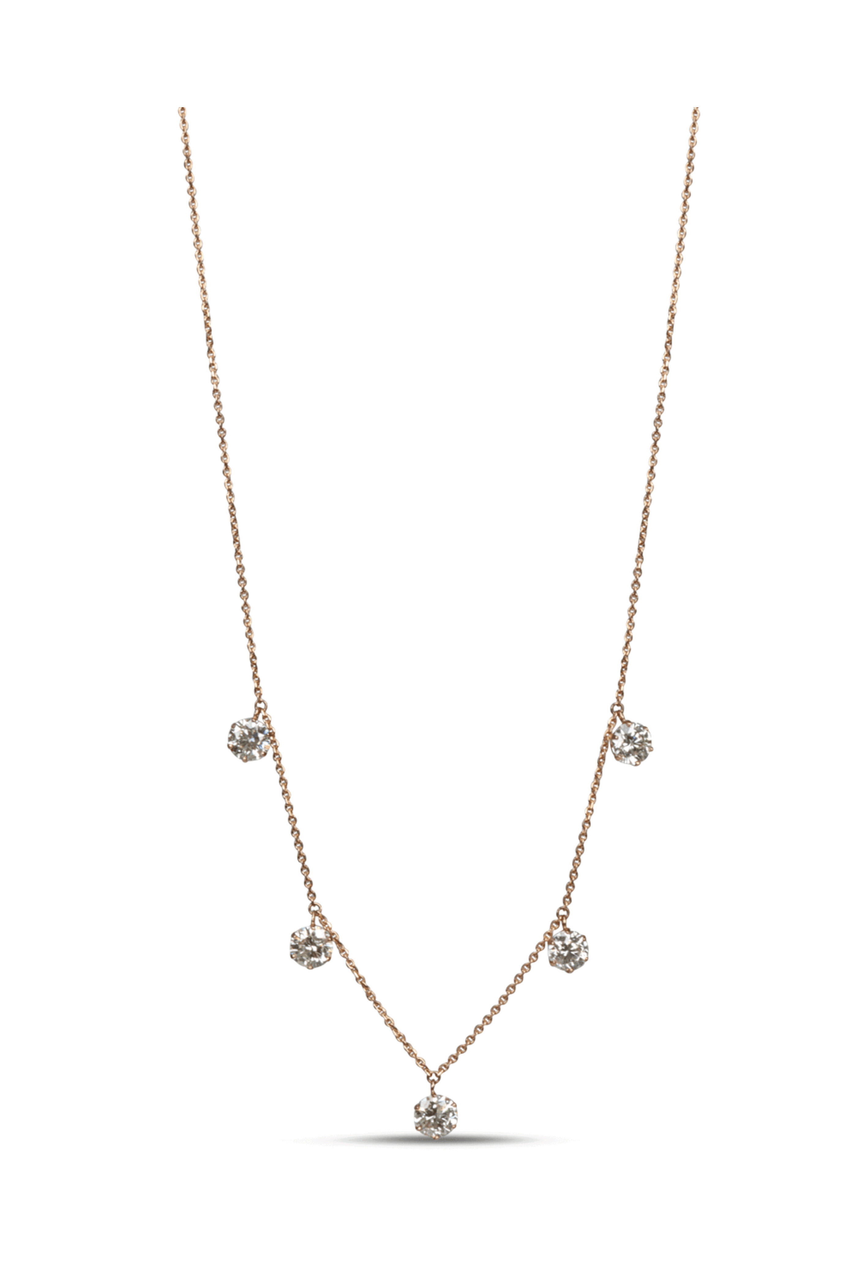 Kai Linz Large Floating Diamond Necklace. 18k rose gold. Diamond 2.62 total carat weight. Five round cut diamond. Cable chain. Droplet design. Cable chain. Springring clasps.