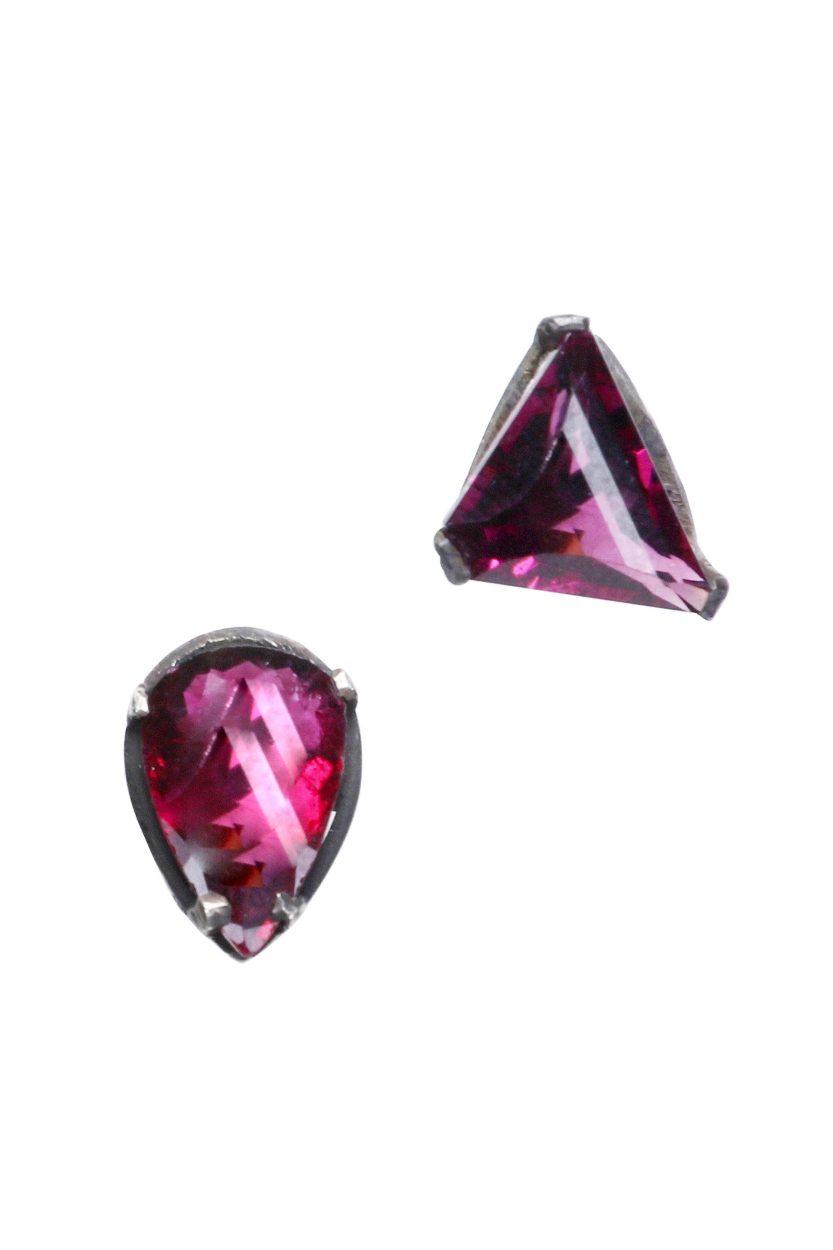 Sterling silver. Red tourmaline. Rough cut gemstone. Prong setting. Stud style. Push back post. Handcrafted in Texas.