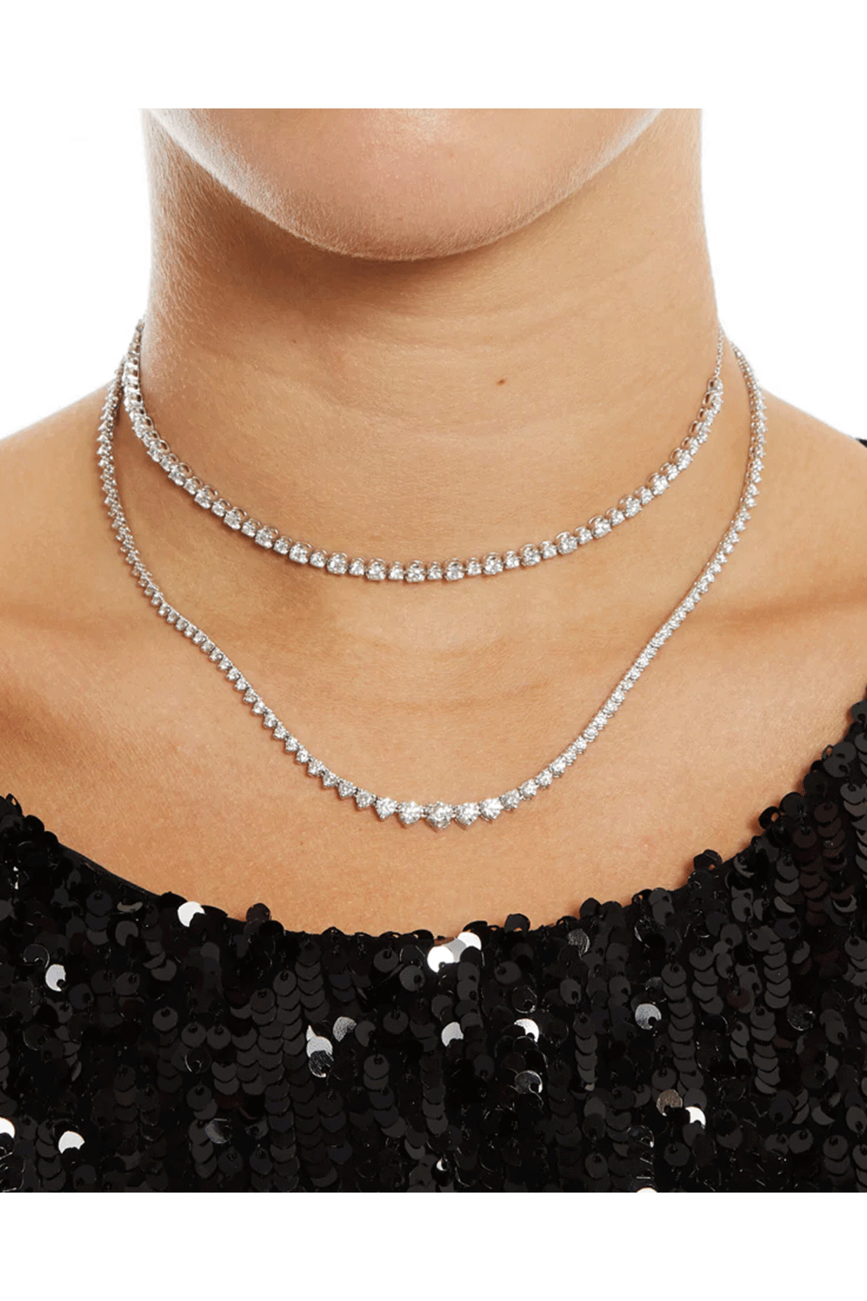 Kai Linz 18k White Gold Jubliee Diamond Necklace. 18k white gold. 4.97 ct. diamonds. 16.25 length. Push lock with safety latch closure.